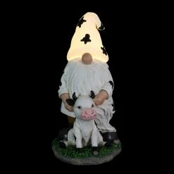 Mooooove over! This beautifully hand painted cow pattern garden gnome will automatically illuminate at dusk with solar power. Add a touch of light and whimsy to your yard with an endearing magical gnome. Hand painted garden art by Exhart makes the perfect addition to any garden!