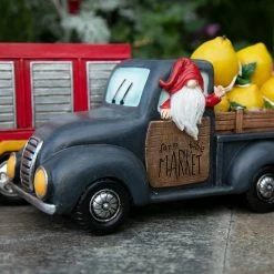 This gnome knows farm to table is where it’s at! He’s cruising in style with this retro market truck filled to the brim with lemons. Solar powered LED lights will charge during the day and glow automatically at night from within the lemons. This adorable decor features hand painted details to make you smile. Endearing and a little magical, gnomes make the perfect addition to any garden!