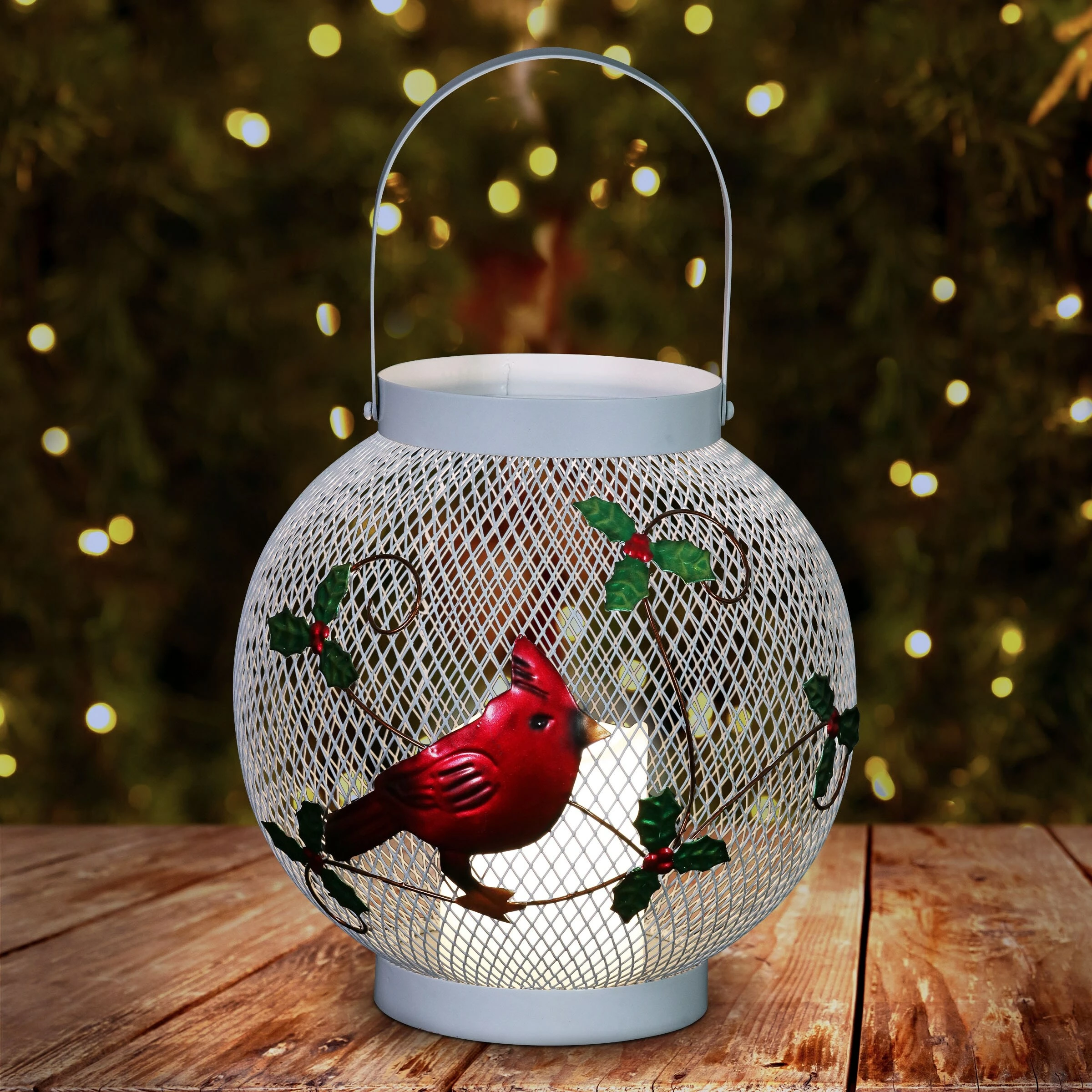 Fill your home with a little extra light this holiday season with this delightful Cardinal Lantern. This beautiful design includes a LED candle on a battery powered automatic timer. Your lantern will light up every day at your desired hour, making this a wonderful and maintenance free addition to your holiday decor!