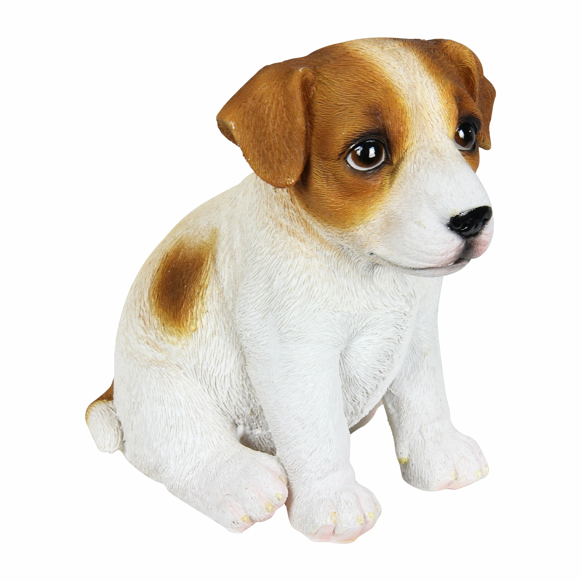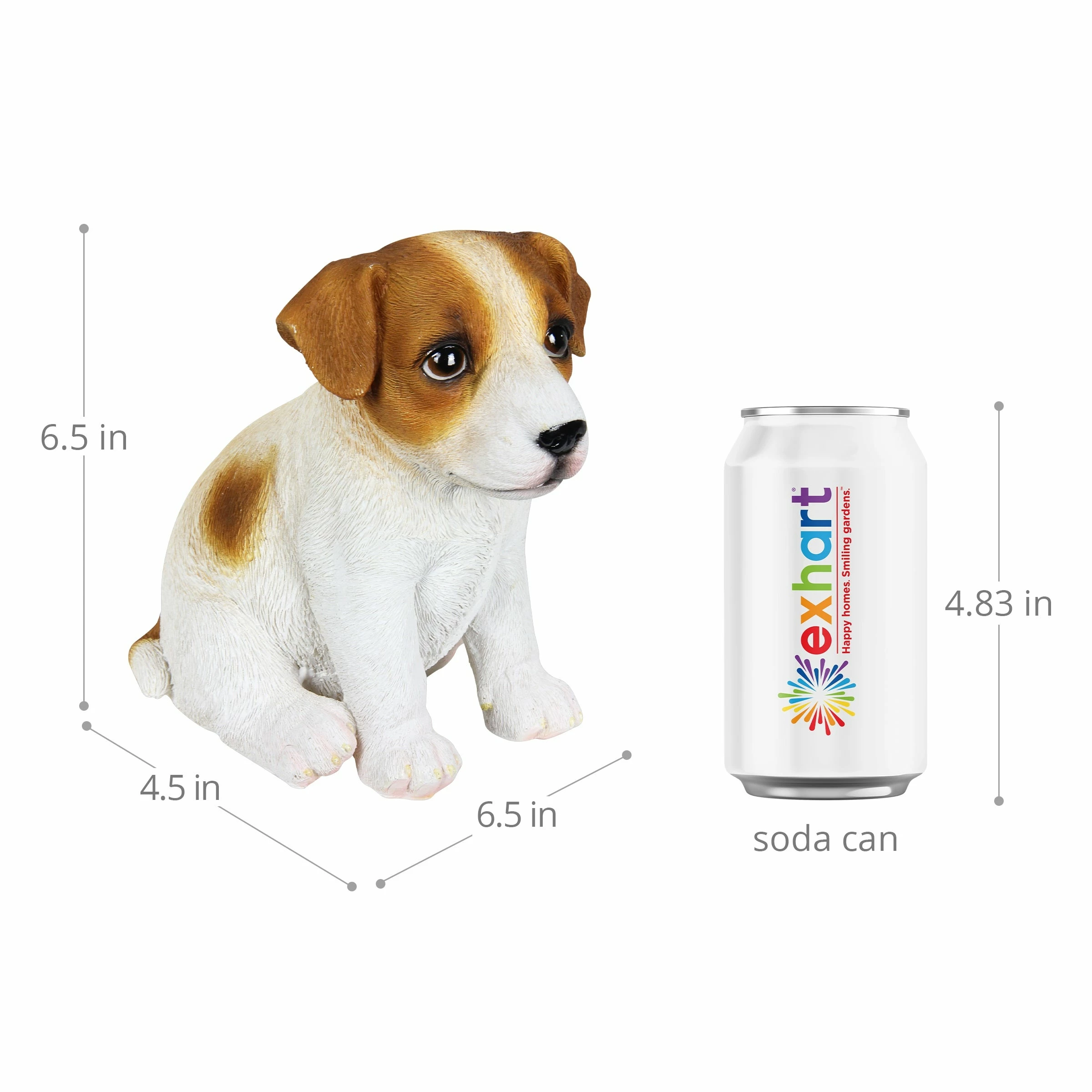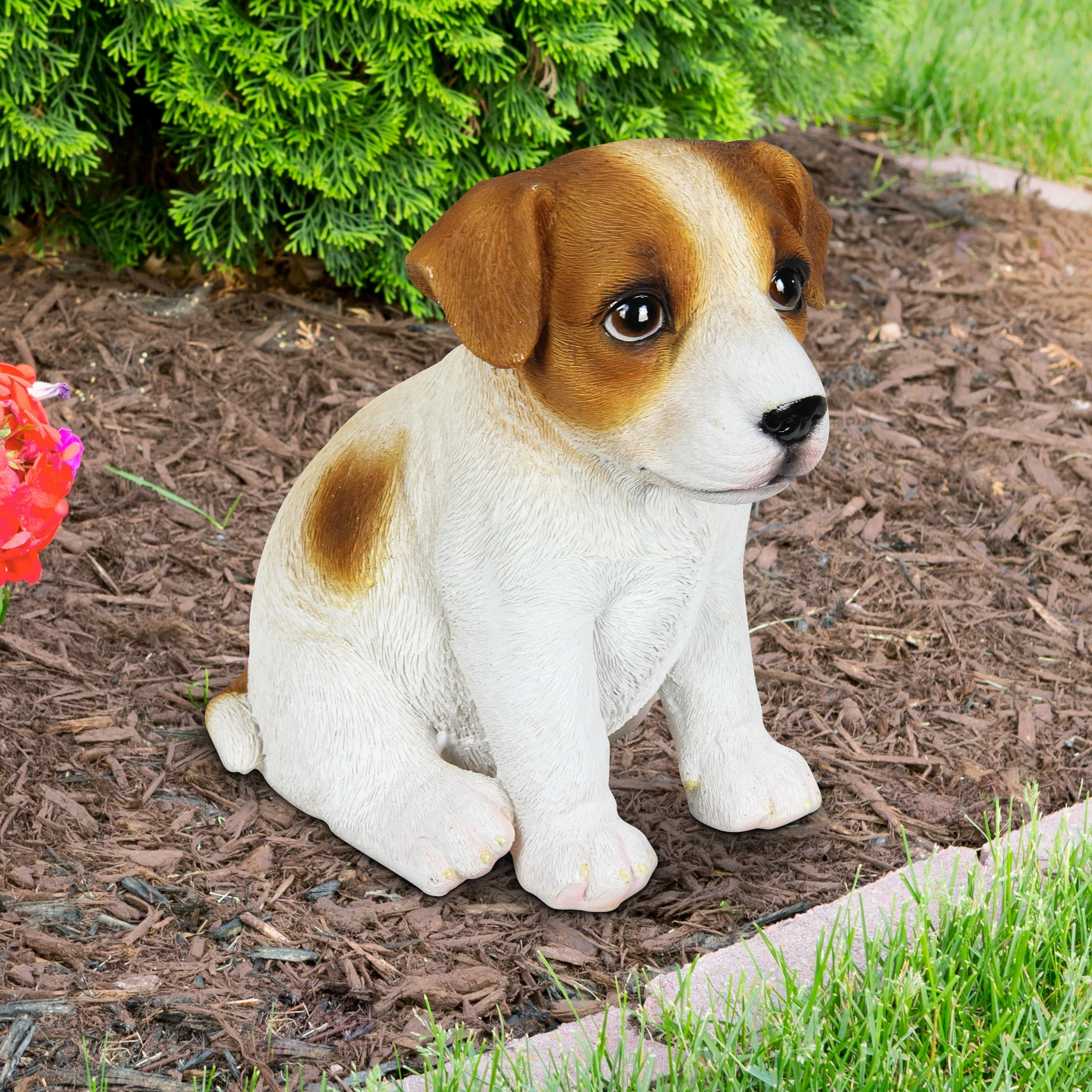This adorable hand painted Jack Russell Puppy Dog Statue exudes personality and charm! Dogs are wonderful animals, representing a balance of guidance and protection with a loyal and loving nature, making them a welcome addition to any home! Add a touch of whimsy and fun to your home with this charming, beautifully crafted garden art by the Exhart family.