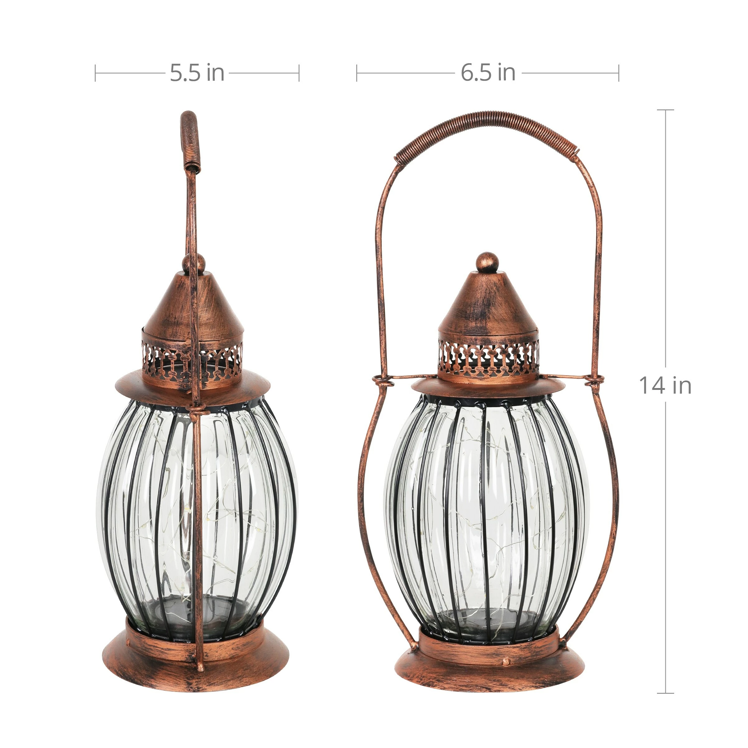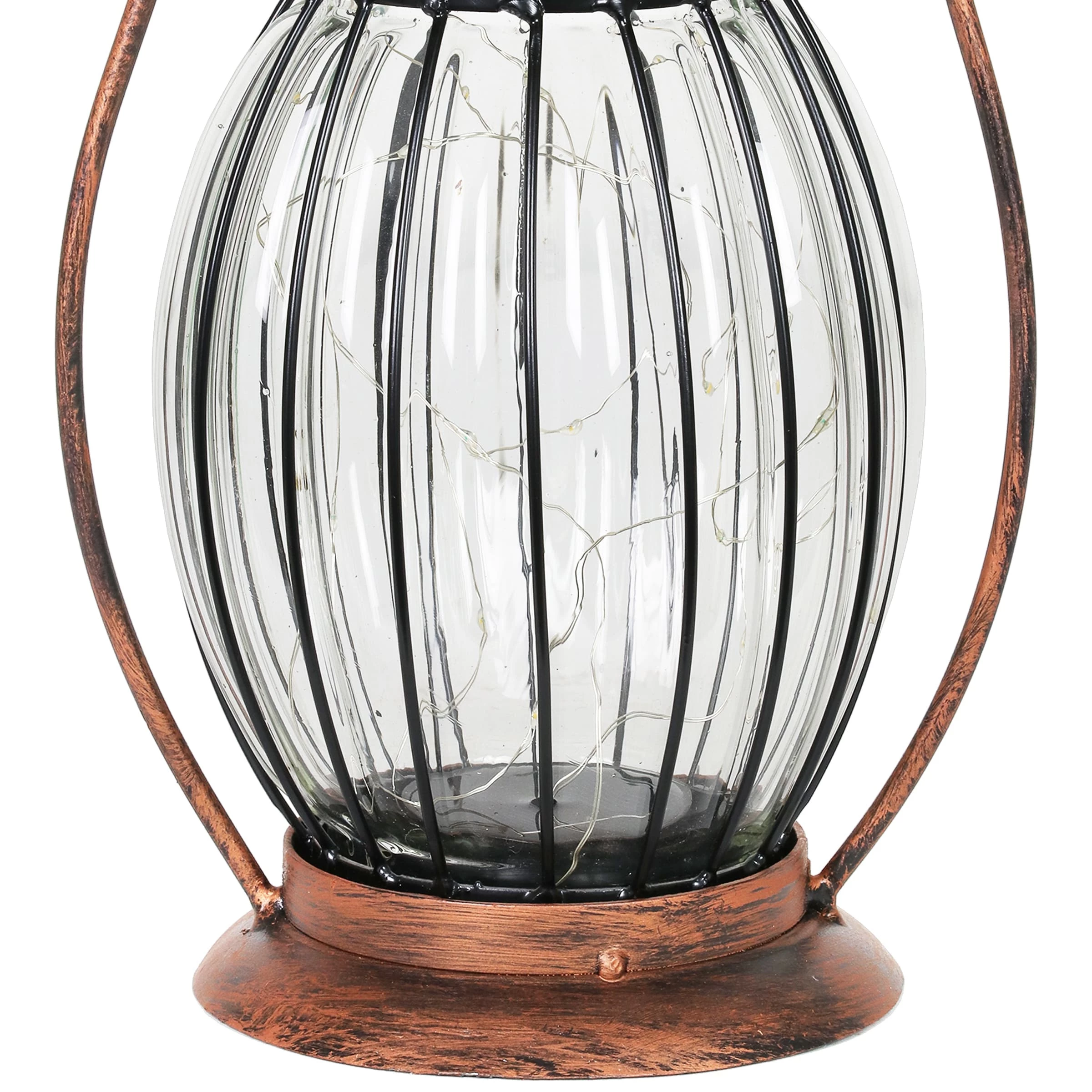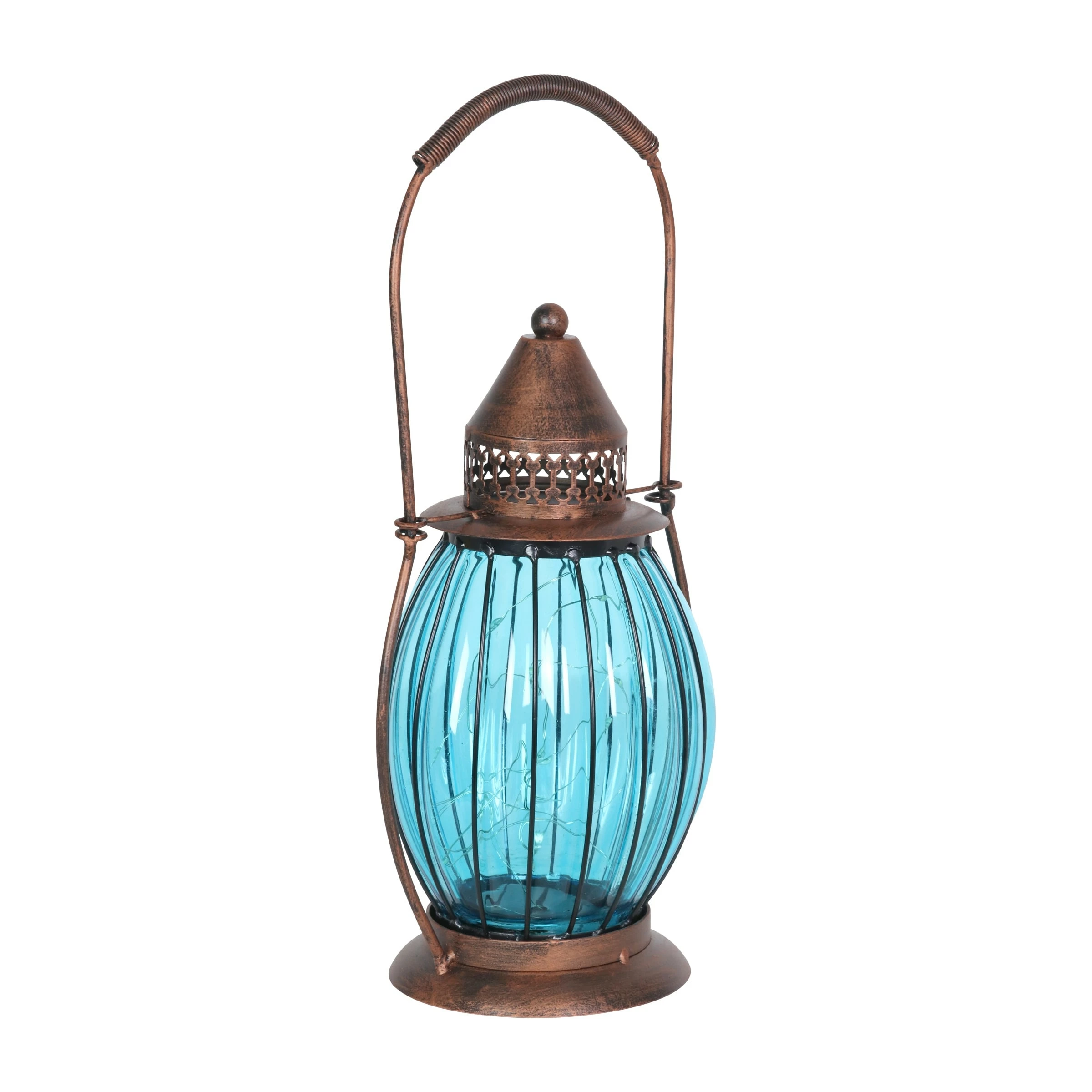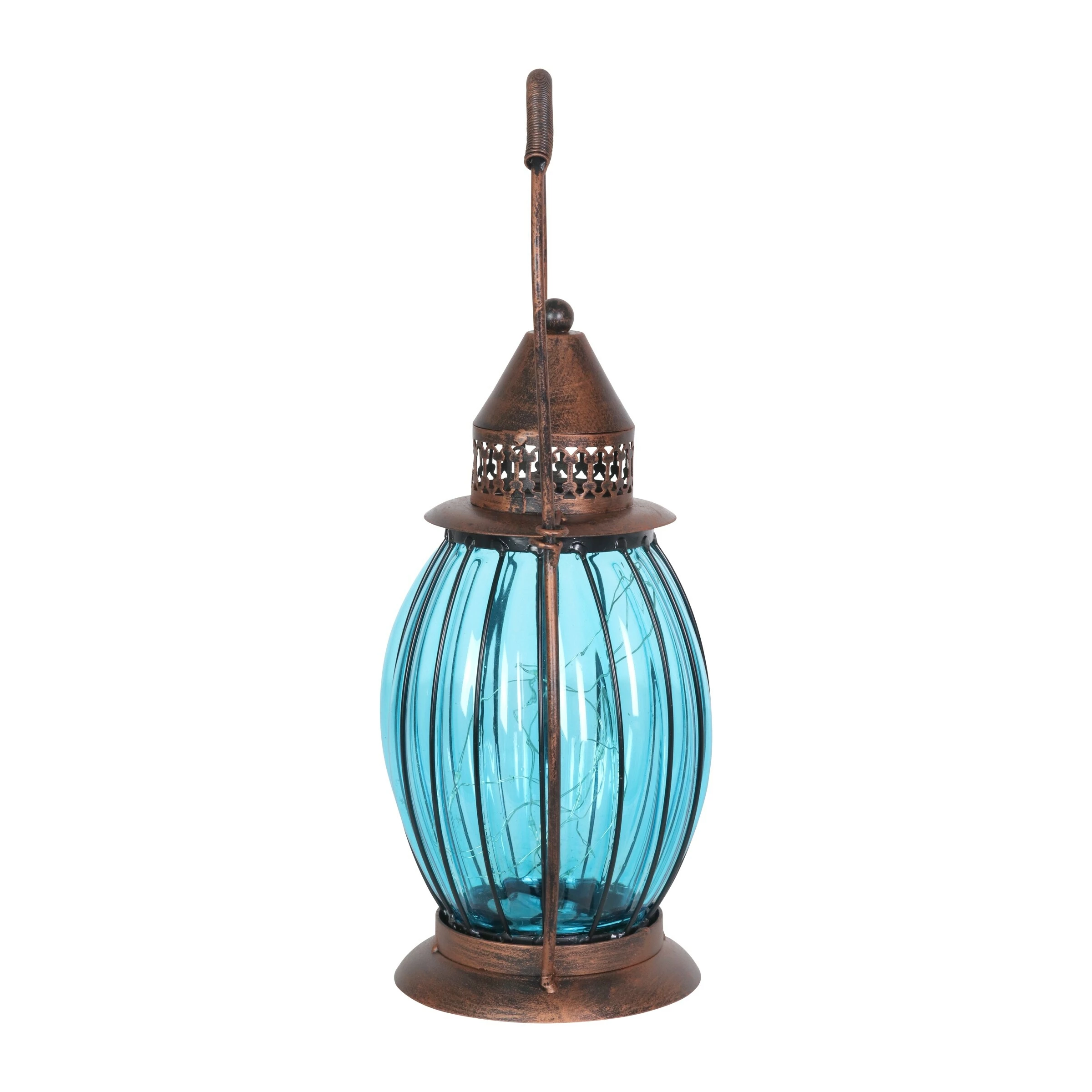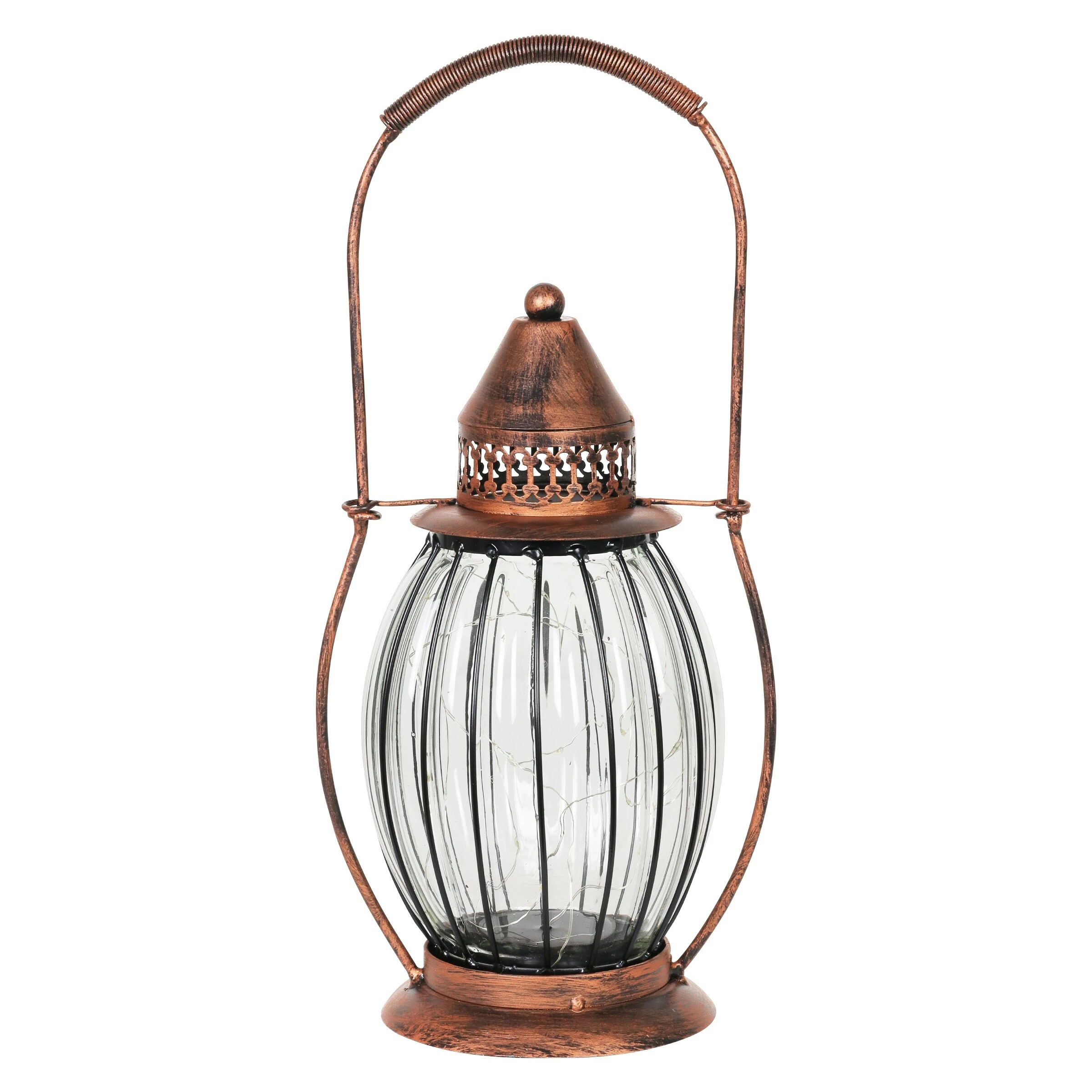 Add a charming touch to any outdoor space with this solar antique metal and glass lantern. Fifteen firefly LED lights will automatically illuminate at dusk adding a magical glow to your garden! Framed by a classic metal design with a handle, this beautiful piece makes an enchanting decorative light.