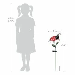 Hand-painted red blooms form an adorable illuminating lucky lady bug garden stake! Each and every bloom will glow with its own solar-powered light for a total of 21 LEDs! This charming stake is beautifully crafted from metal and exquisitely hand painted to add a touch of color, whimsy, and light to your garden!