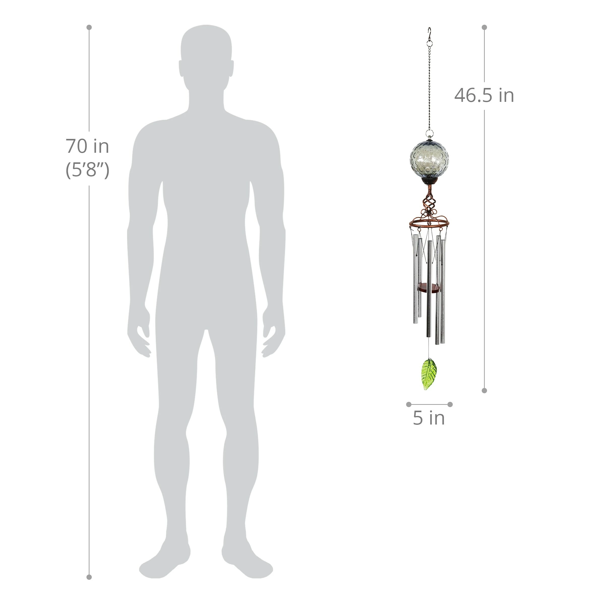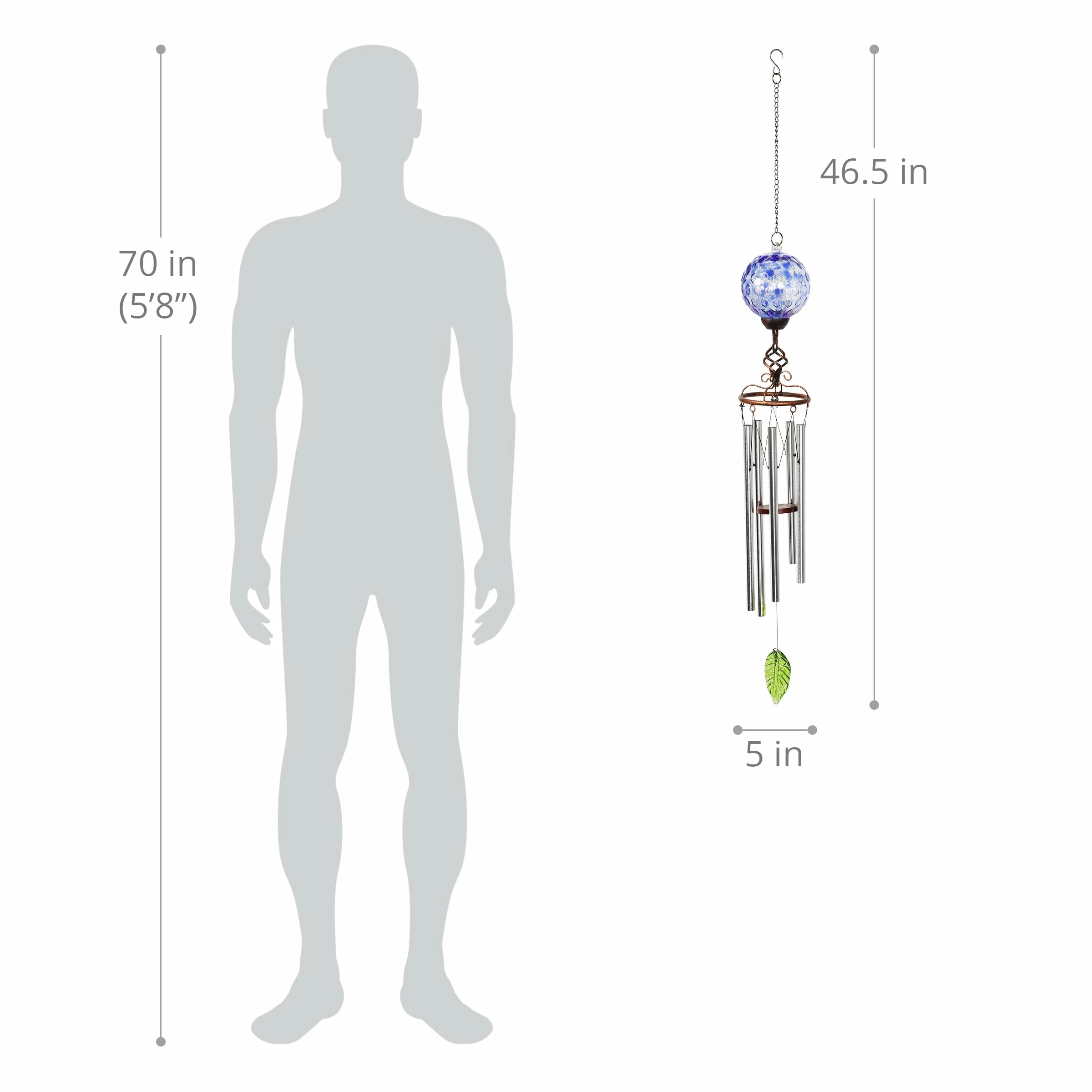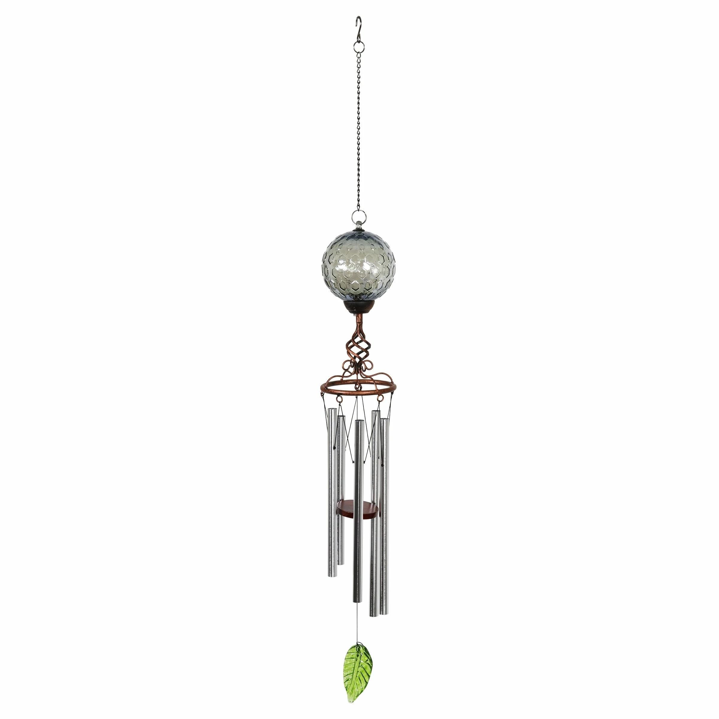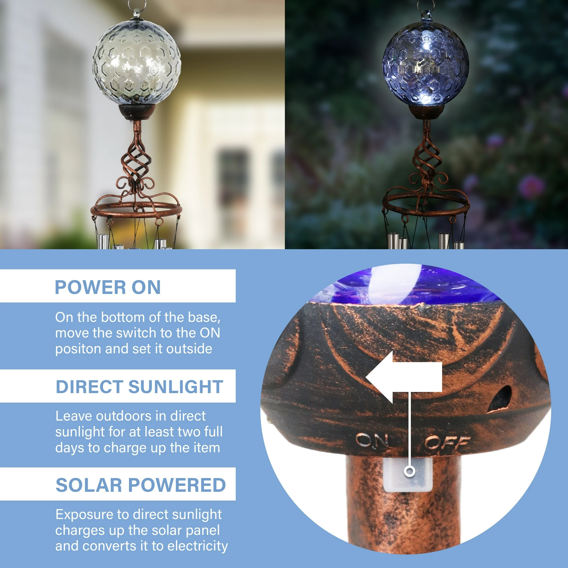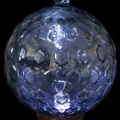 A gentle breeze sets off the relaxing sounds of this illuminating Solar Pearlized Honeycomb Glass Wind Chime. A delight for the senses, this elegant wind chime is stunning. The spiraling metal finial adds and extra touch of elegance. The solar light will automatically illuminate at dusk, adding a warm glow to your garden! Exhart hand blown glass pieces are one-of-a-kind and present with slight color variations.