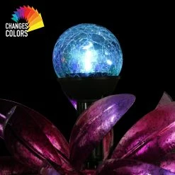- Solar-powered color-changing LED light provides a decorative glow at dusk