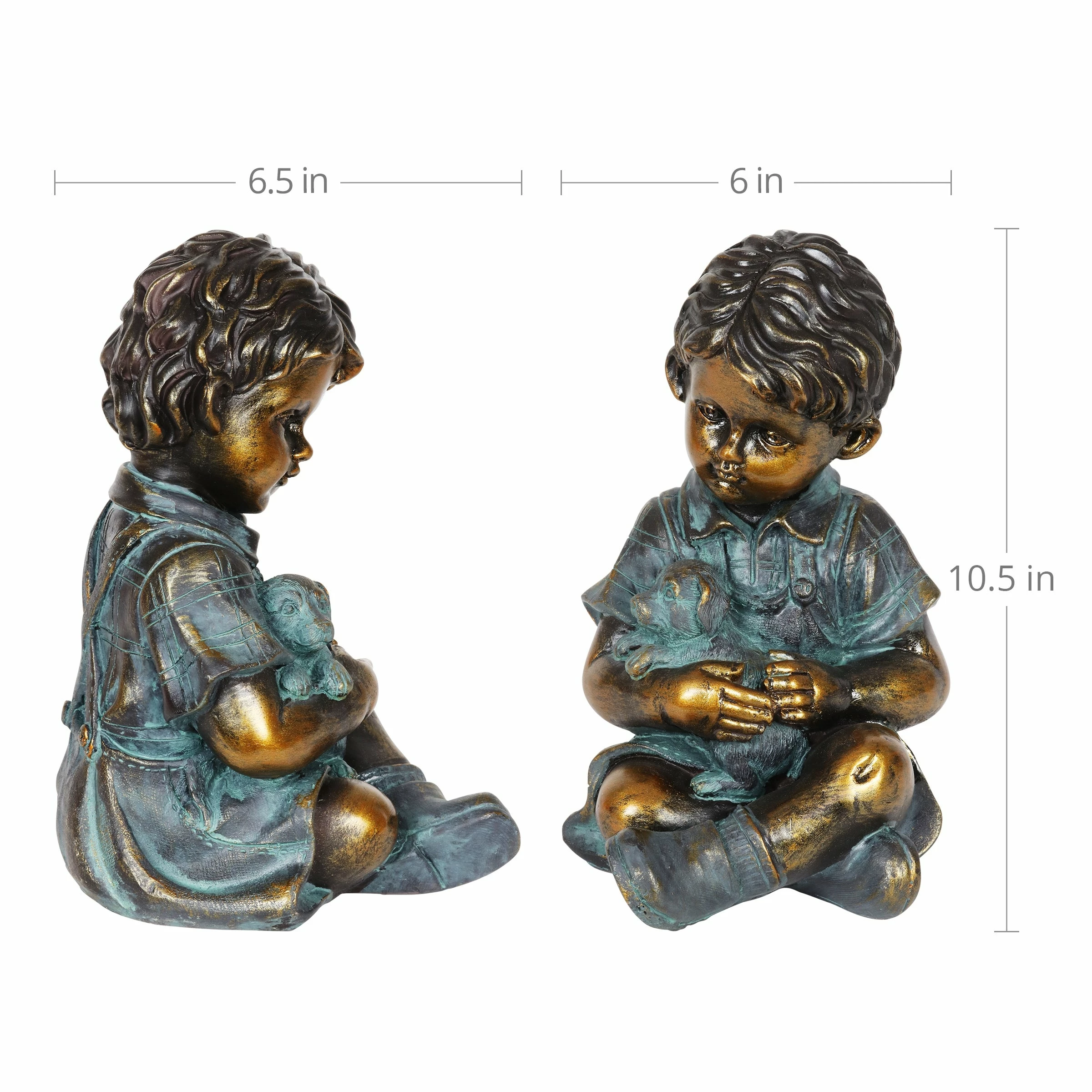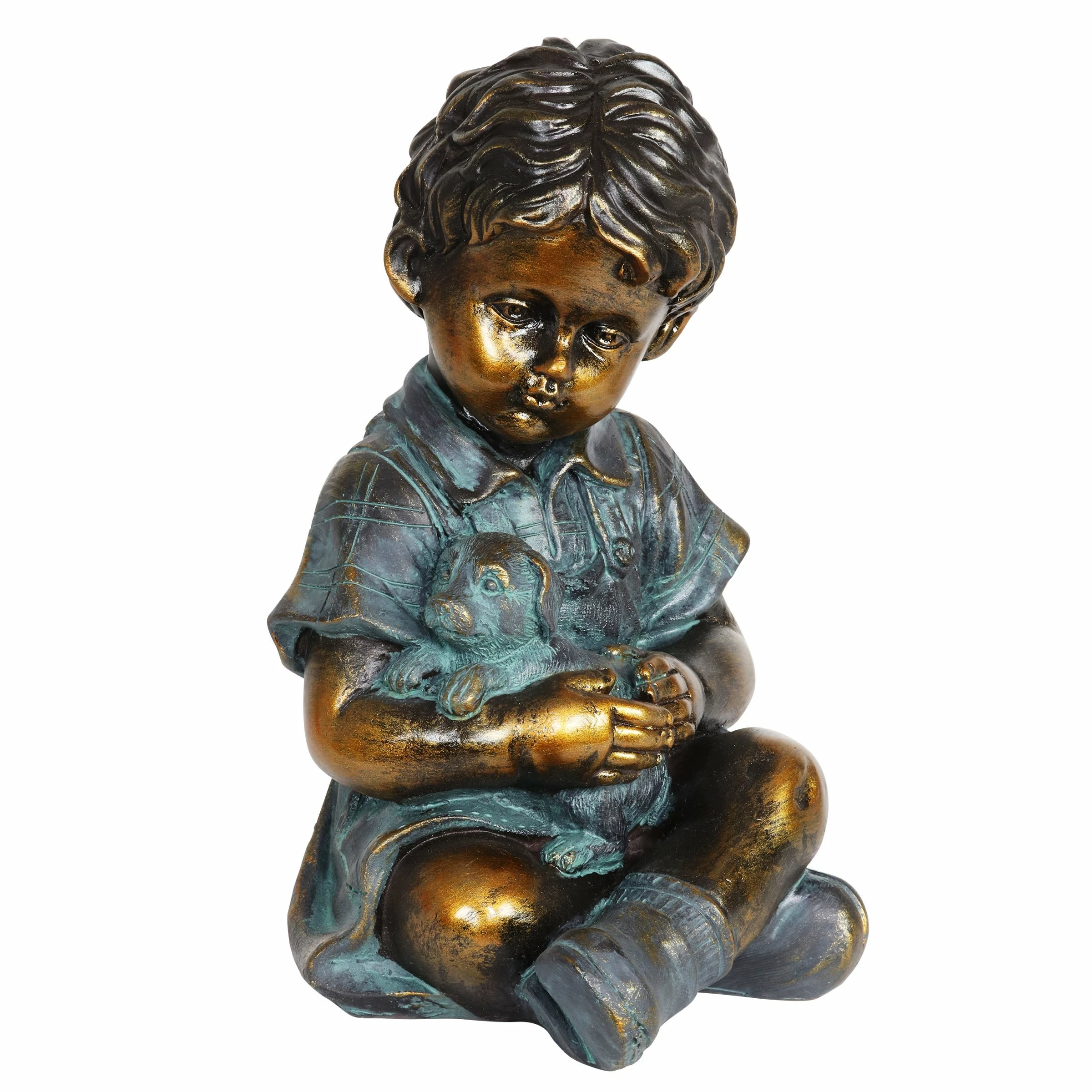 Nothing is quite as sweet as a boy affectionately playing with his puppy. This heartwarming scene comes alive in a beautifully hand painted and designed garden statue. Makes a charming and luxurious looking addition to your garden decor.