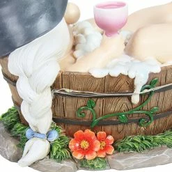 Rub a-dub-dub, Bubble Bath Betty is in the tub! Who can blame her for relaxing with a cup a something at any time of day? Simply set the automatic timer to your desired hour and the LED lights around her bathtub will glow for you, every day. Hand painted and made of durable resin, this adorable decor is guarenteed to make you smile. Makes a great gift for anyone with a cheeky sense of humor!