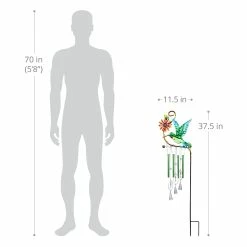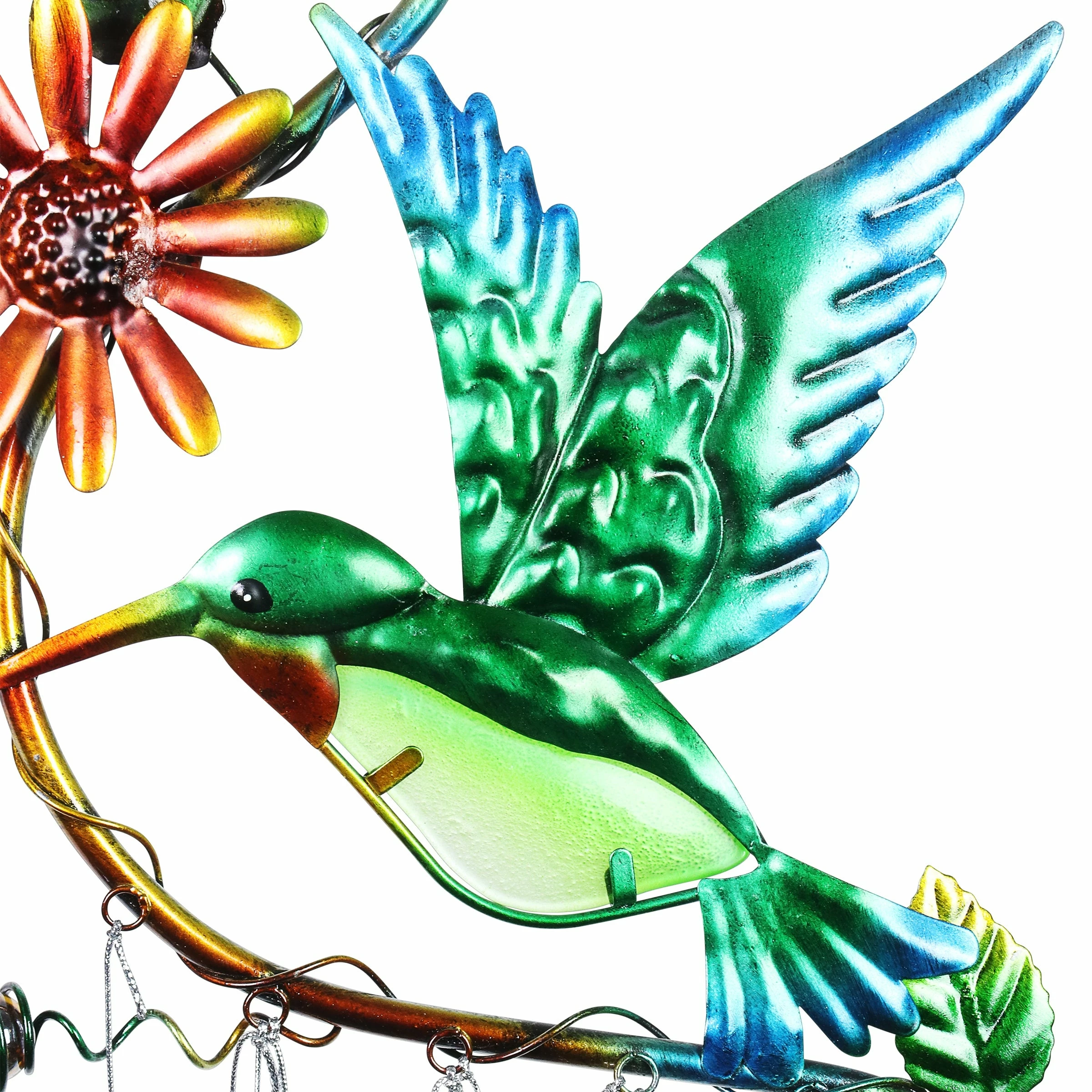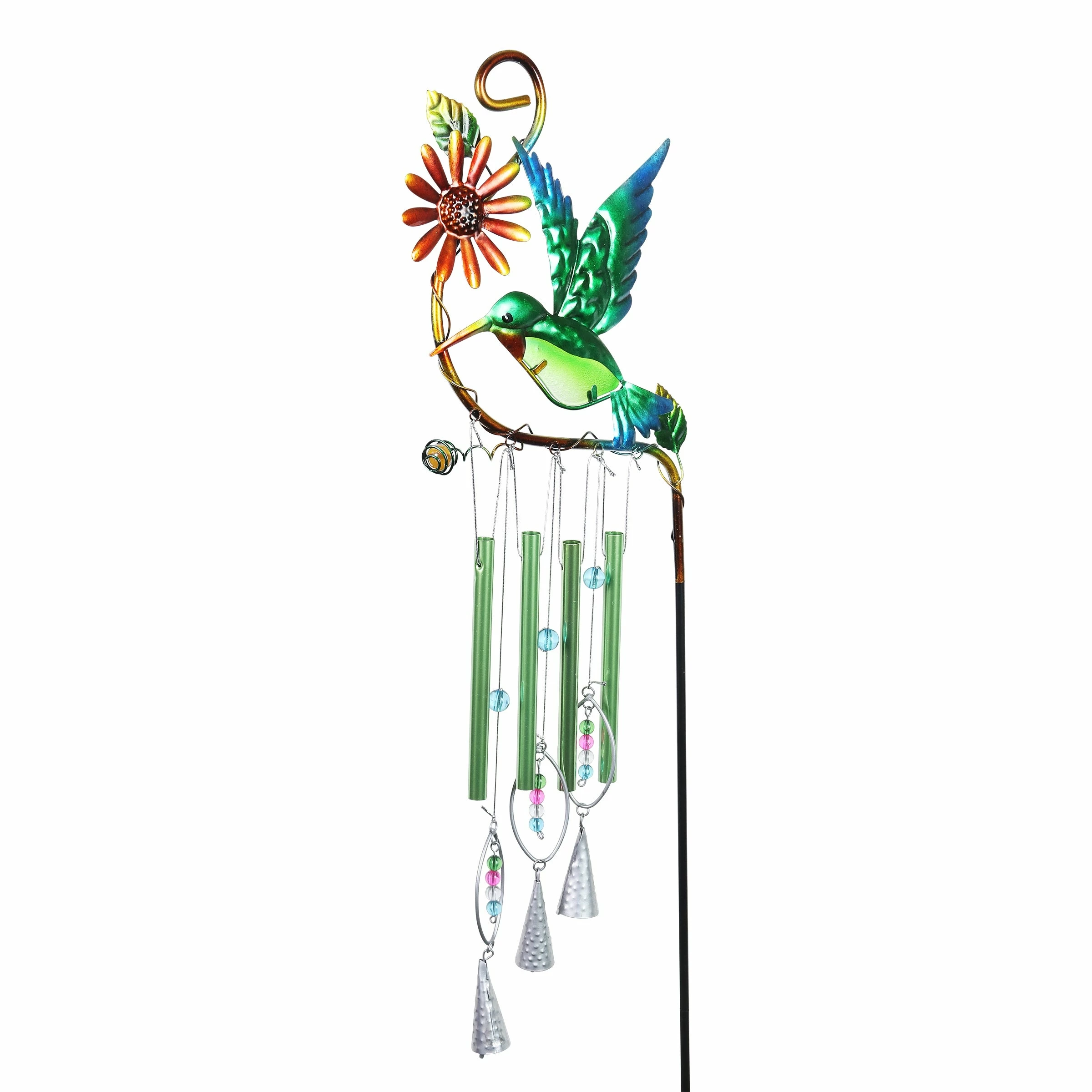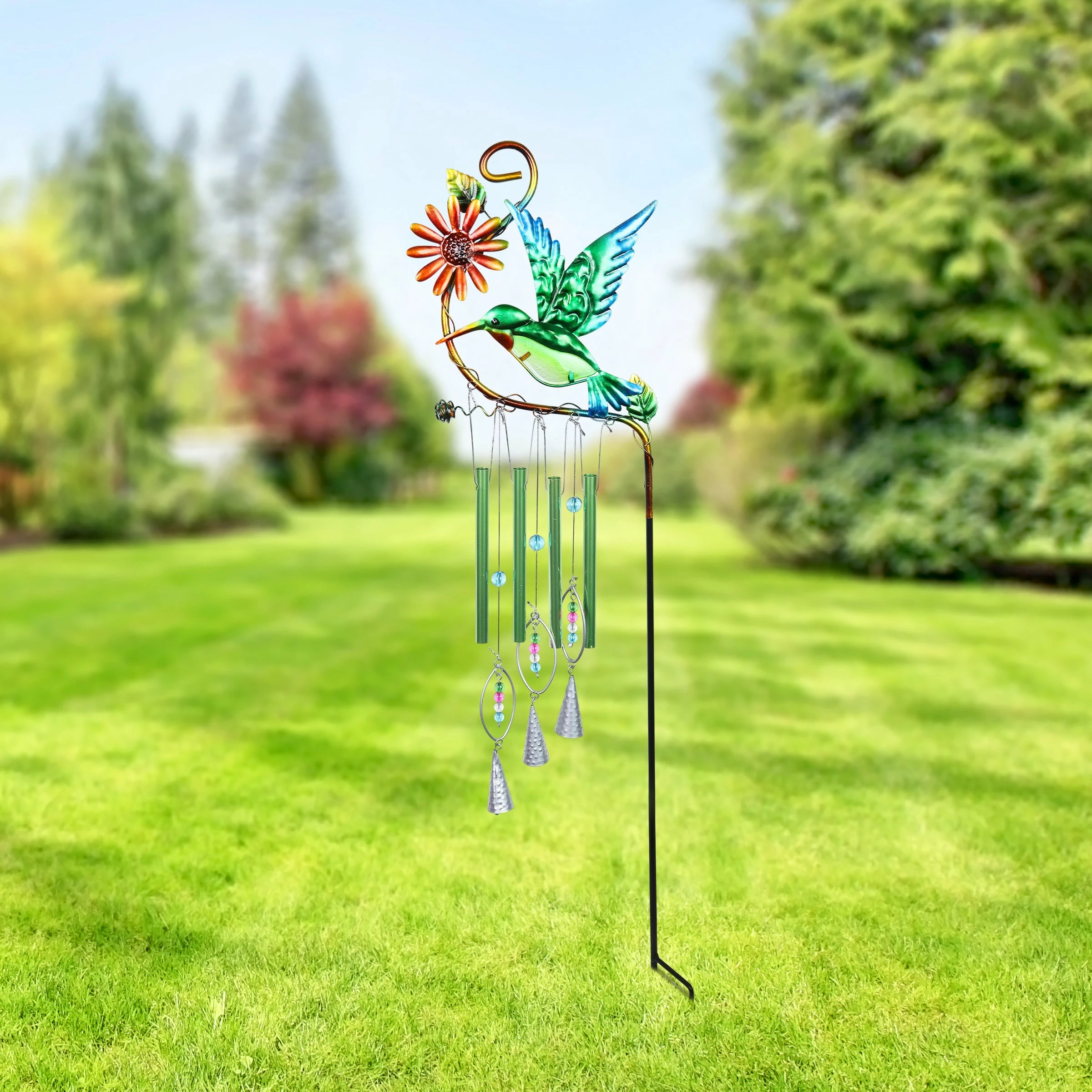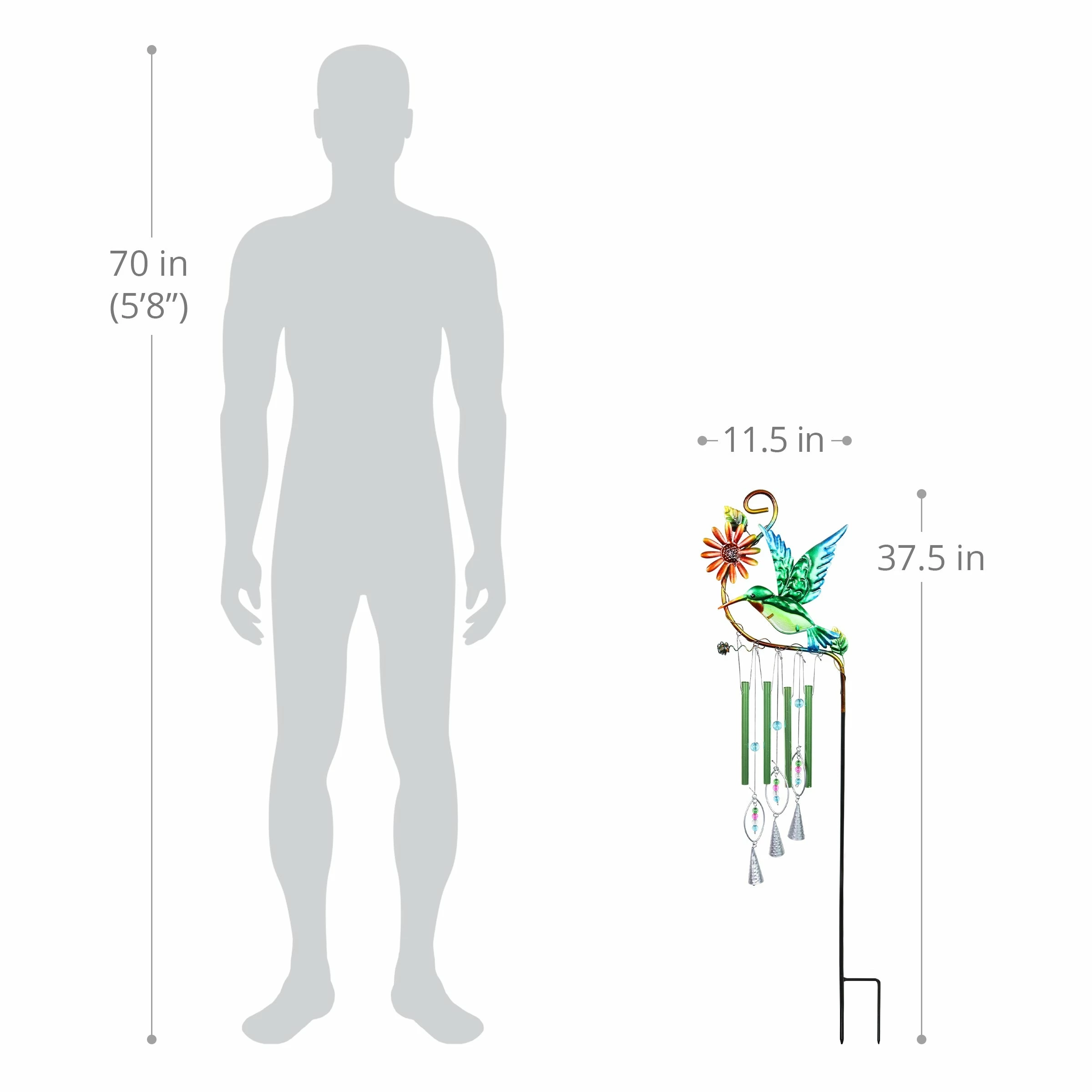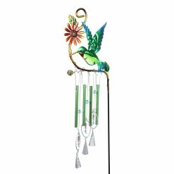 Enjoy the relaxing sounds of hand tuned metal chimes as a gentle breeze passes through this beautiful Green Hummingbird Metal Wind Chime Garden Stake. This charming stake can be placed anywhere in your home or garden to add a pop of color and sweet-sounding music. Makes a cherished gift and a wonderful addition to any home, patio or garden!