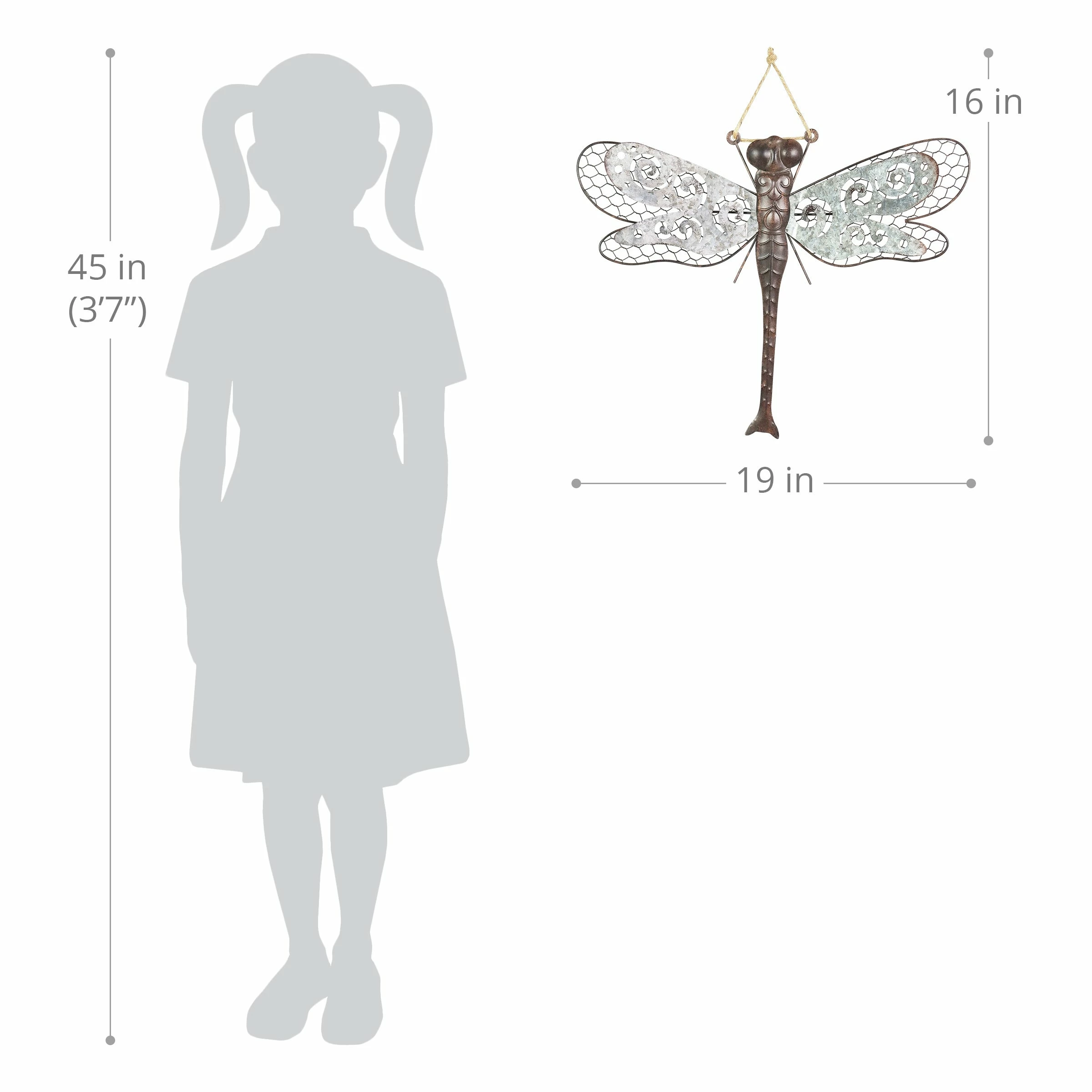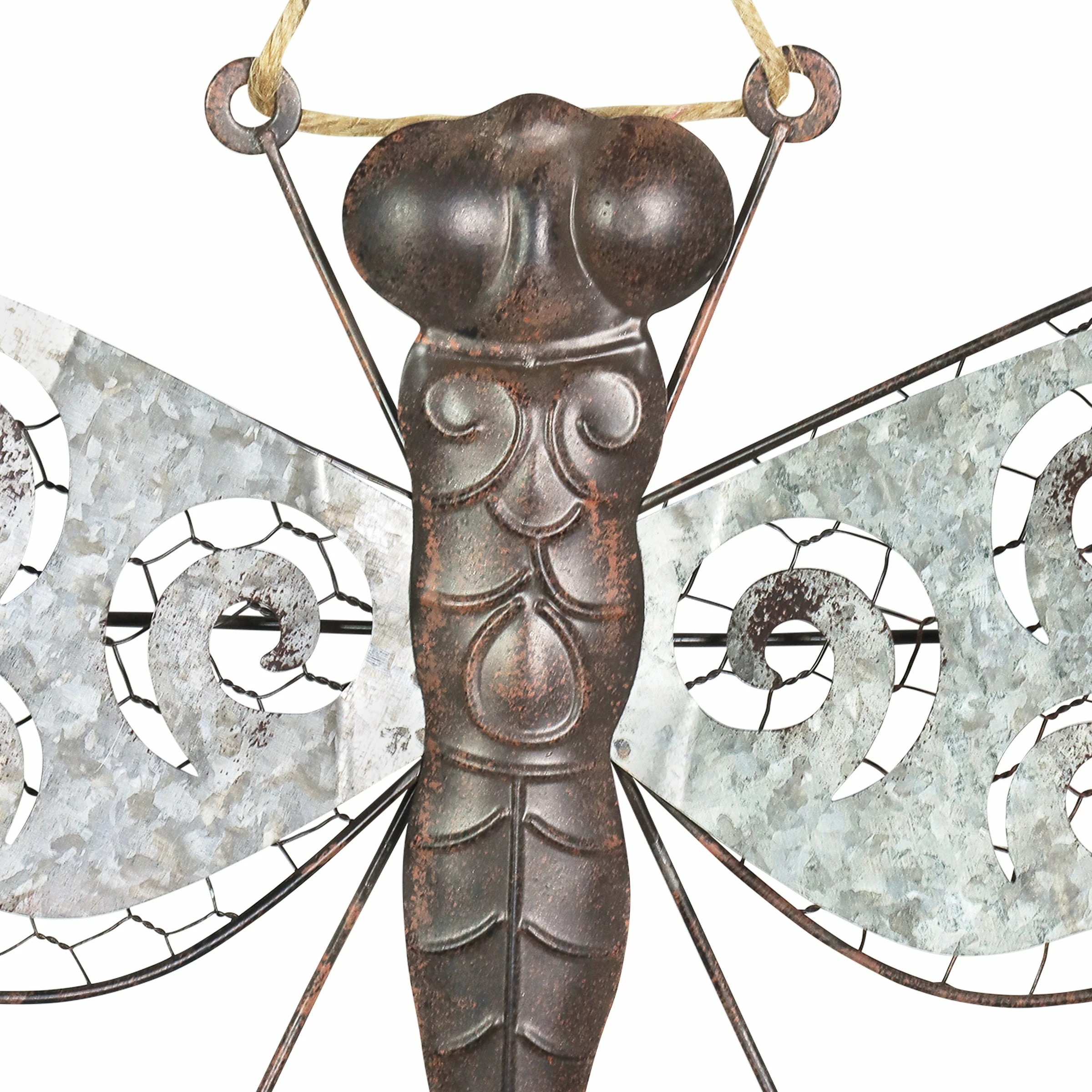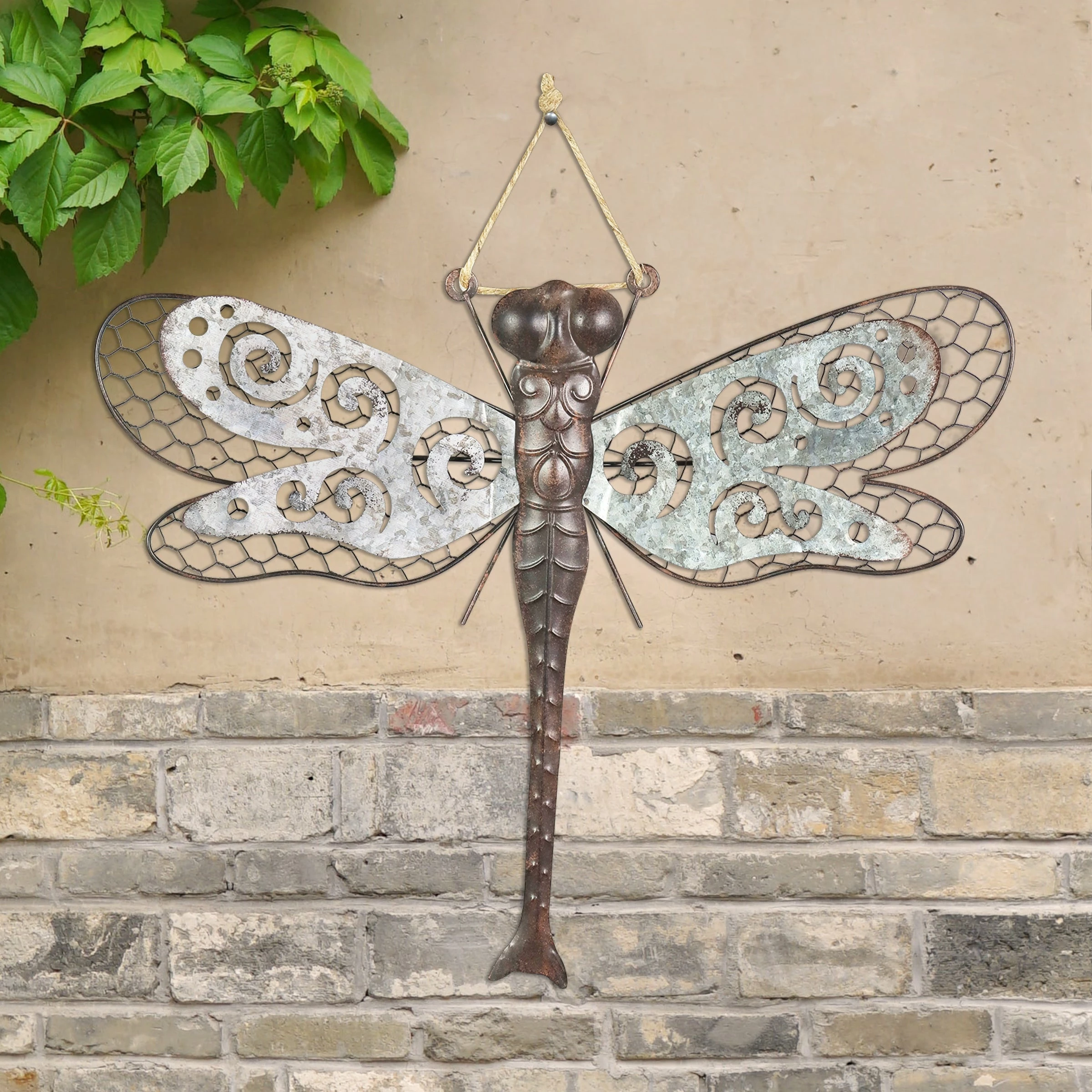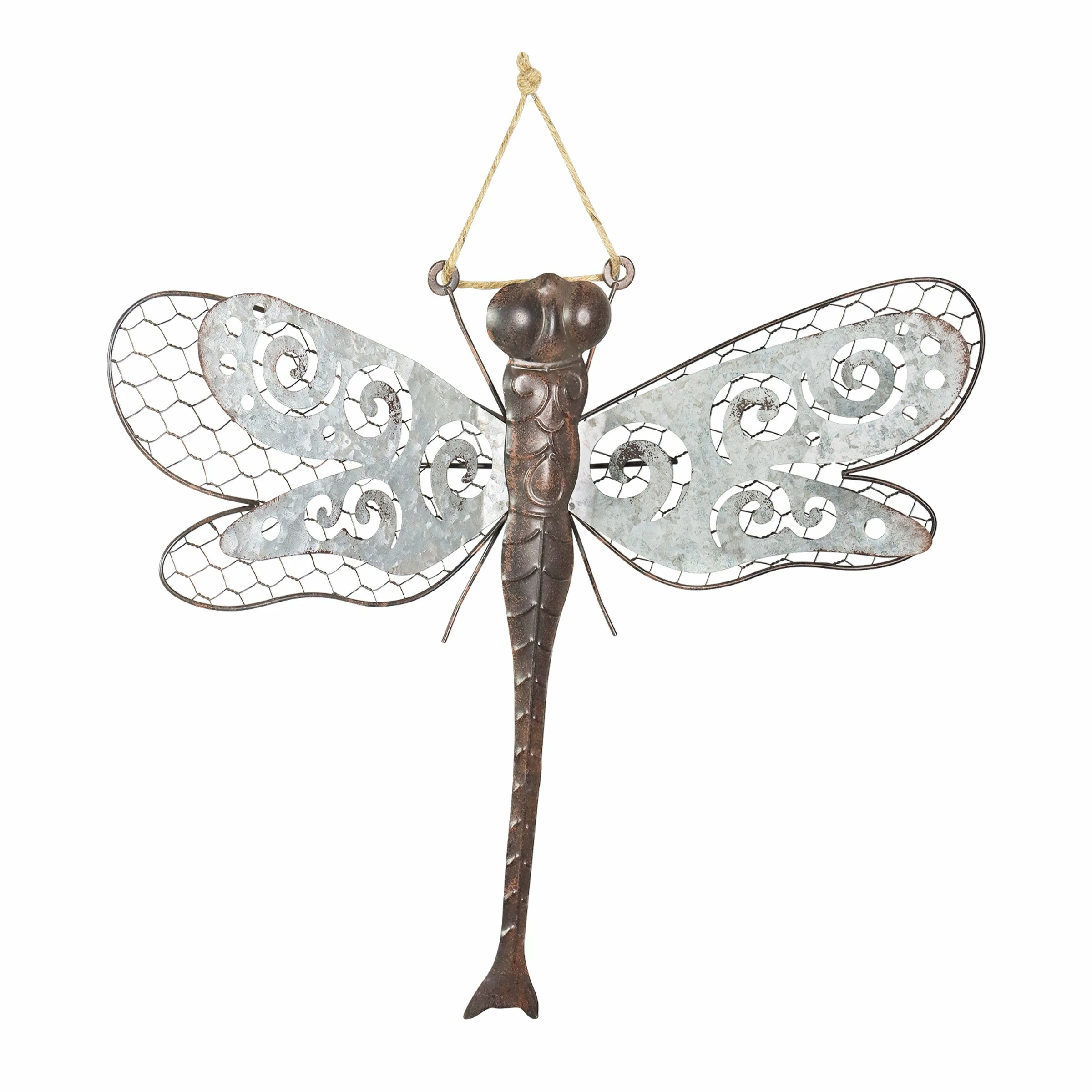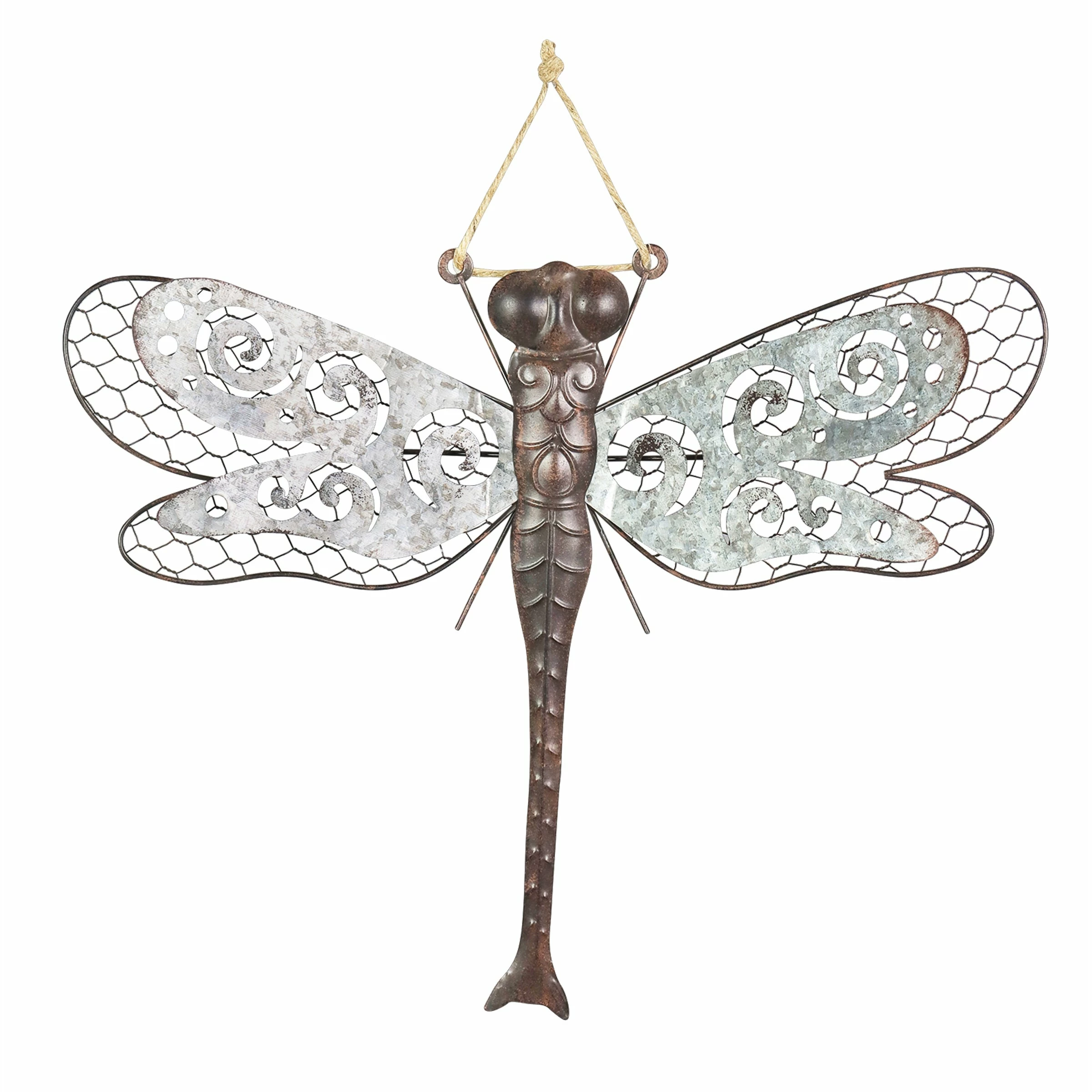 A beautiful piece of metal wall art in neutral colors makes the perfect addition to any wall. This charming double layered dragonfly hanger can be used as decor indoors or out! A symbol of wisdom, change and good fortune, a garden dragonfly makes a wonderful addition to your home and a great gift idea!