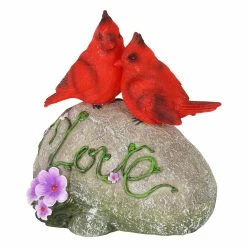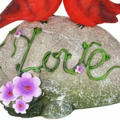 Inspirational Solar Garden Rock Statue spreads the message of Love! This beautiful piece of dΓ©cor is adorned with charming red cardinals and colorful hand painted flowers that illuminate at dusk with solar powered LED light. A heartwarming addition to your garden!
