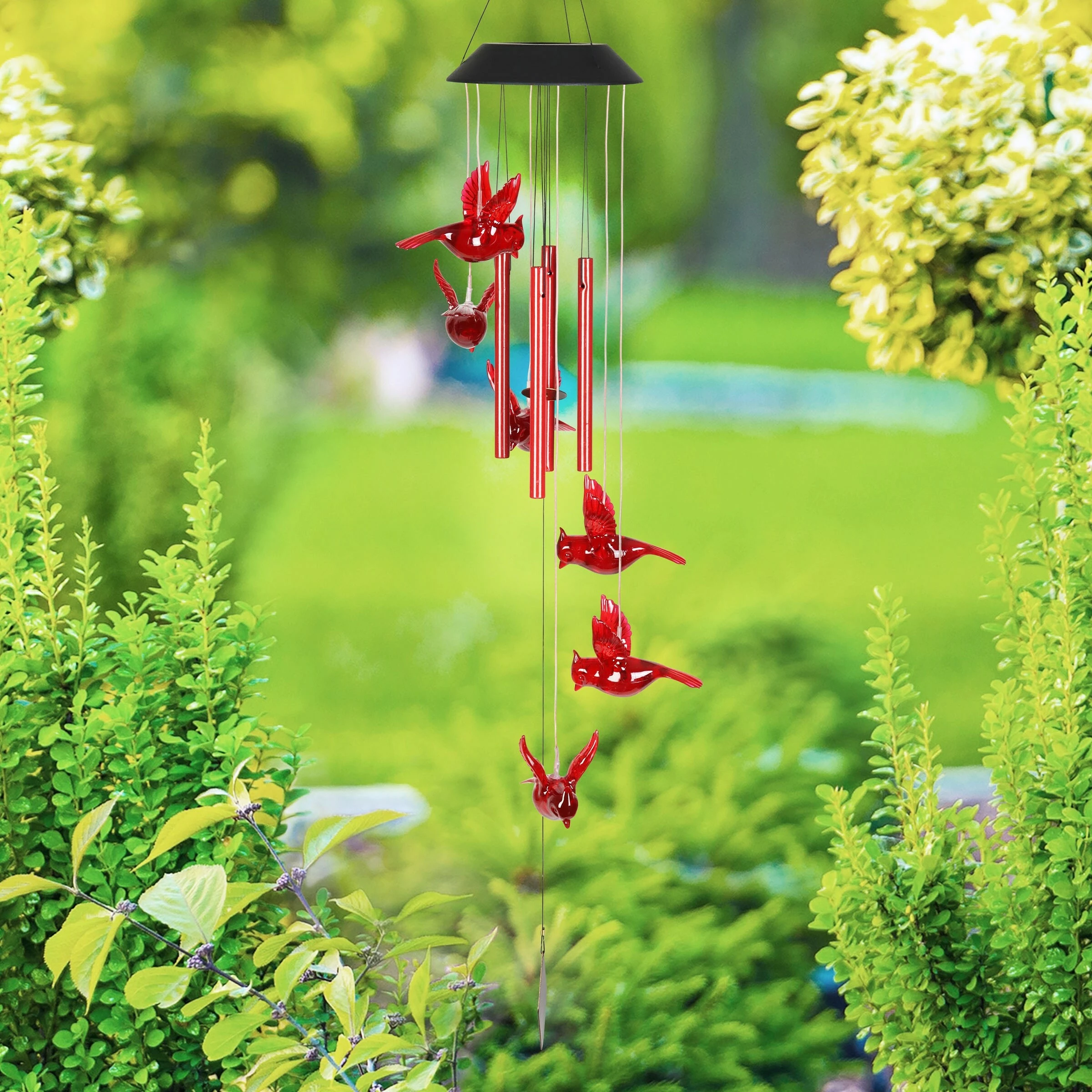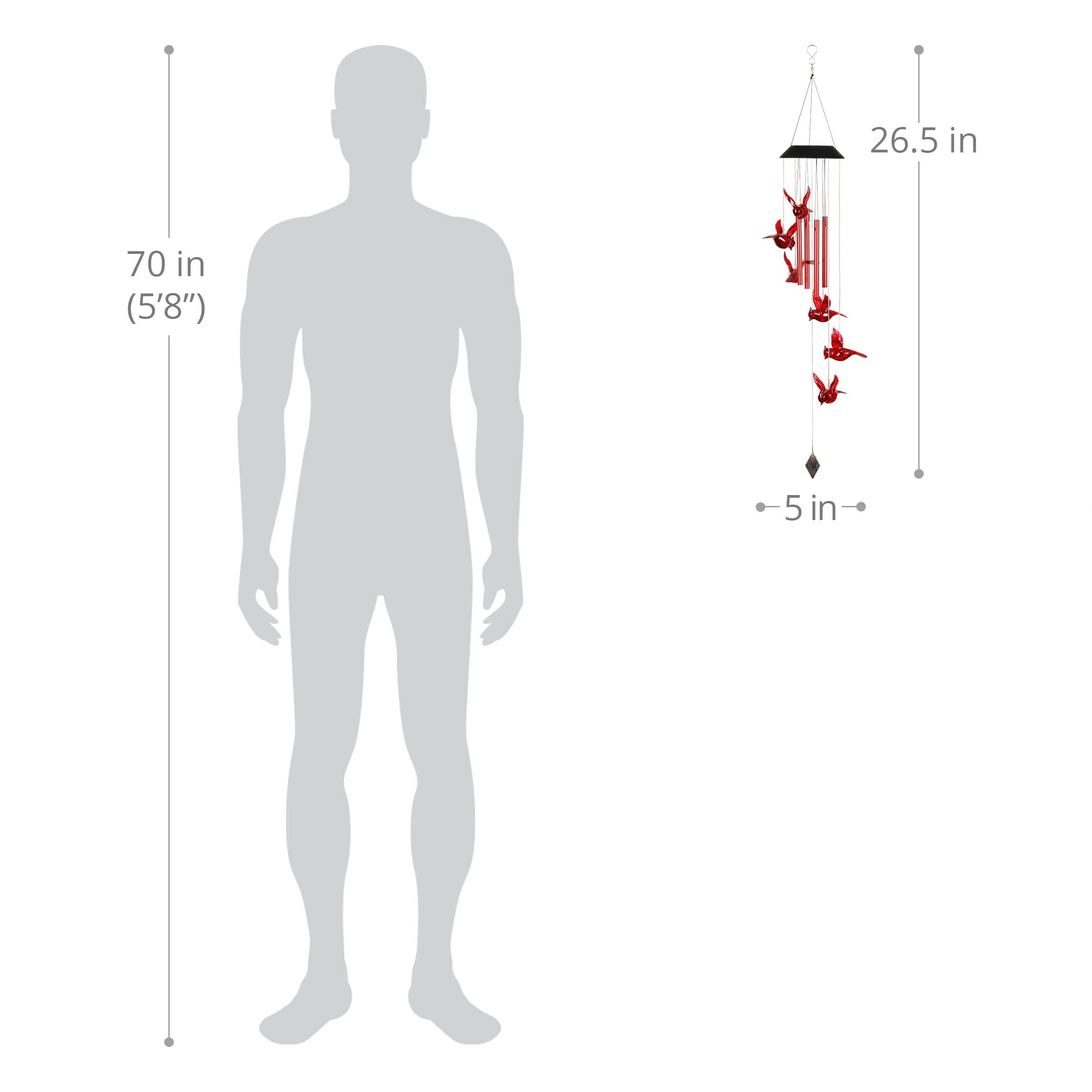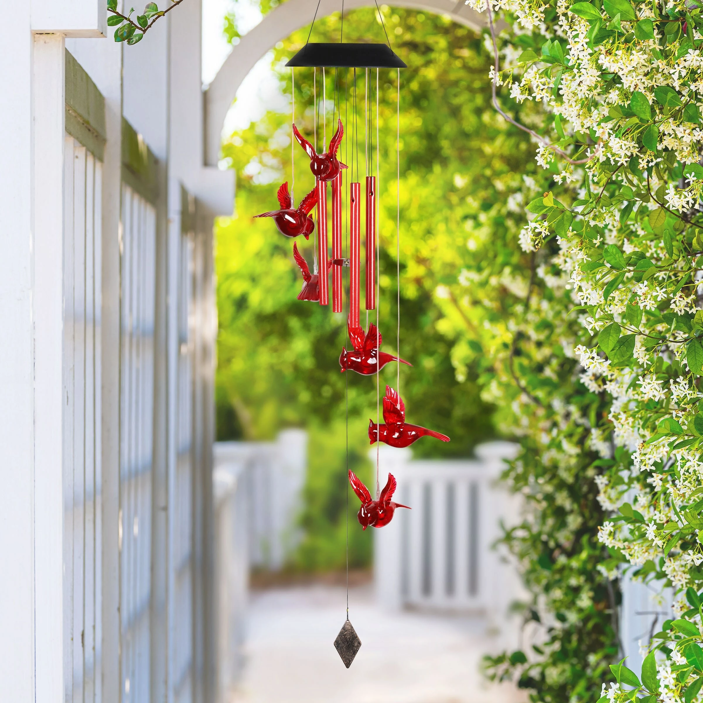 Relaxing chimes and cascading birds make this exquisite wind chime a feast for the senses! The beautifully tuned metal chimes will sing in the breeze. Solar powered LED lights will charge during the day and automatically illuminate at dusk, adding color, light and charm to your home! Makes a wonderful addition to your patio, yard or garden and an impressive gift for the garden enthusiast!
