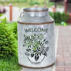 A beautiful stamped metal flower design will illuminate from within this decorative rustic lantern. As the LED light automatically glows at dusk, so will the message “WELCOME”! Makes a heartwarming addition to your garden and a wonderful gift idea too!