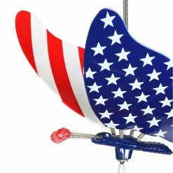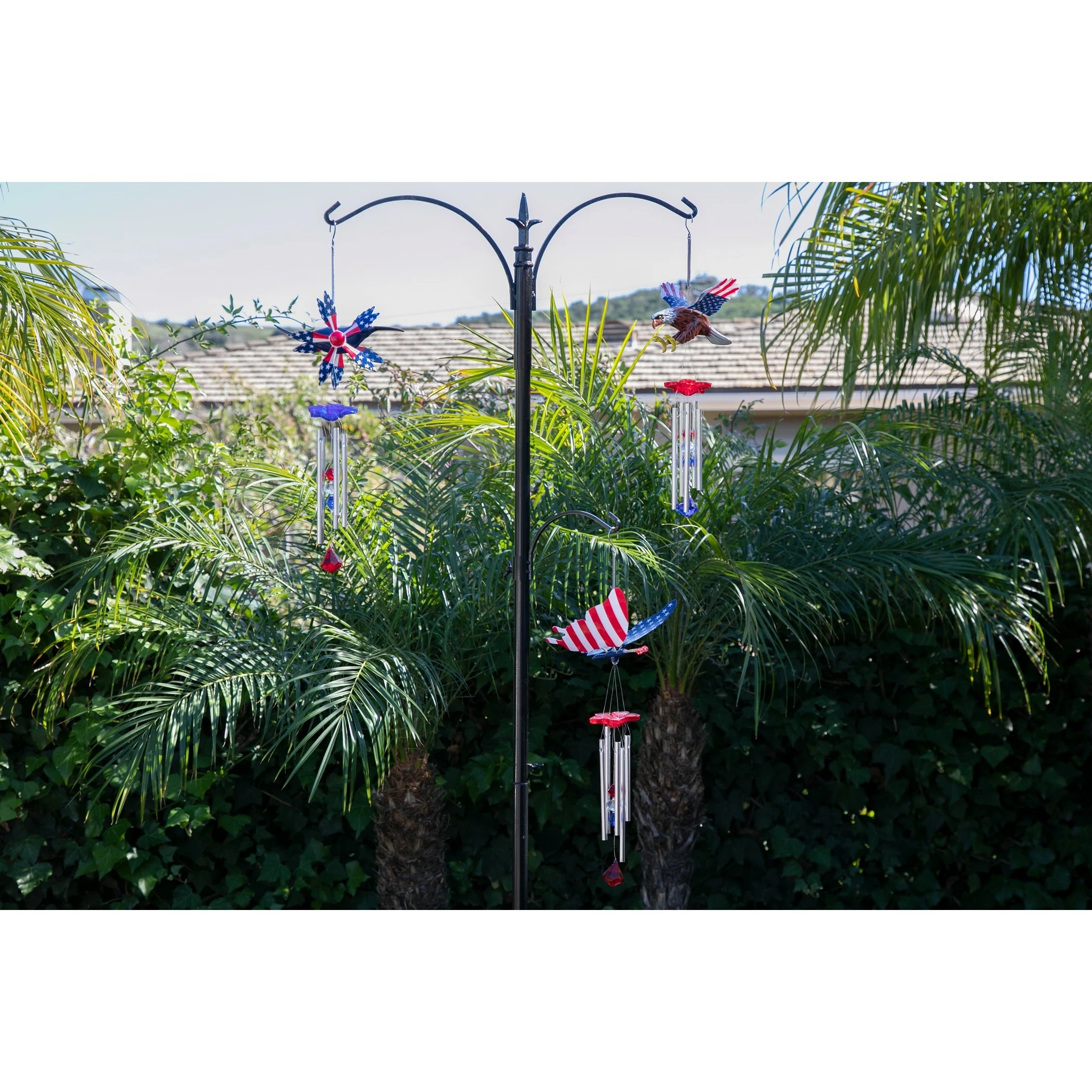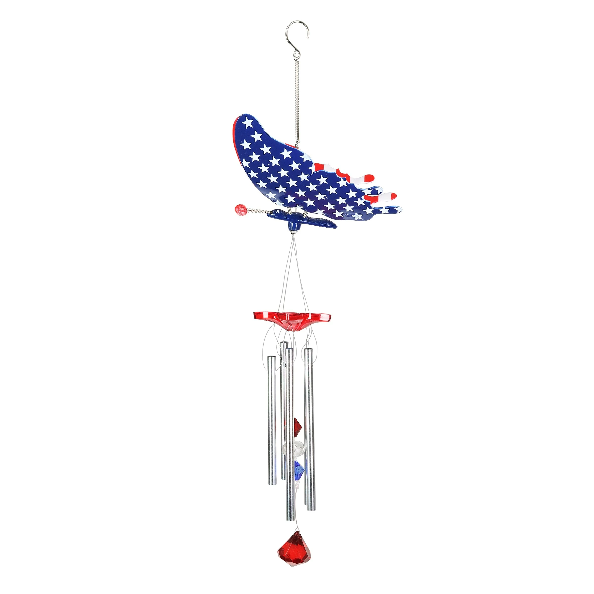Enjoy the relaxing sounds of wind chimes as a gentle breeze passes through this beautifully hand painted Patriotic Butterfly Wind Chime. The WindyWings will gently glide up and down simulating flight as the metal tuned chimes sing with delight! This charming wind chime adds a pop of patriotic pride with its stripes and stars design. Add color and sweet-sounding music to any home!