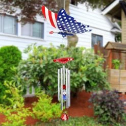 - Beautifully hand painted red, white and blue wind chime adds patriotic pride and relaxing music to your garden