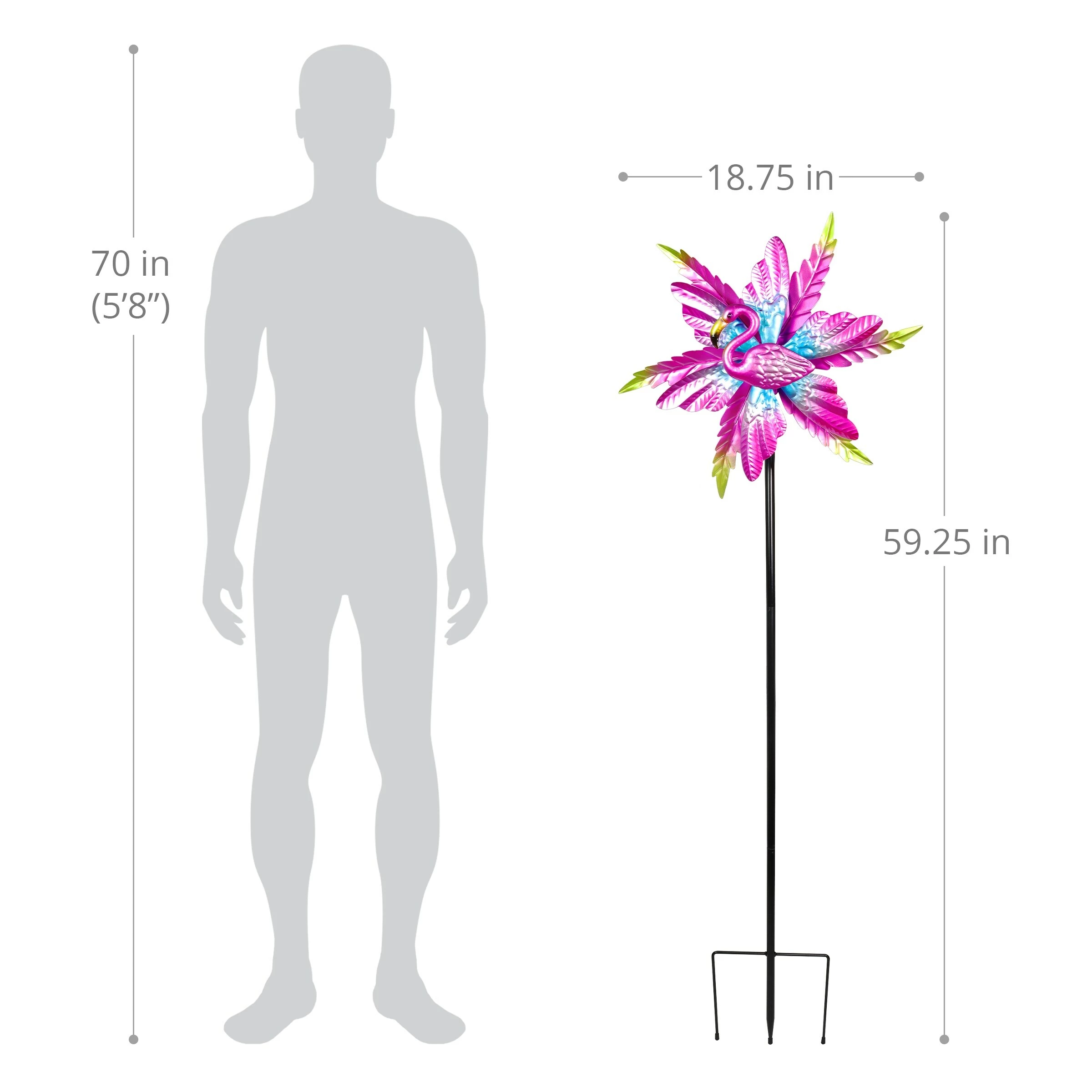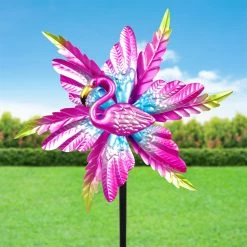 It’s double the fun when this Metallic Pink Flamingo’s feathers start spinning in two directions in your garden! Watch as a gentle breeze begins the movement of this beautifully crafted metal garden stake. This stake makes a wonderful addition to your home and a great gift for the garden enthusiast.