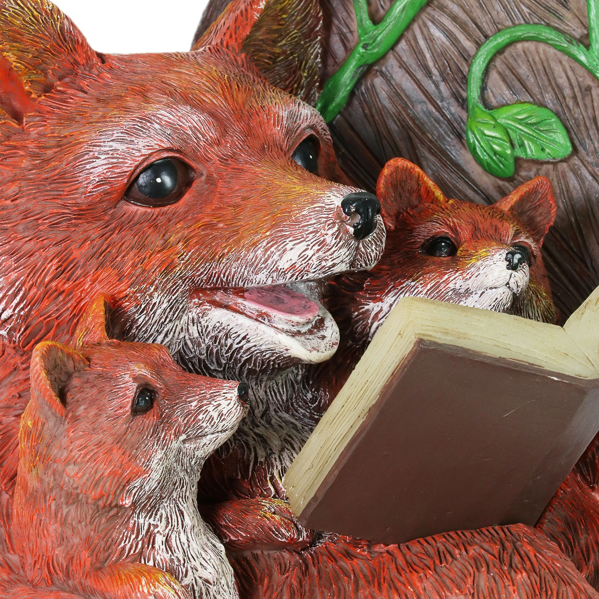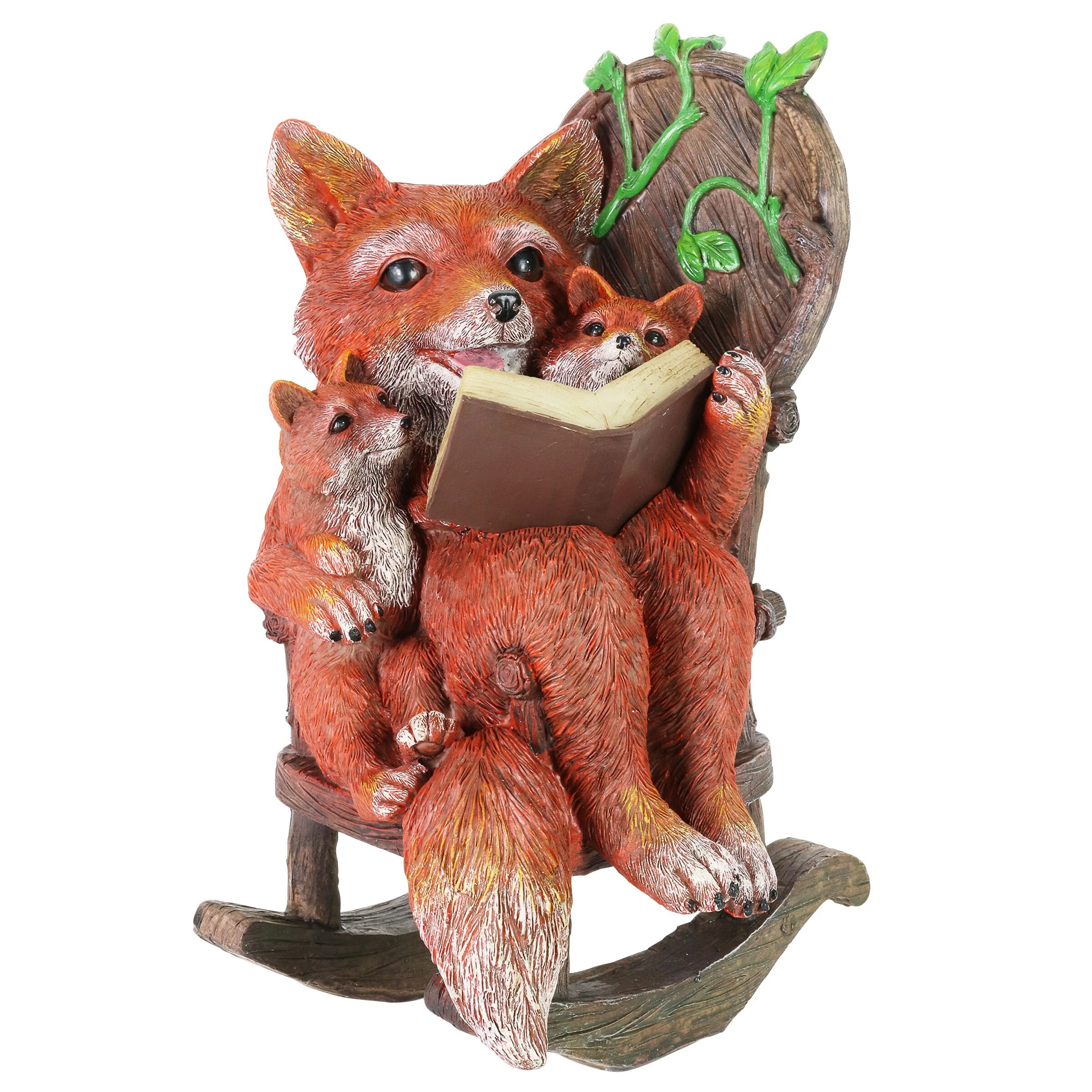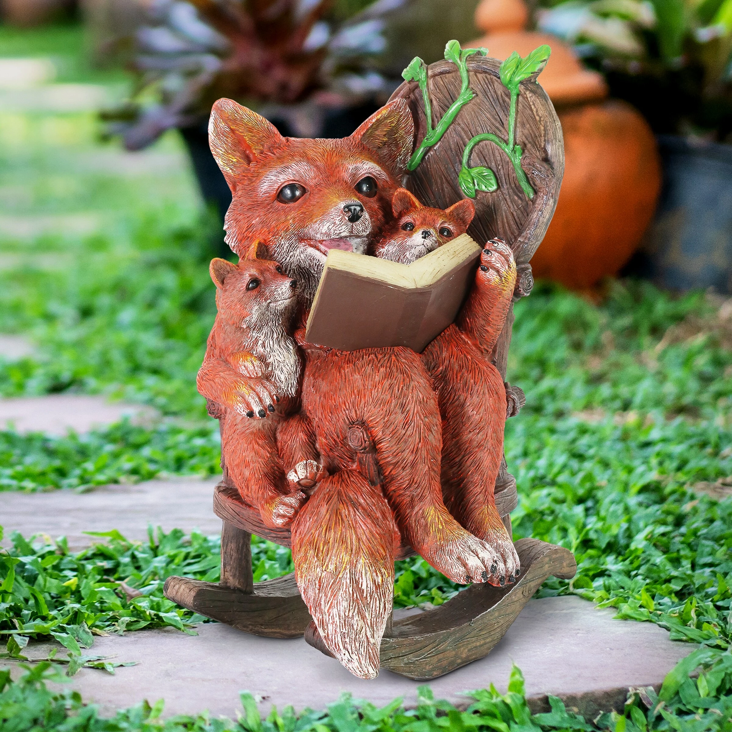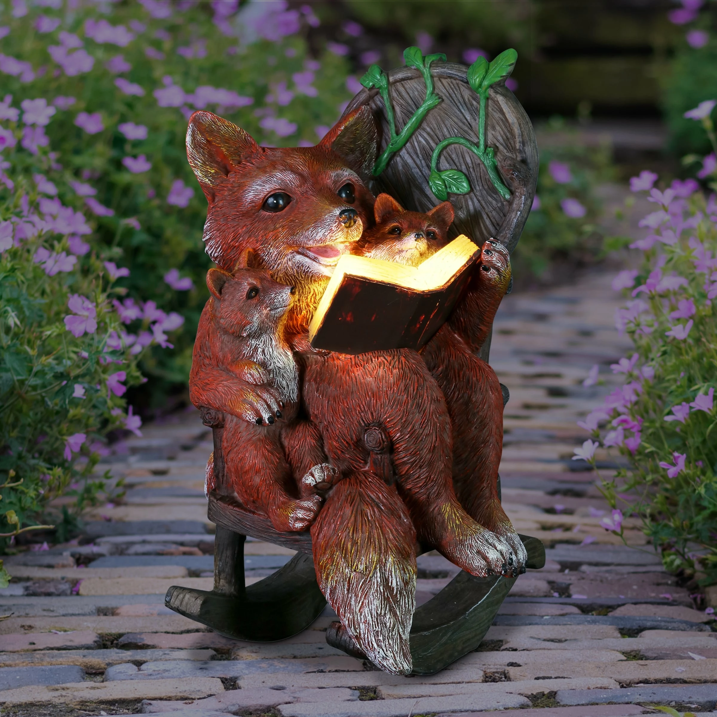 Rocking and reading with youngsters snuggled close, this nurturing fox garden statuary is an endearing addition to any garden. With 5 solar-powered LED lights, these foxes will never put that book down, day or night! Makes a great gift for the inspired reader, teacher, parent, grandparent, and garden enthusiast!
