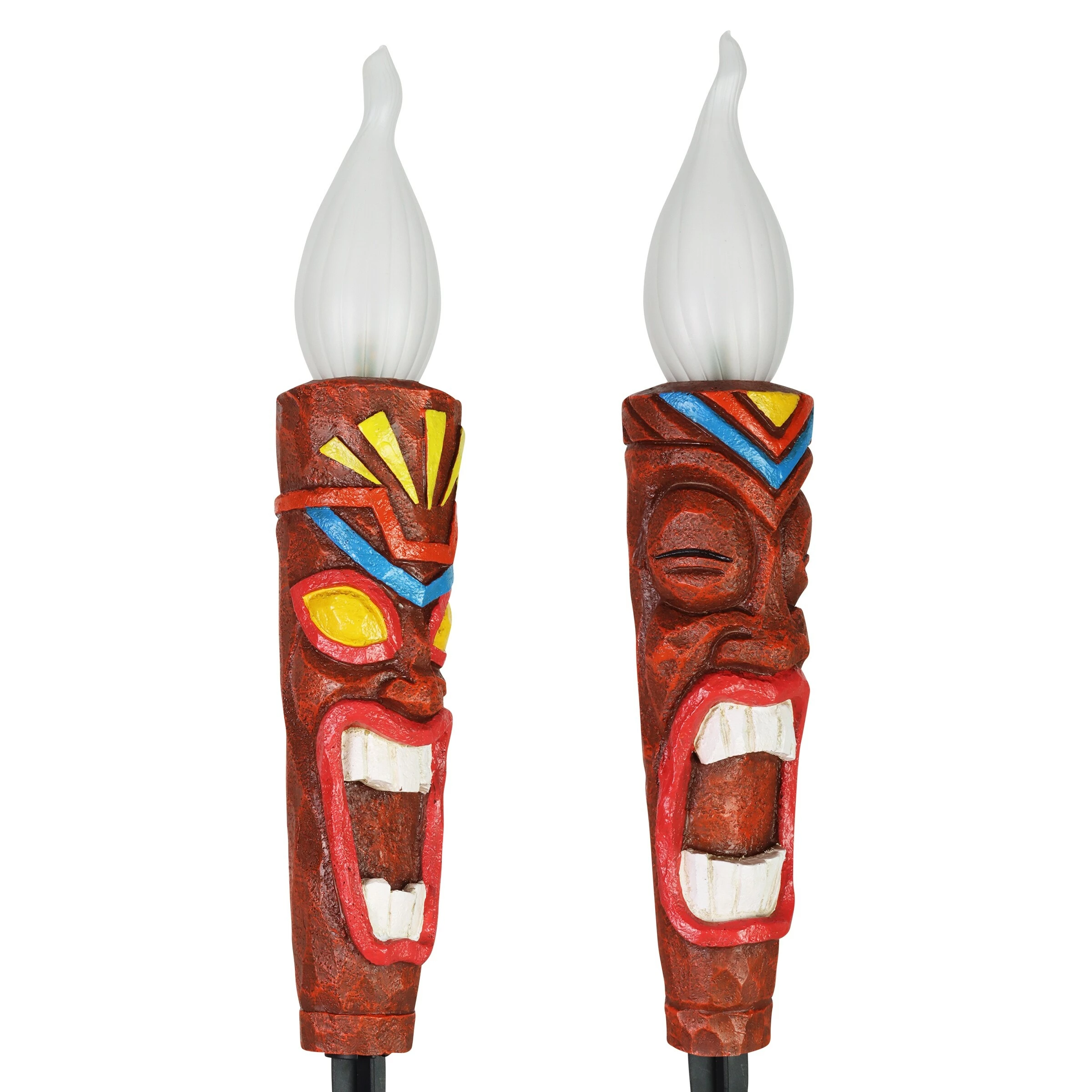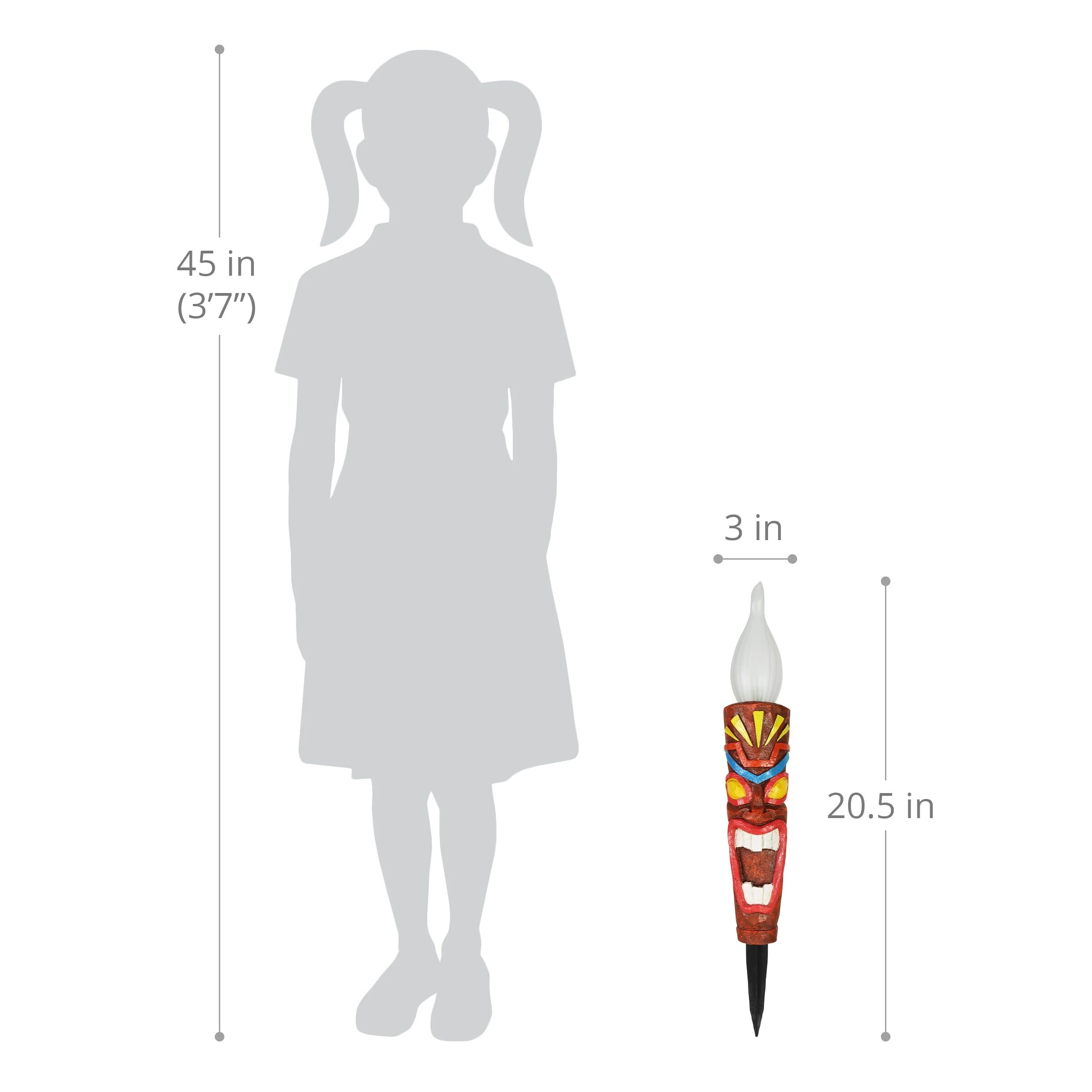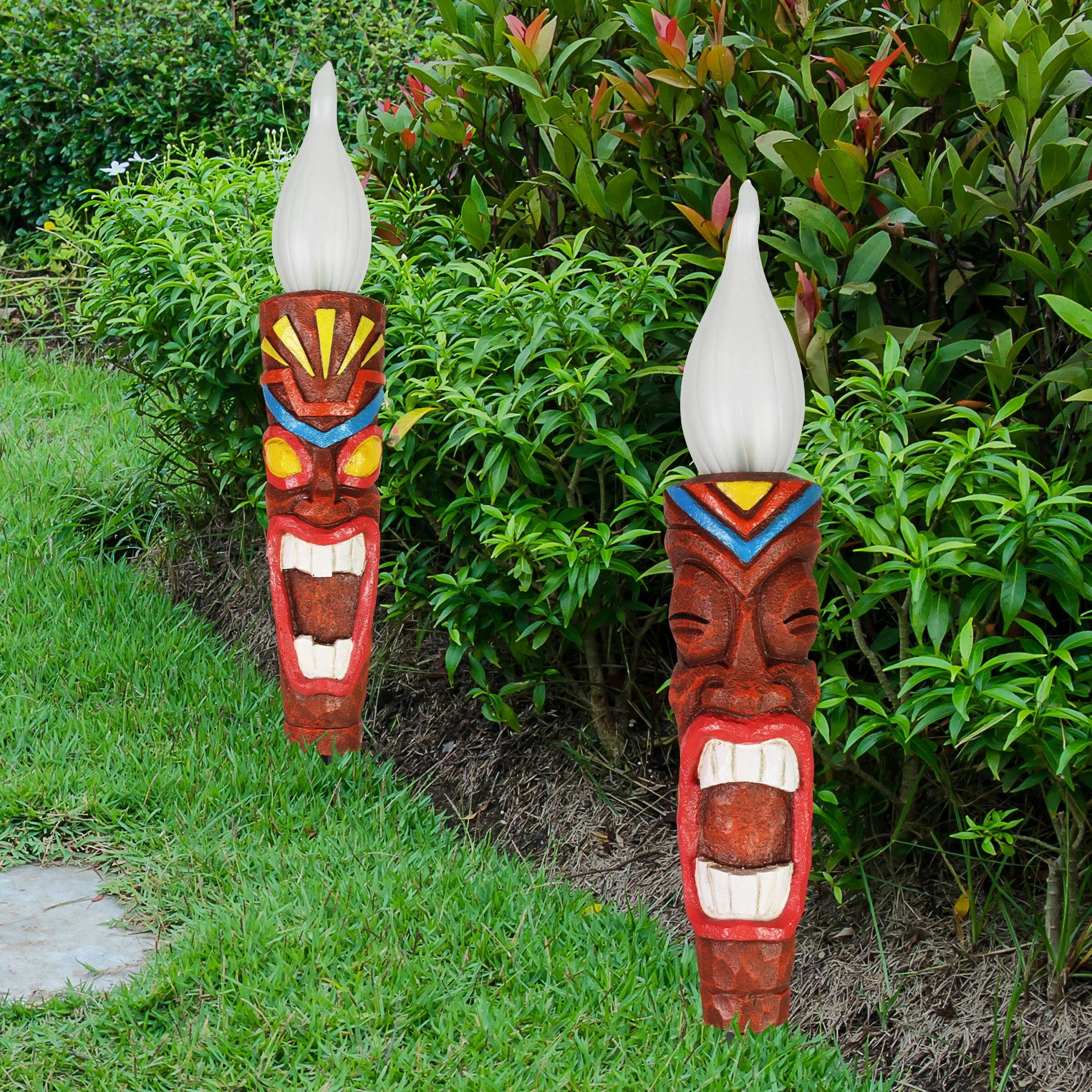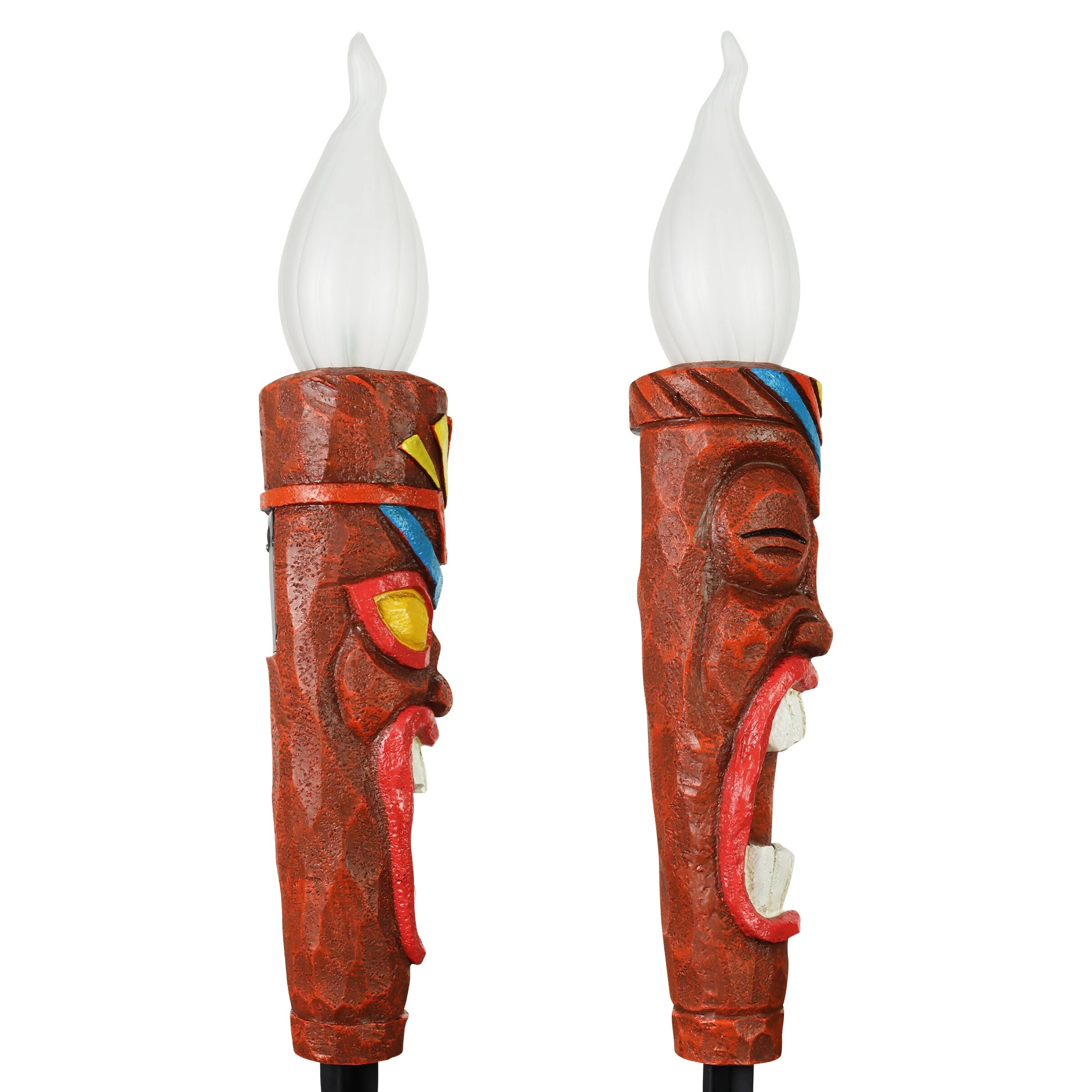 - Hand-painted tiki flameless torch stakes add a touch of tropical fun to your garden