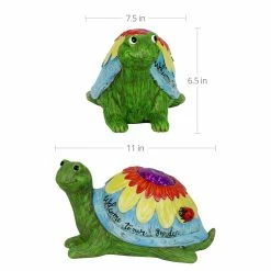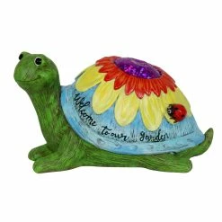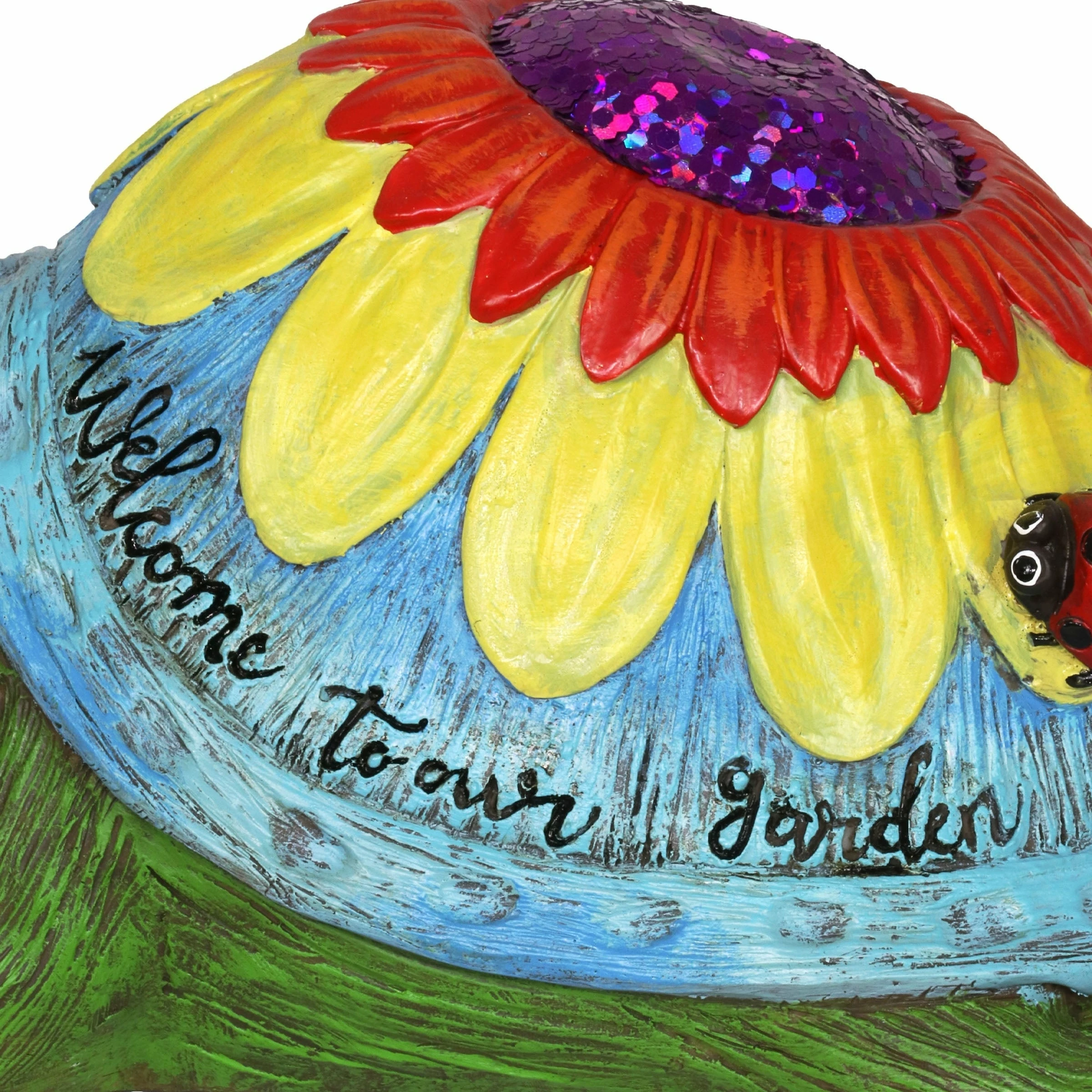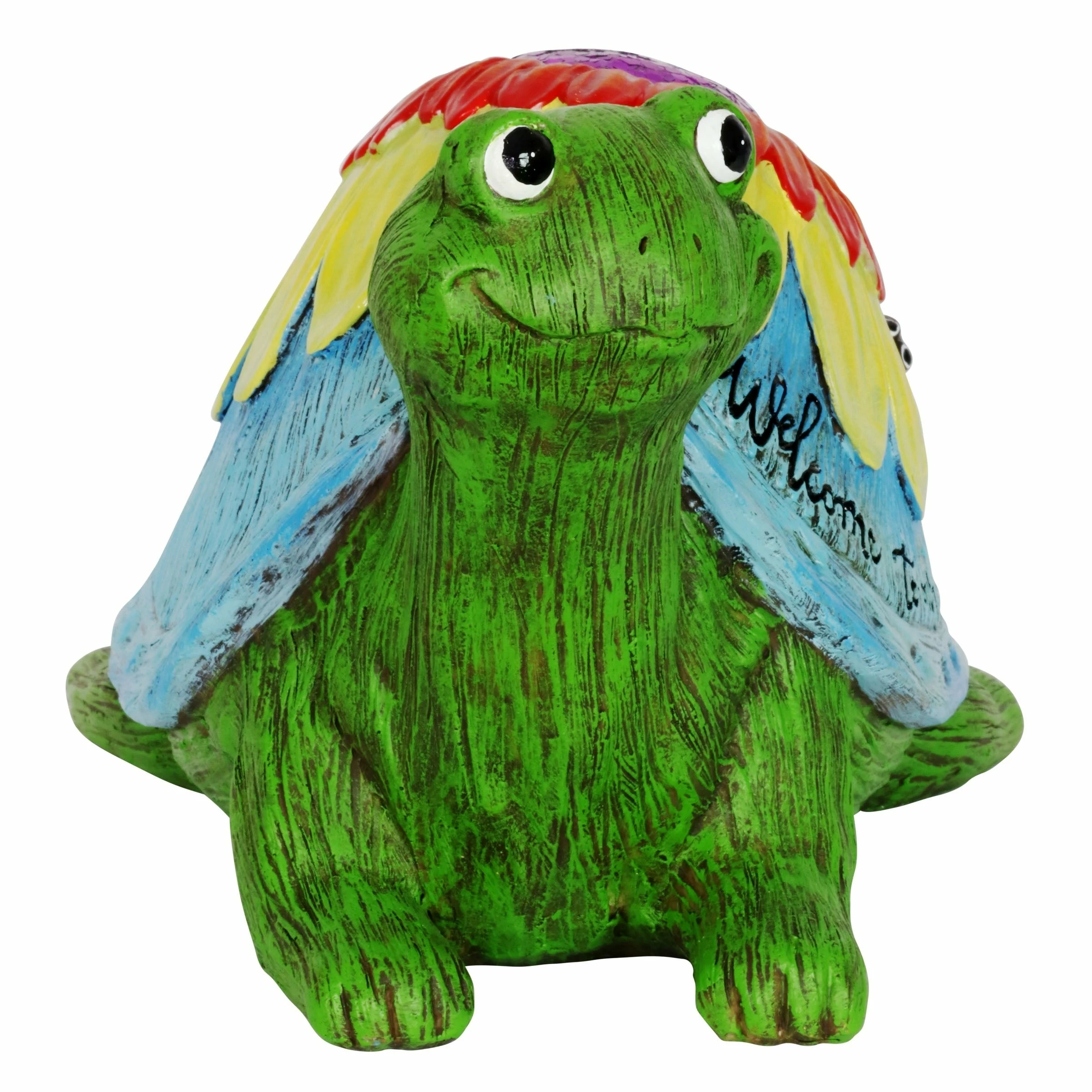 Greet your guests with a colorfully hand painted Welcome Garden Turtle Statue. Beautiful details include a bright sunflower, ladybug and Welcome To Our Garden inscribed message. This adorable critter adds a touch of fun and whimsy to your garden!