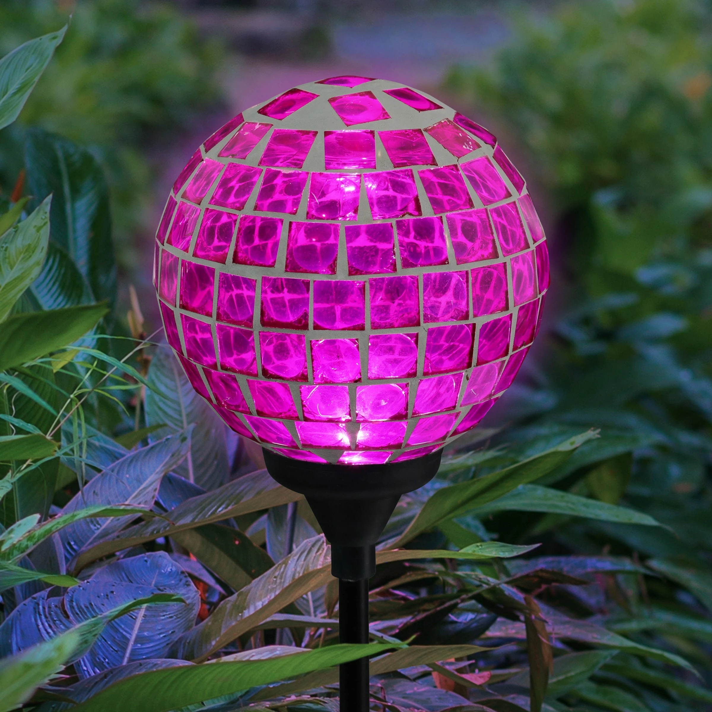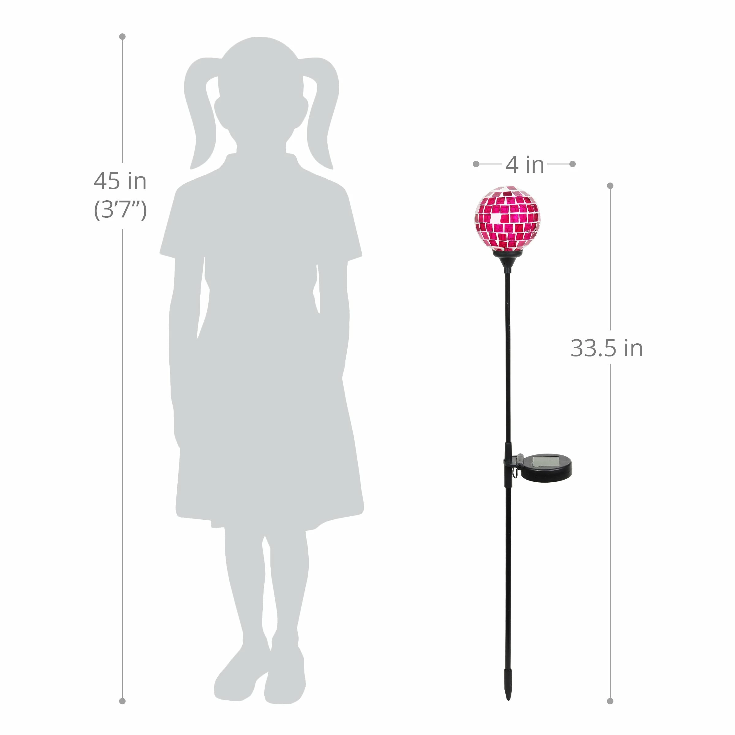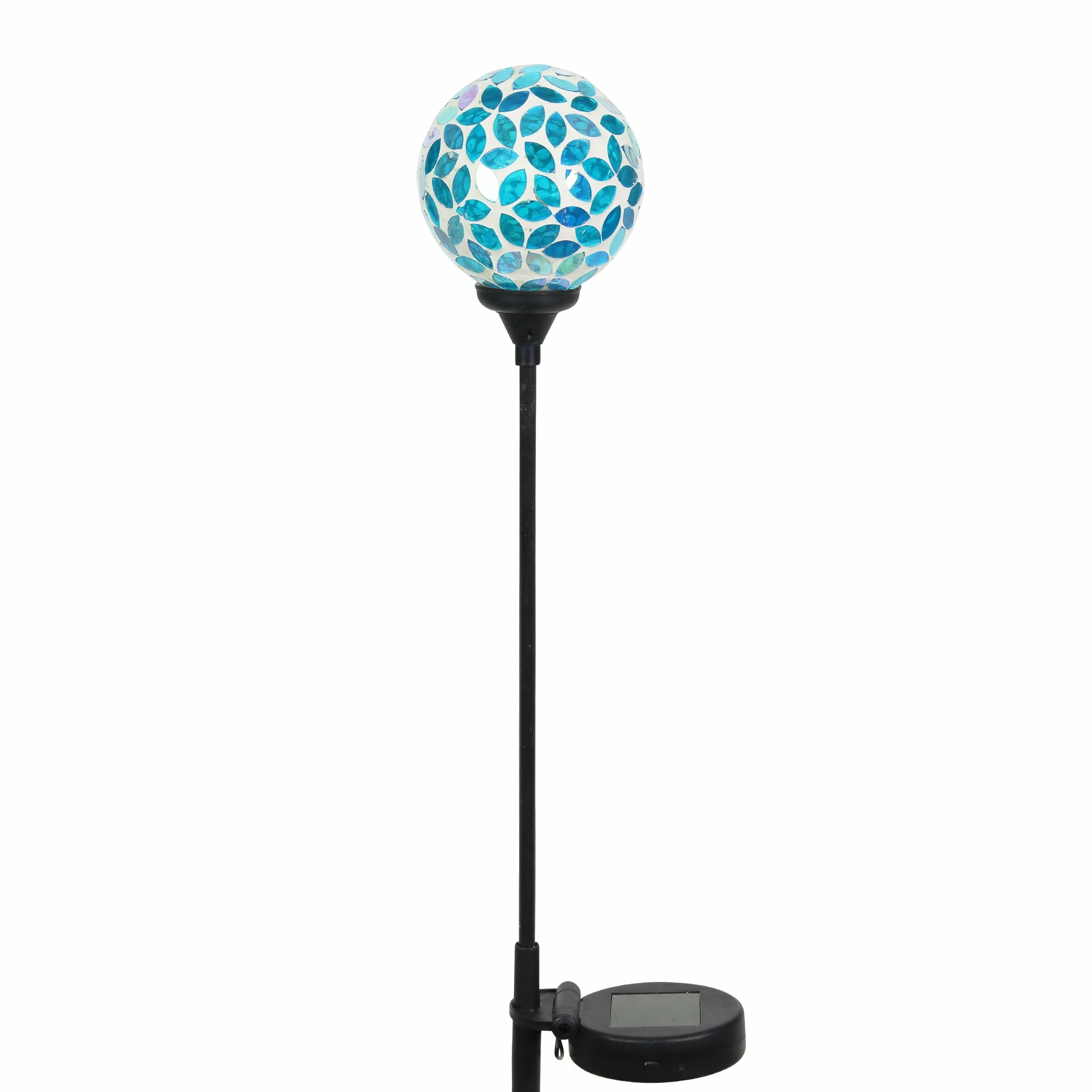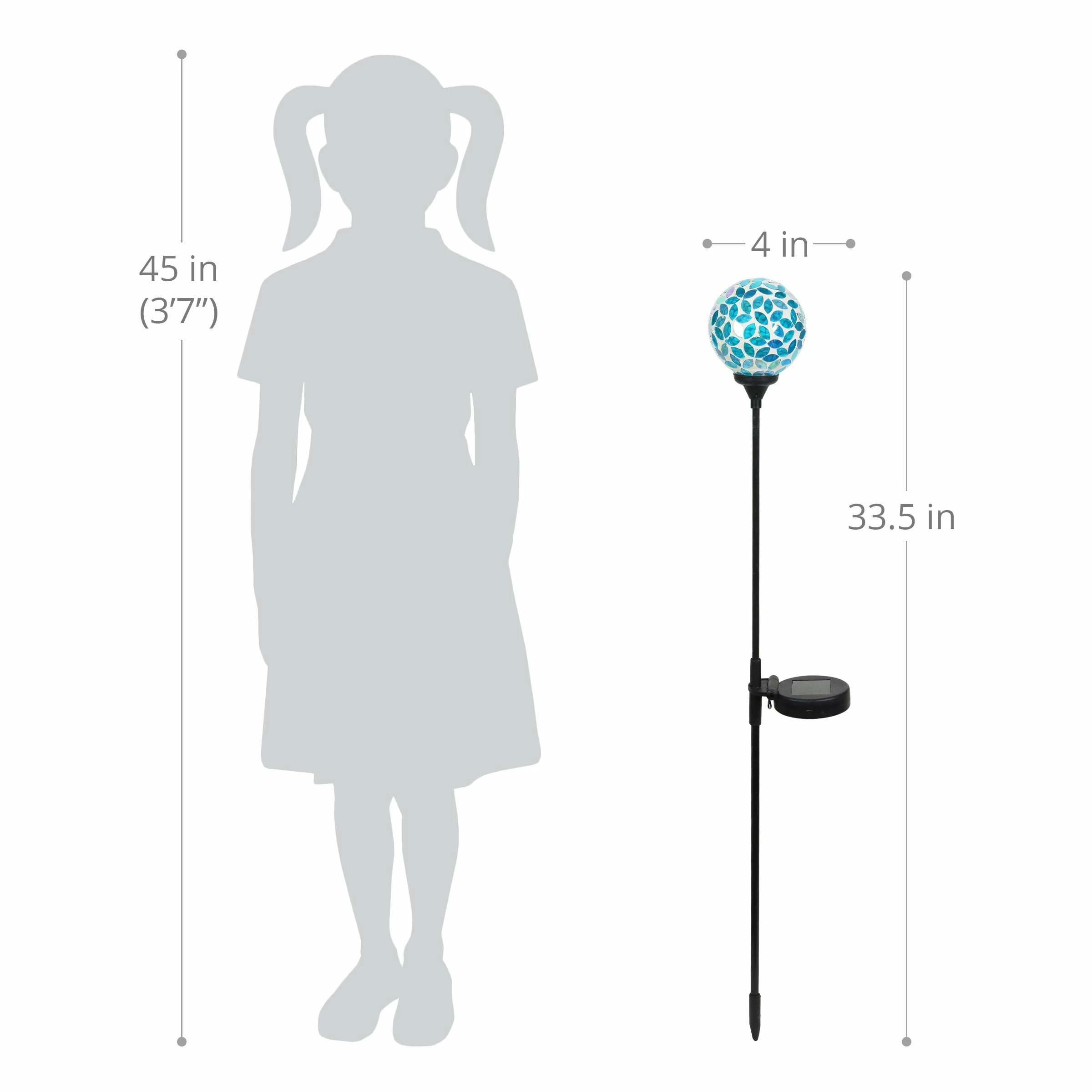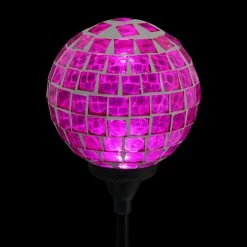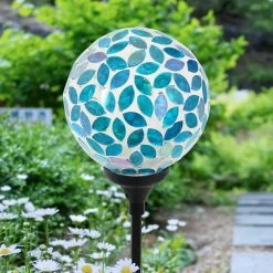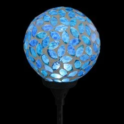 As the sun sets and dusk settles in, your beautiful glass mosaic ball stake glows from within, setting off the intricate marquise shaped design! This Illuminating Solar Glass Stake adds an exquisite decorative touch to your garden day and night. Makes a thoughtful gift and a wonderful addition to any home.