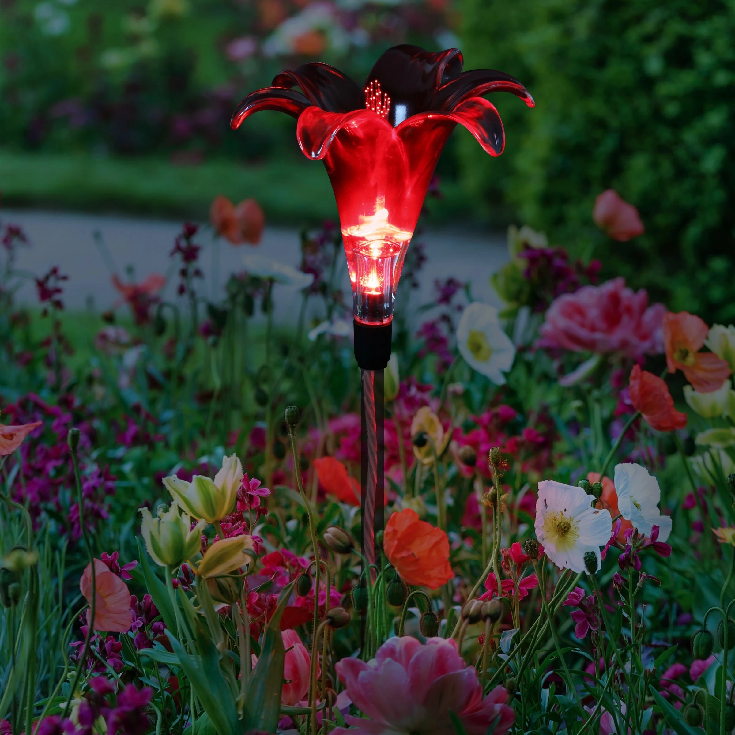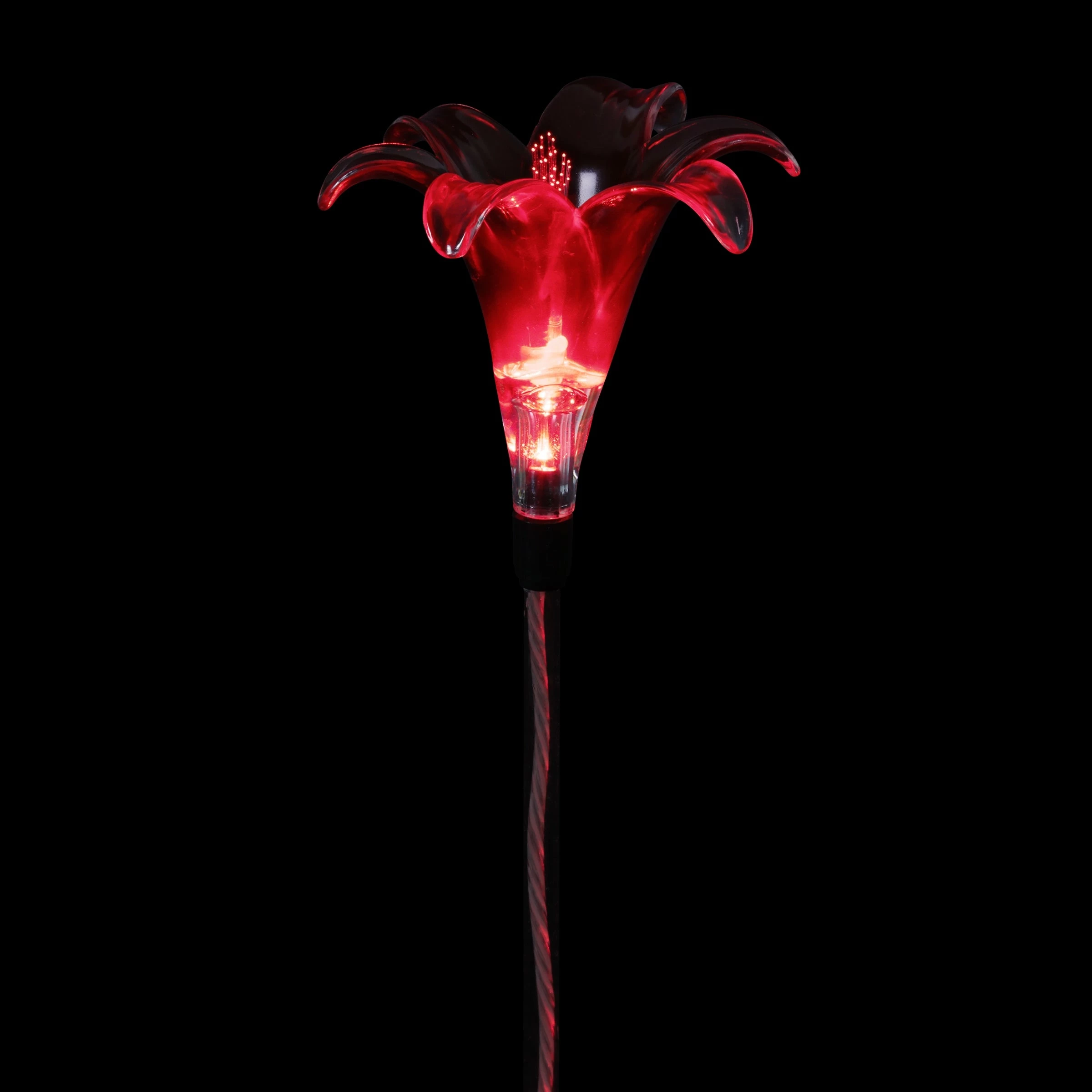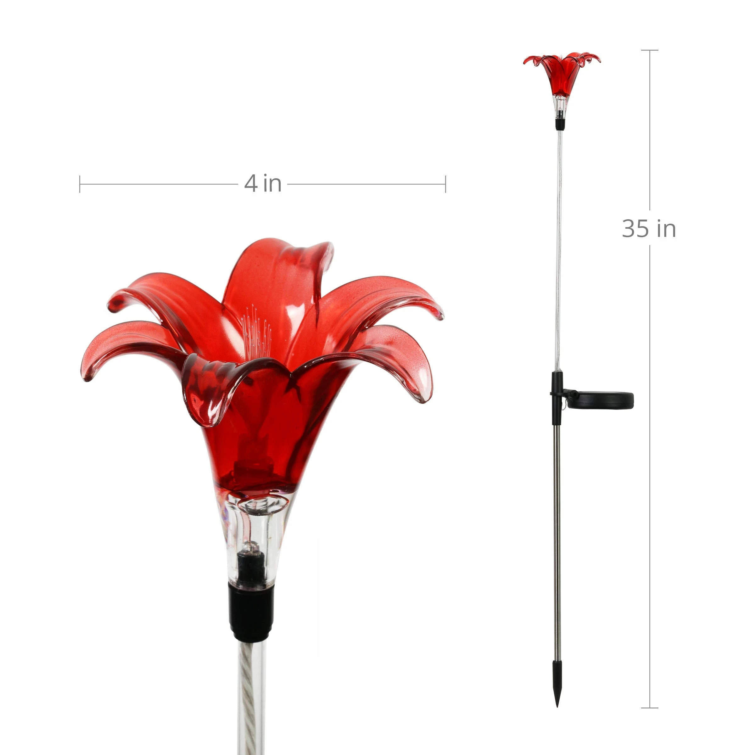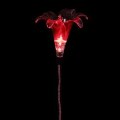 A romantic blooming Red Lily Garden Stake illuminates at dusk gracing your garden with warmth and charm. This solar flower stakes is made of durable plastic to withstand the seasons and add an elegant touch of charm to your garden all year long. Makes a beautiful gift.