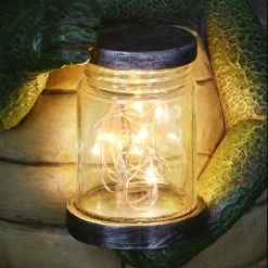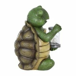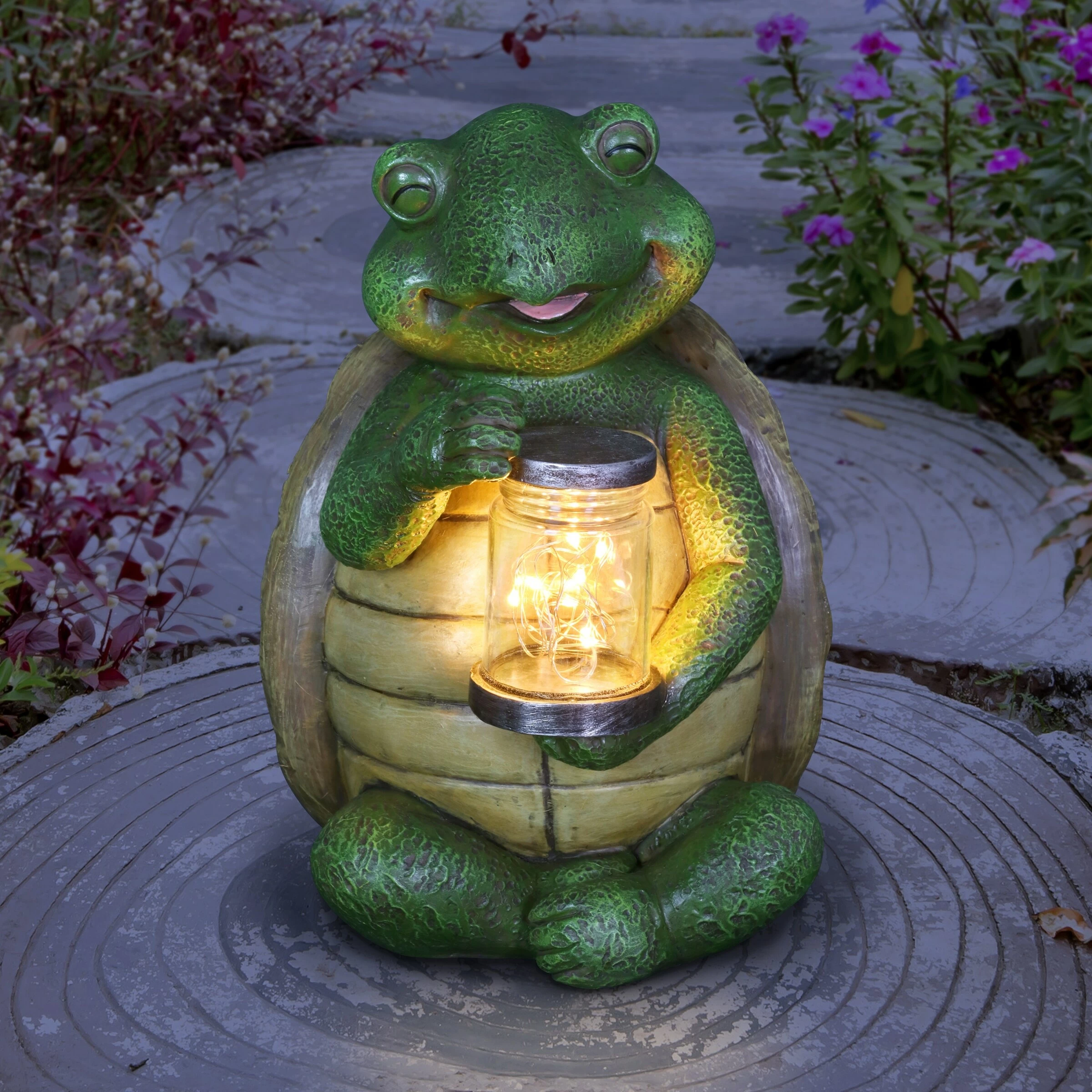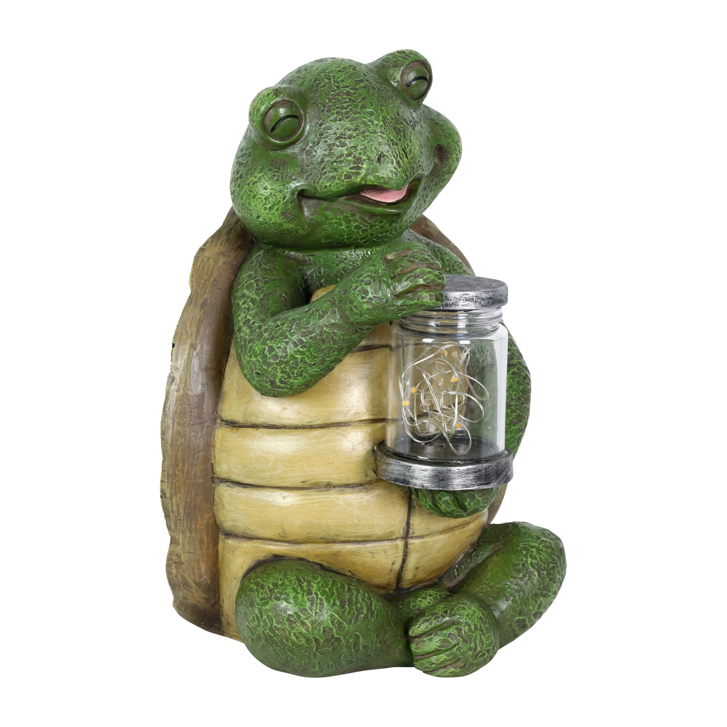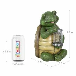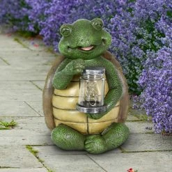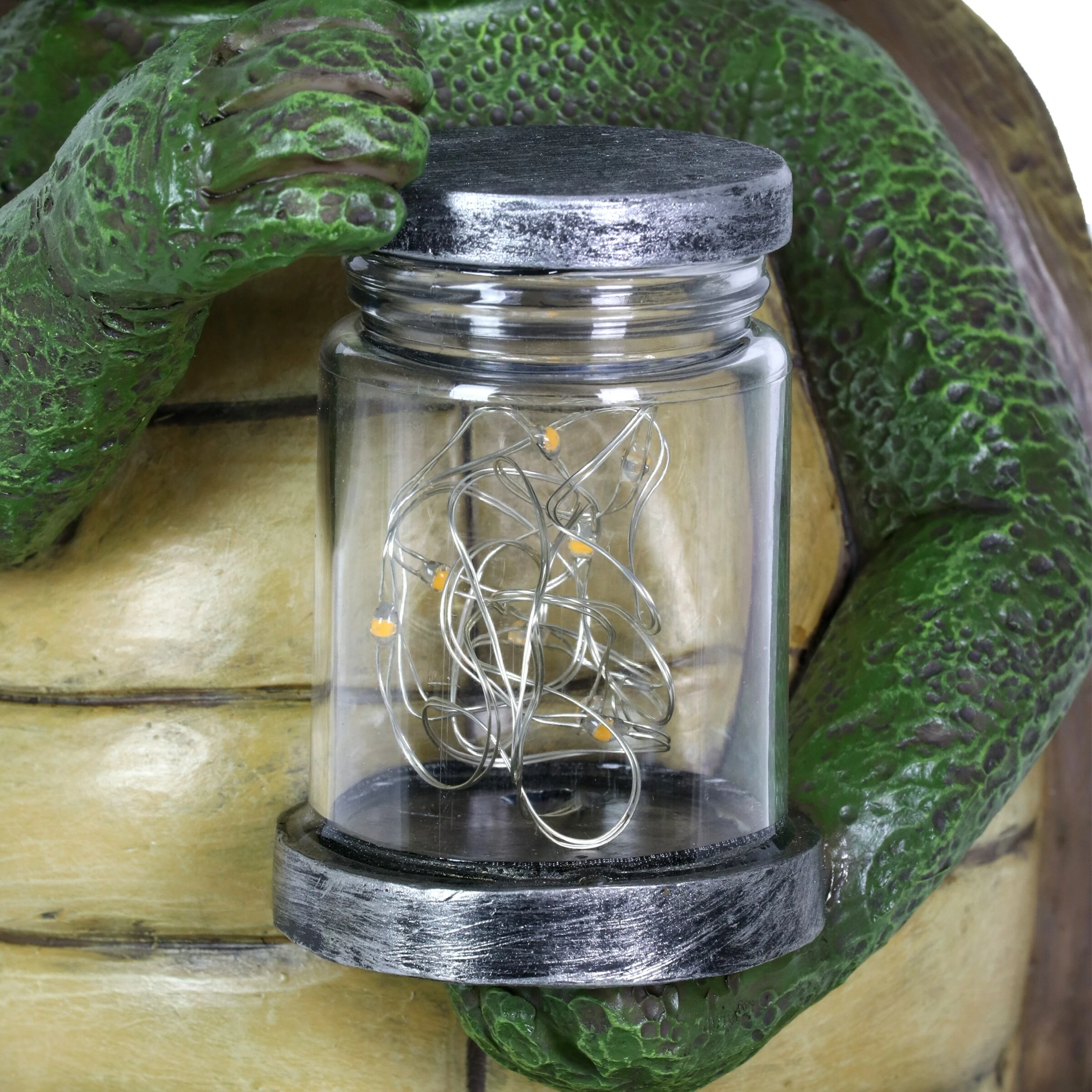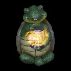 This adorable Solar Turtle Statue is carrying a jar full of sparkling LED fireflies! A string of solar powered LED lights will magically illuminate in the jar at dusk, bringing this charming garden art to life! Known for wisdom and longevity, the turtle makes a wonderful addition to your garden you can enjoy day and night!