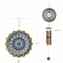 Enjoy the revolving colors and relaxing sounds of this beautiful laser cut metal spinner wind chime. A gentle breeze will begin the music as well as the spinning motion for hours of enjoyment. The beaded accents add an extra touch of elegance. Makes a thoughtful gift and a wonderful addition to any home!