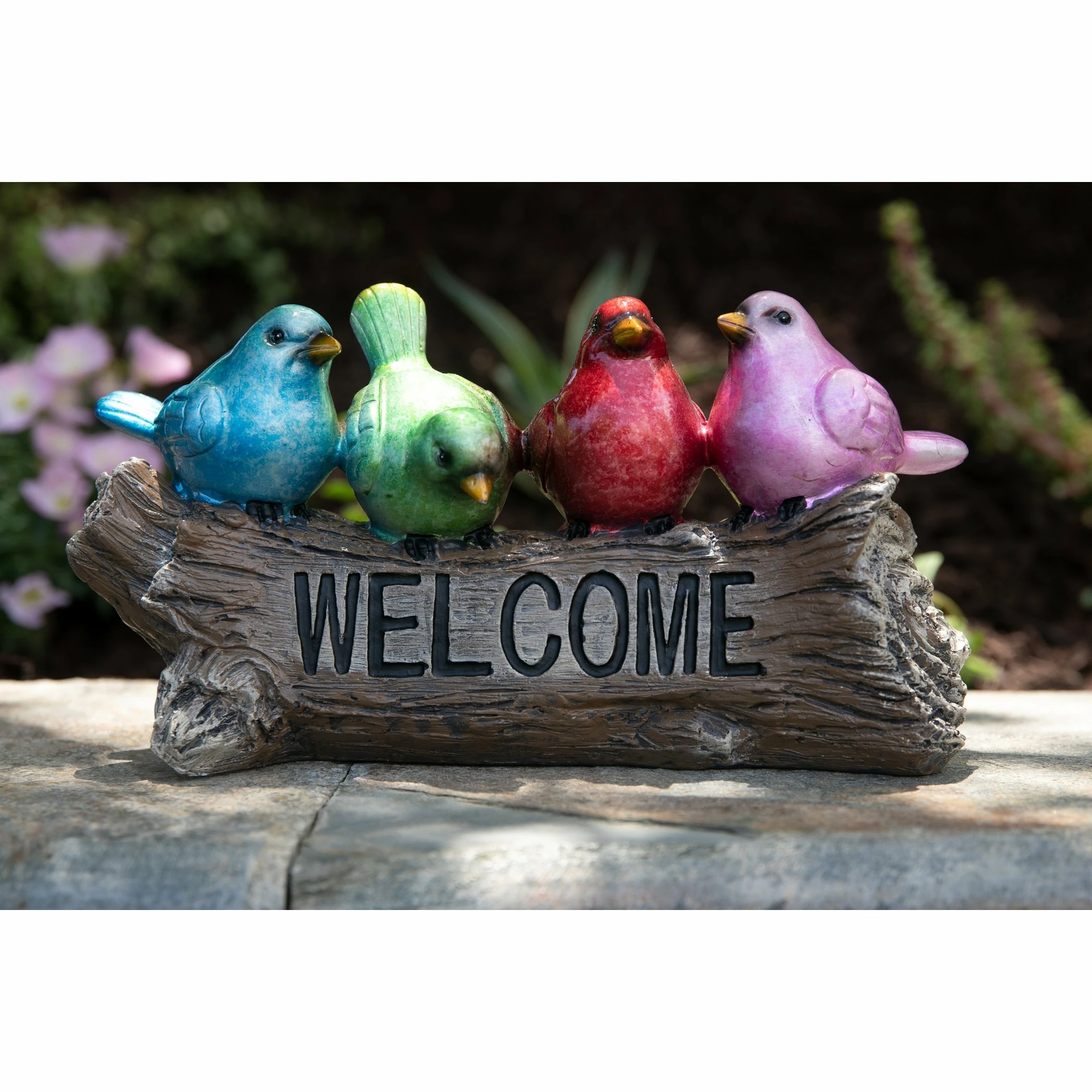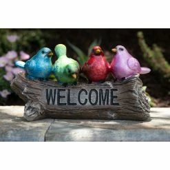 Four charming little birds sit on a welcome log, ready to greet your guests! These have been meticulously hand painted with vibrant tie dye details to brighten up any space with their friendly appeal. Makes an adorable addition to any garden and a wonderful gift for the free spirited bird or nature lover in your life!