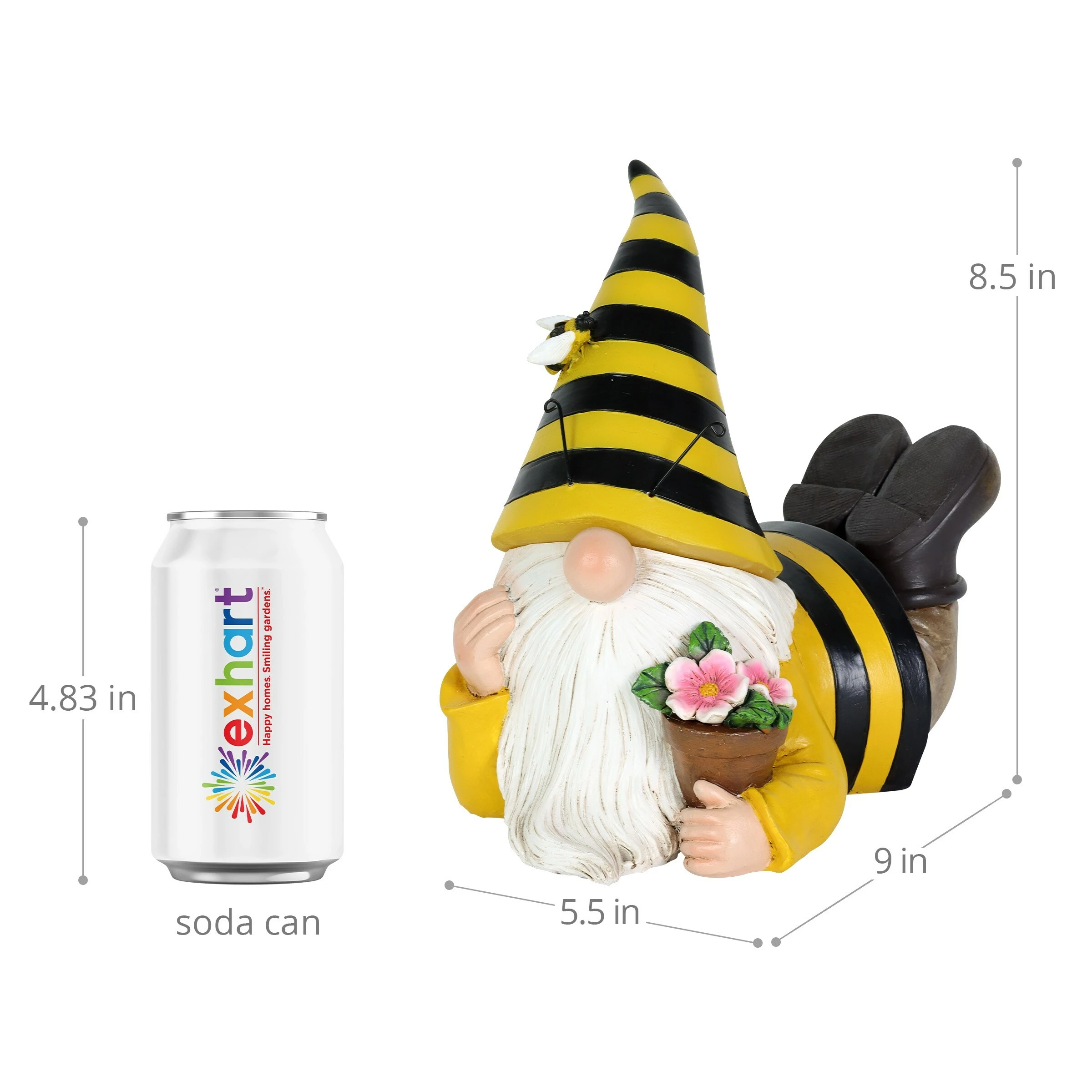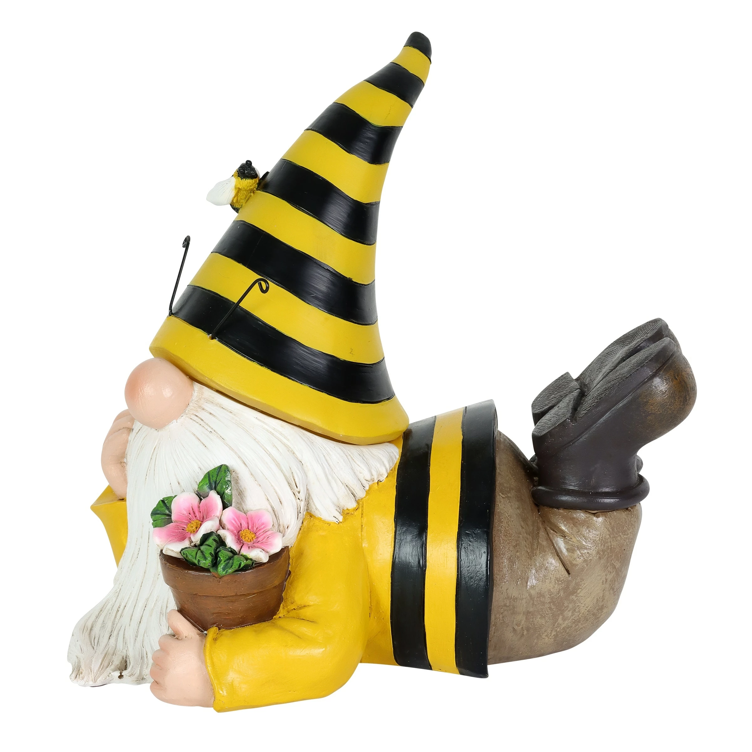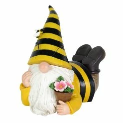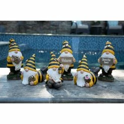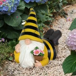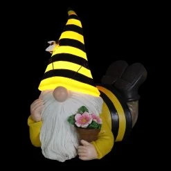 This adorable solar Beekeeper Gnome holds his favorite potted flowers! Beautifully hand painted, this gnome’s bee hat automatically illuminates at dusk adding a touch of light and whimsy to any yard. Endearing and a little magical, gnomes make the perfect addition to any garden! Enjoy beautifully crafted and hand painted garden art by Exhart.