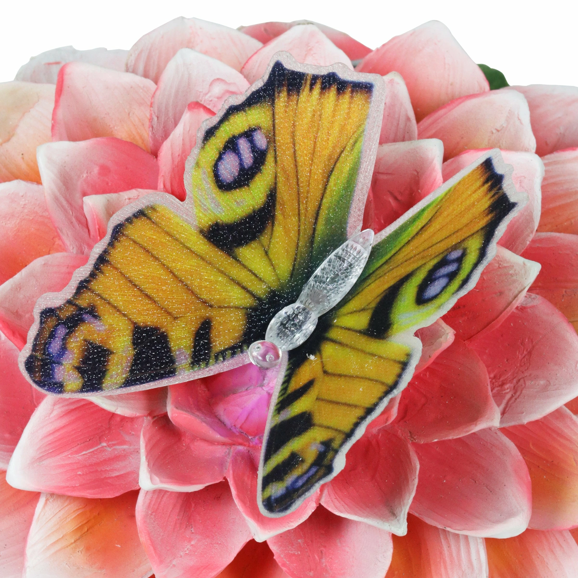 - Solar powered color changing butterfly automatically illuminates at dusk