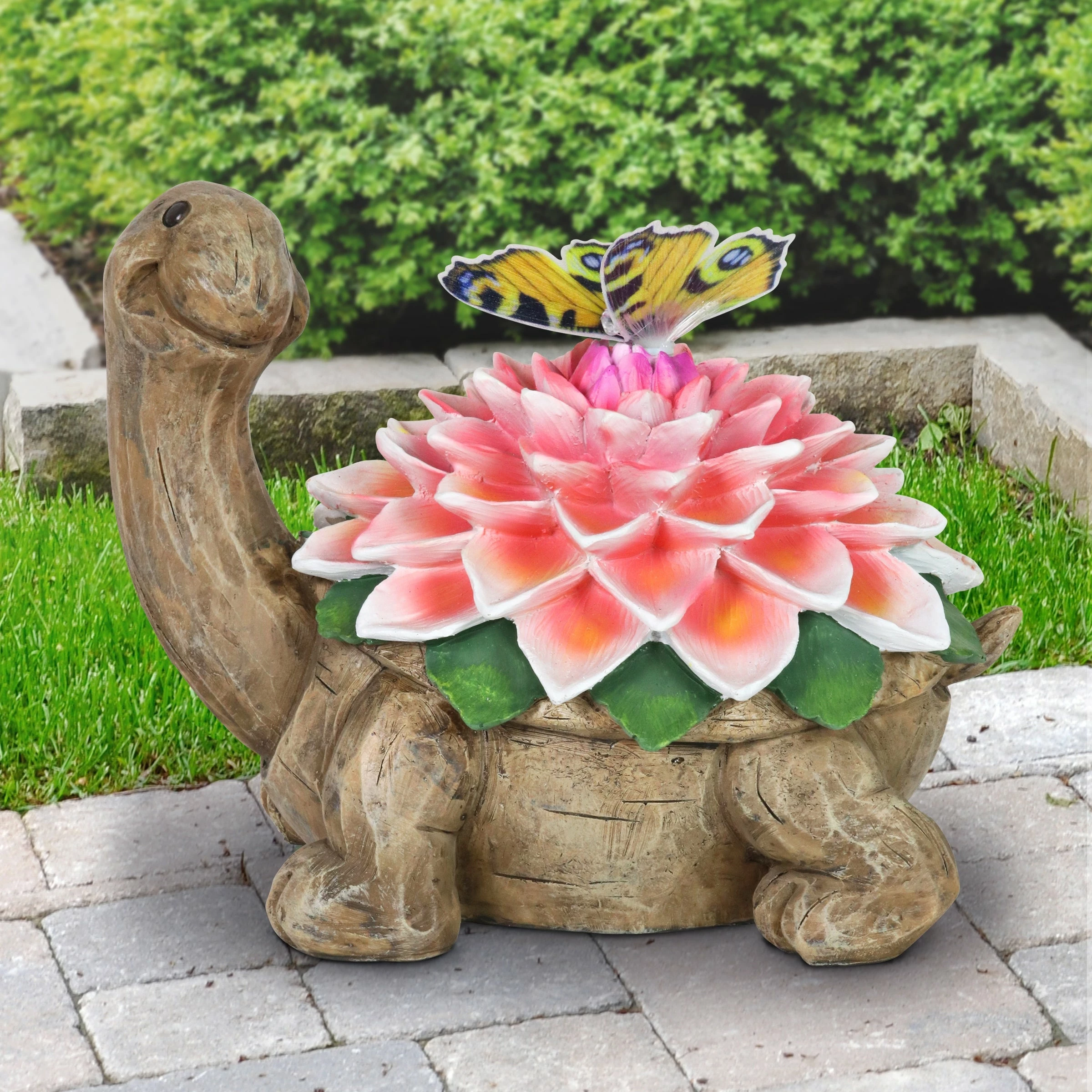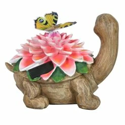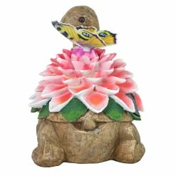 This charming statue will warm your heart! As the sun sets and dusk settles in, the adorable fiber optic butterfly will glow in changing colors! This adorable hand painted garden statue makes a great gift for the animal lover or garden enthusiast alike.