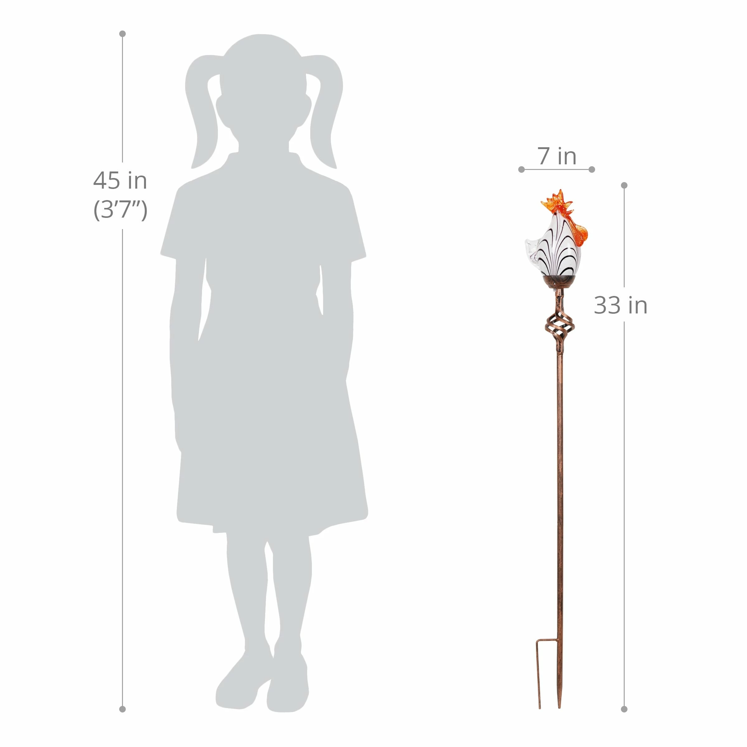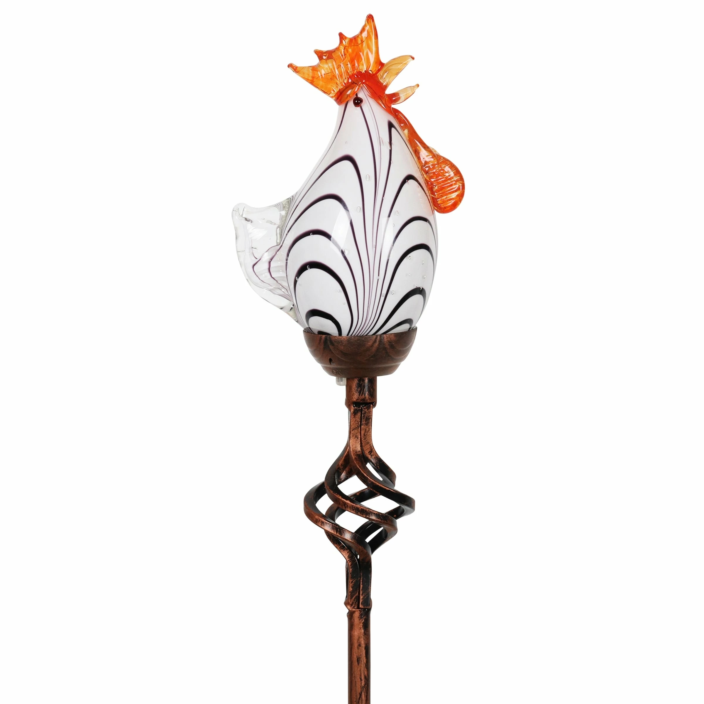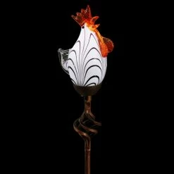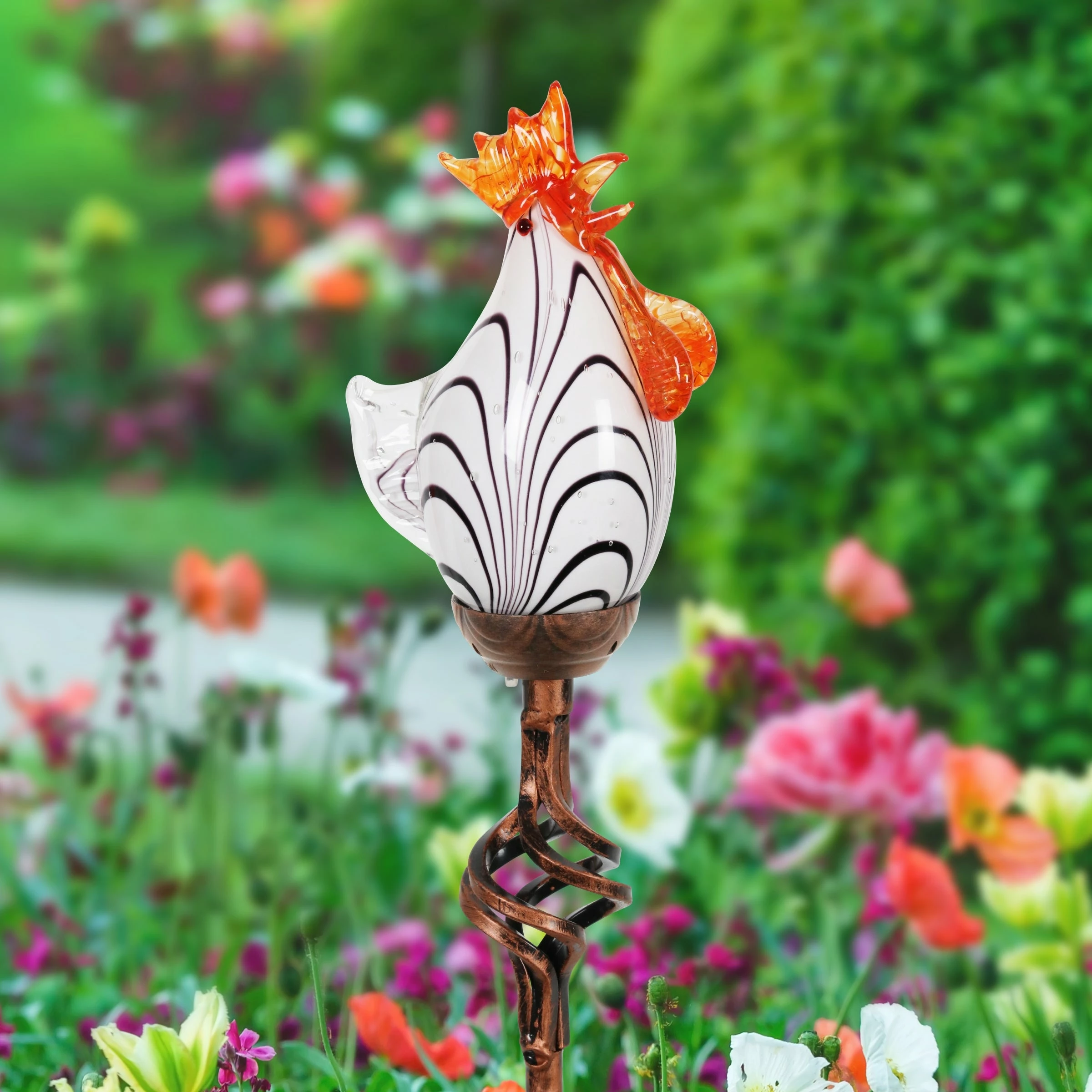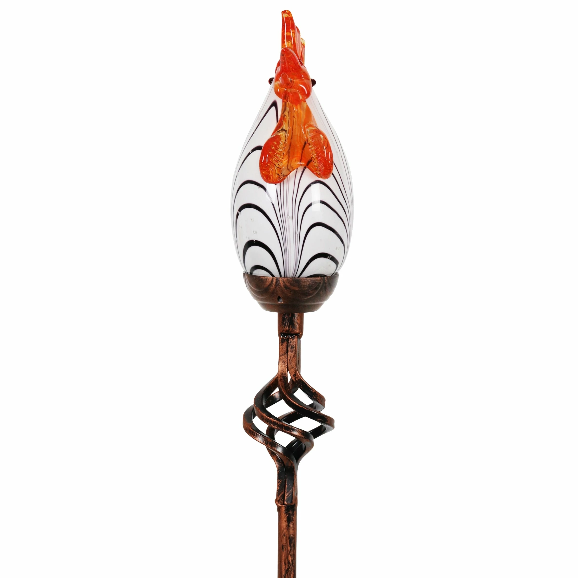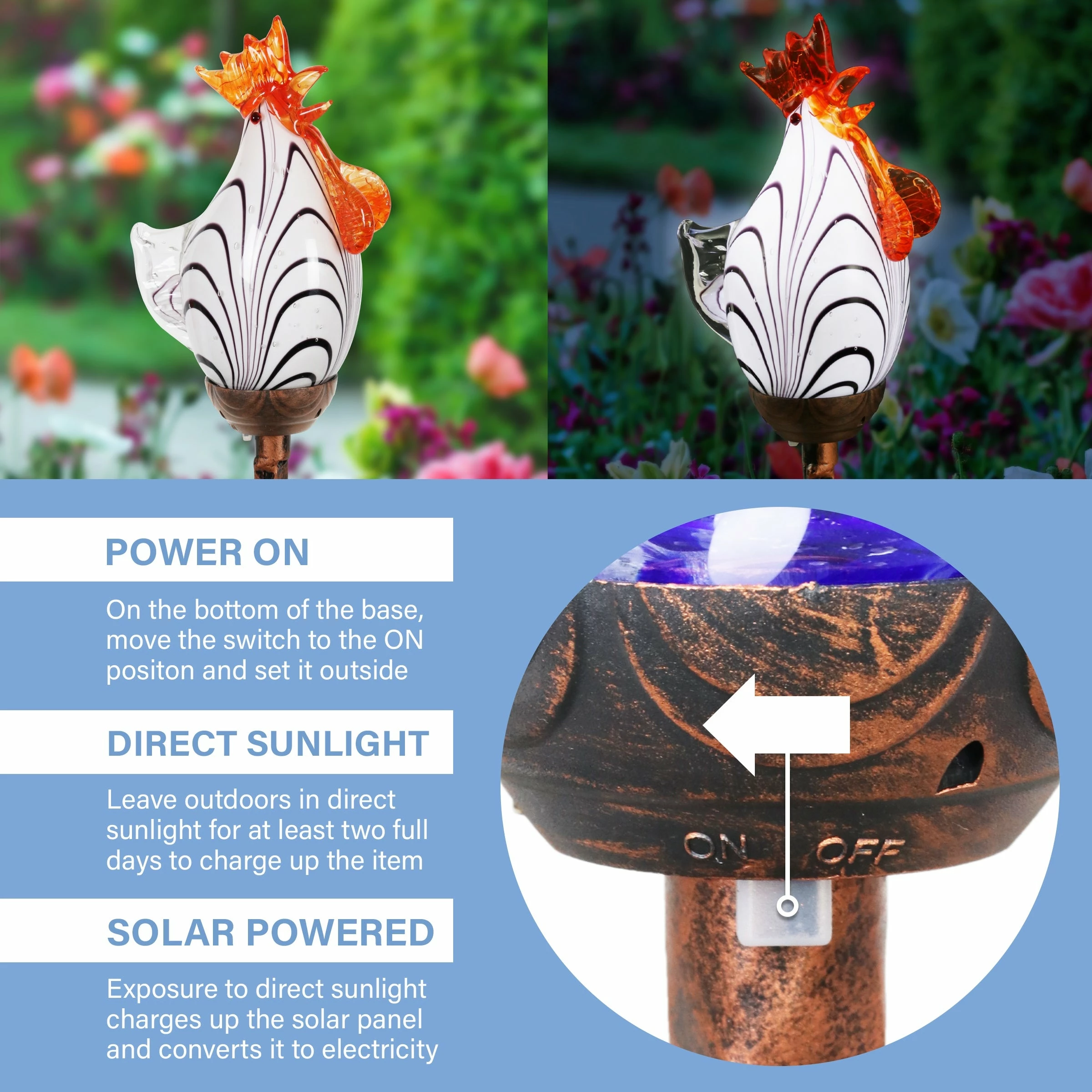 - Whimsical solar rooster stake adds a touch of fun to your garden