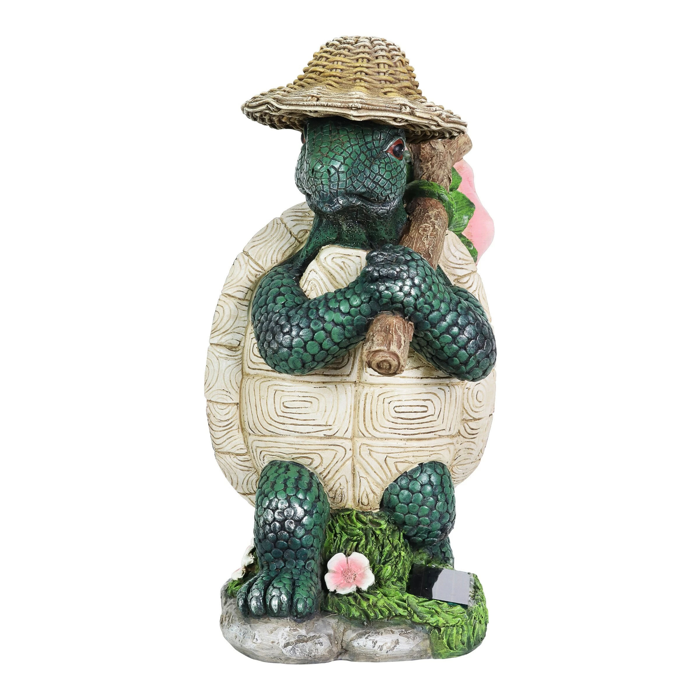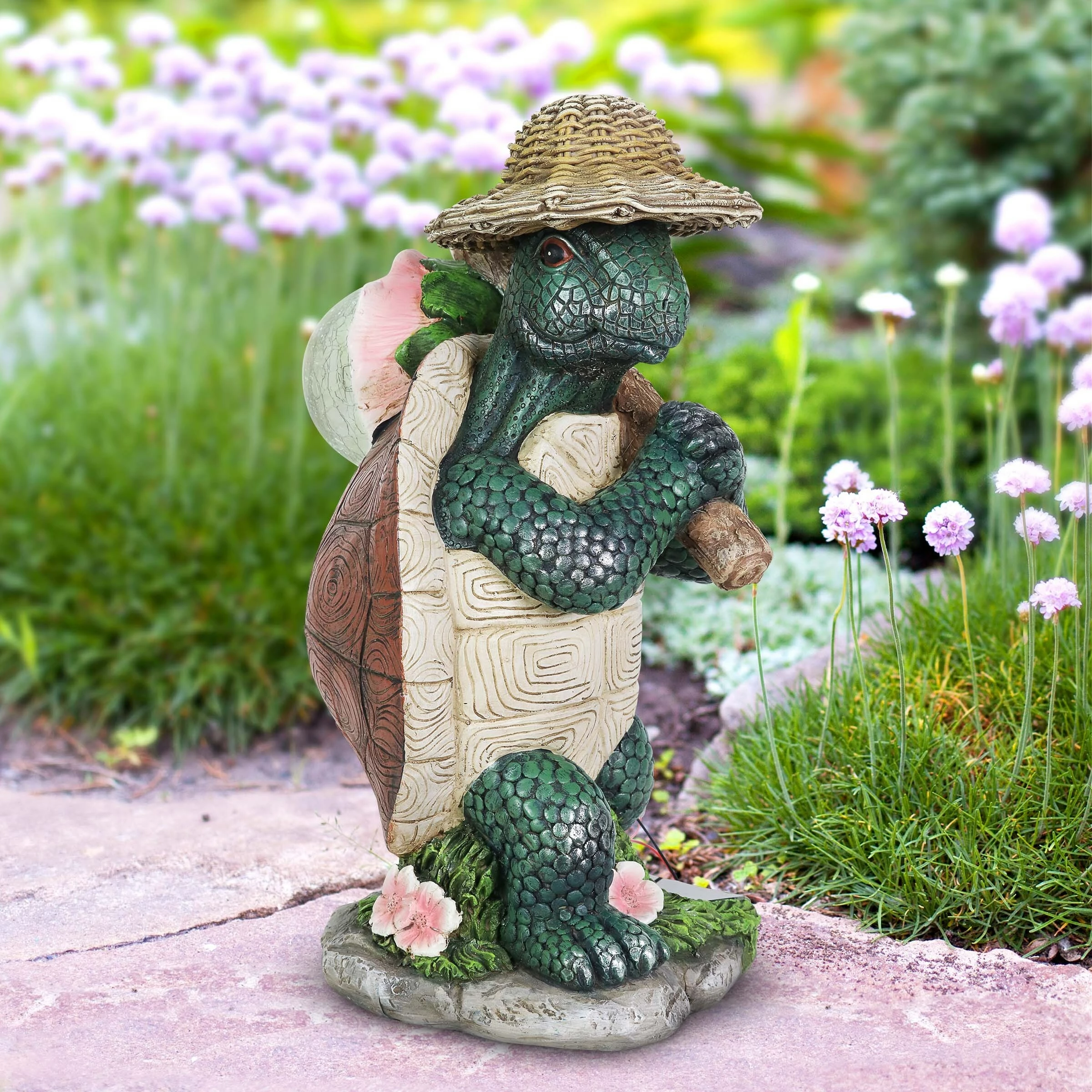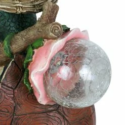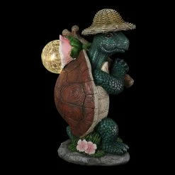 Known for wisdom and longevity, this illuminating Hiking Garden Turtle Statue is off on an adventure in your garden. This beautifully hand painted garden statue carries a solar powered crackle glass ball that will automatically illuminate with LED light at dusk. Makes a wonderful gift for the nature lover or animal enthusiast in your life.