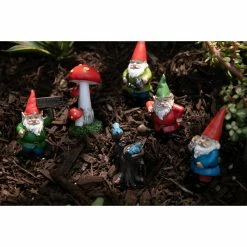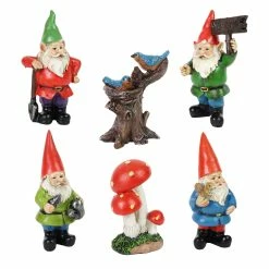 Fairy gardening is a wonderful at home project- fun for one or for a whole family! Create your own fairy garden design with this adorable miniature gardening gnome set. This set includes all six different pieces so you can design your own scene, over and over again! These pieces are crafted from durable resin and have been hand painted as well as UV coated to protect against fading. Adds a touch of whimsy, fun, and magic to your yard!