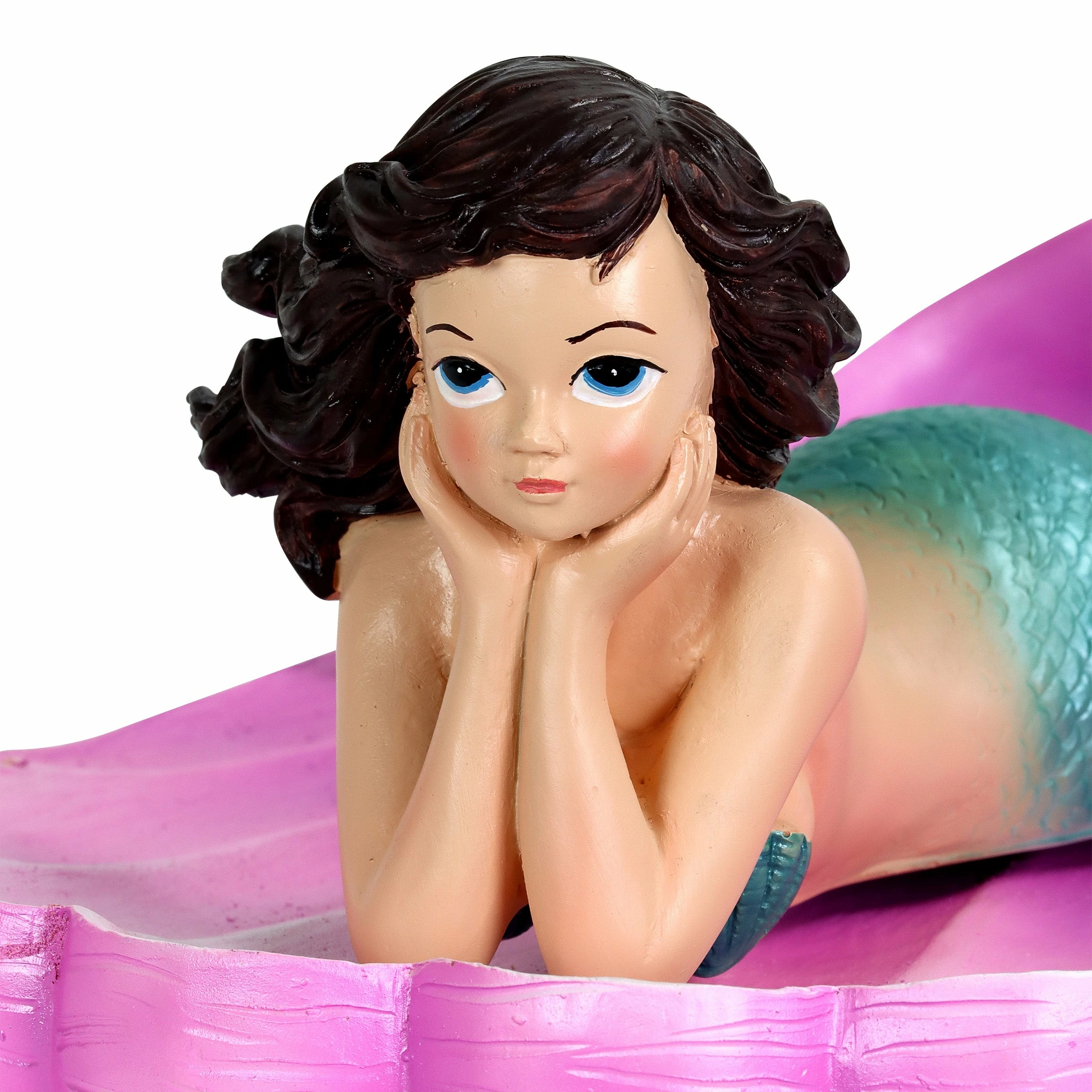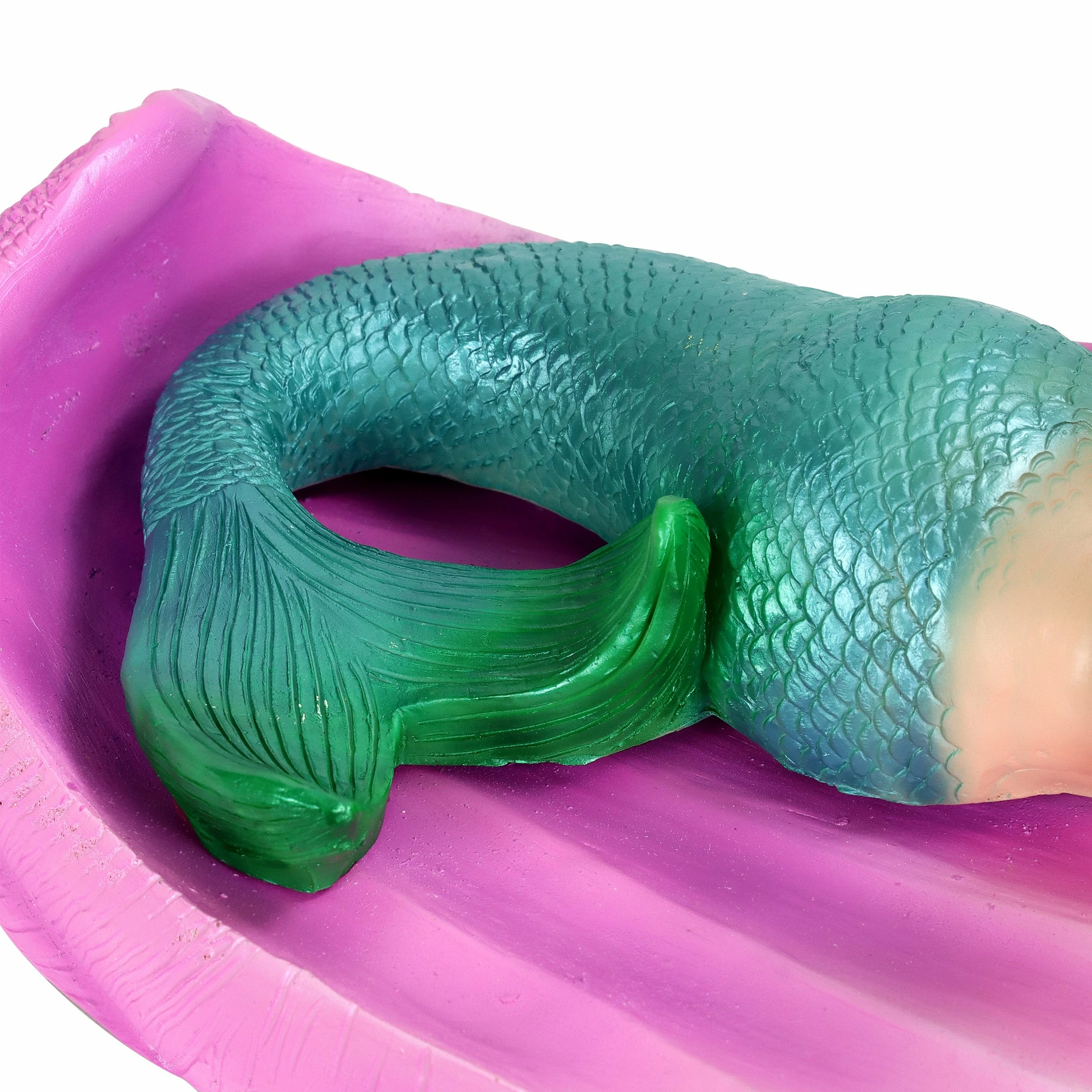 It’s a floater you’ll enjoy spotting in the pool! This beautiful lounging mermaid has got the life, just relaxing on her sea shell inspired raft, not a care in the world. Hand painted in bright tropical colors, this adorable garden art will add vibrant fun to your backyard. Makes a great gift idea and a reminder to take a load off once in a while!