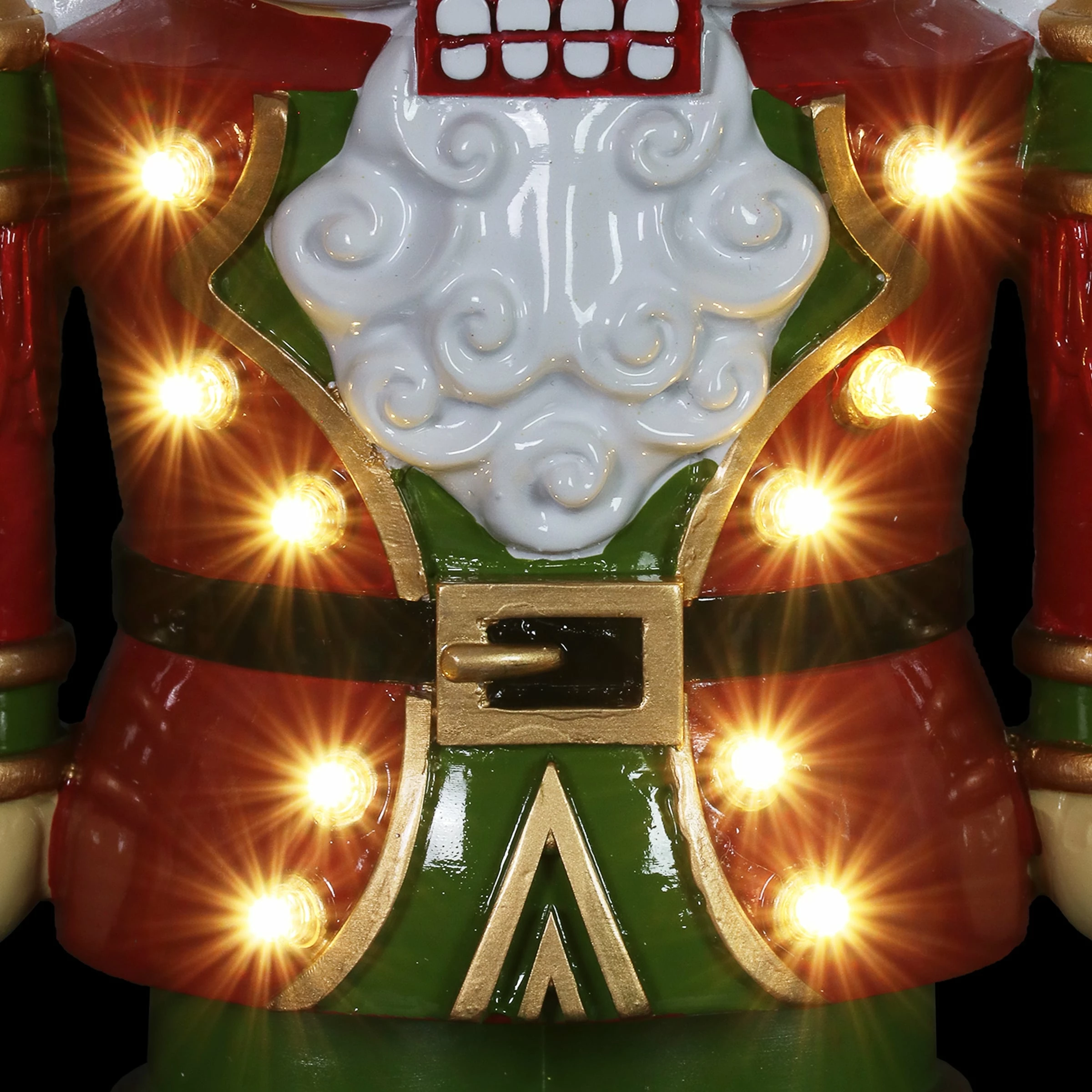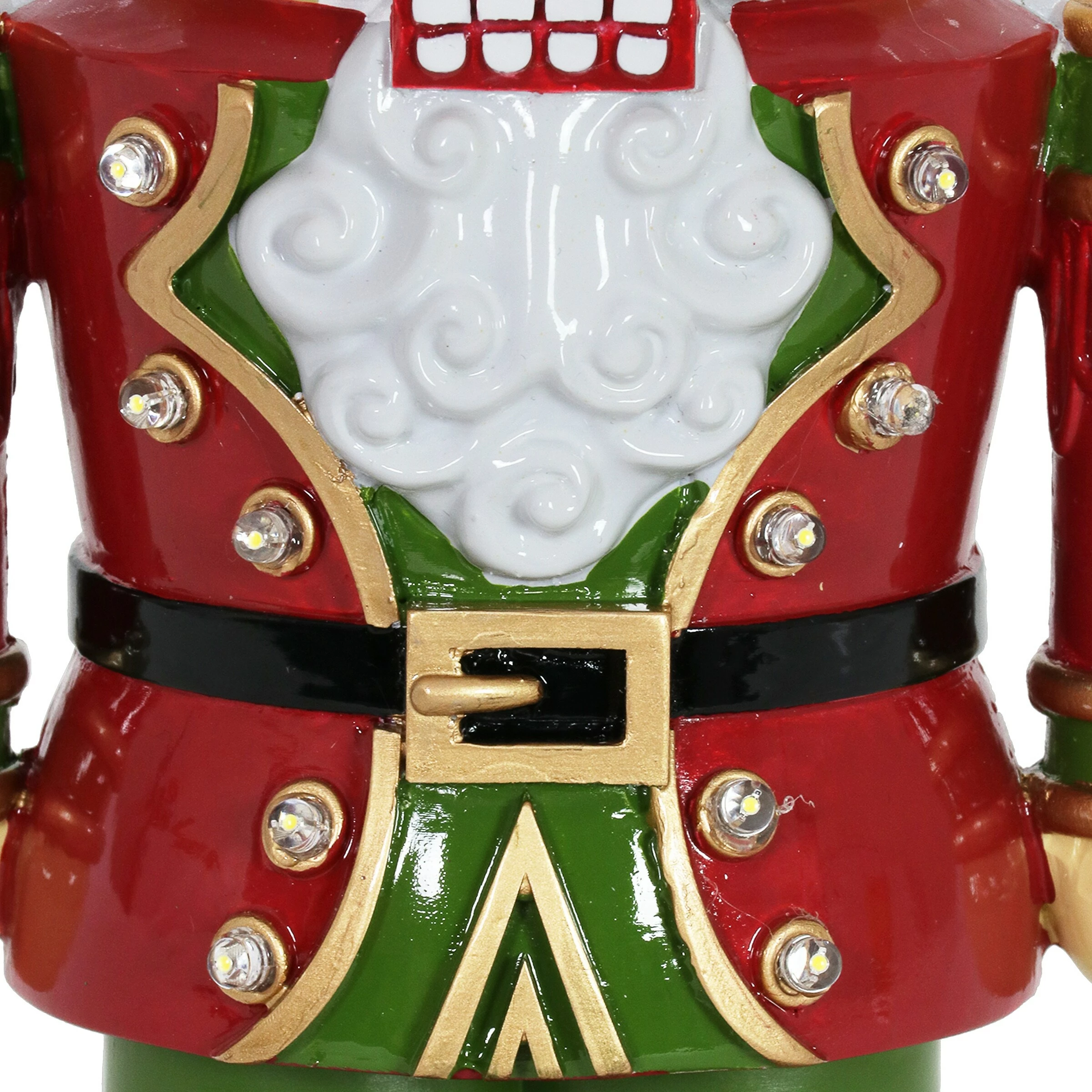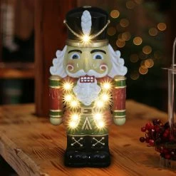 This adorable hand painted LED Holiday Nutcracker Soldier illuminates traditional folklore! The automatic timer will turn the LED lights on at the same hour each day, lighting up his classic red and green uniform. Symbolizing luck and protection, this festive nutcracker makes a wonderful addition to your holiday decor!