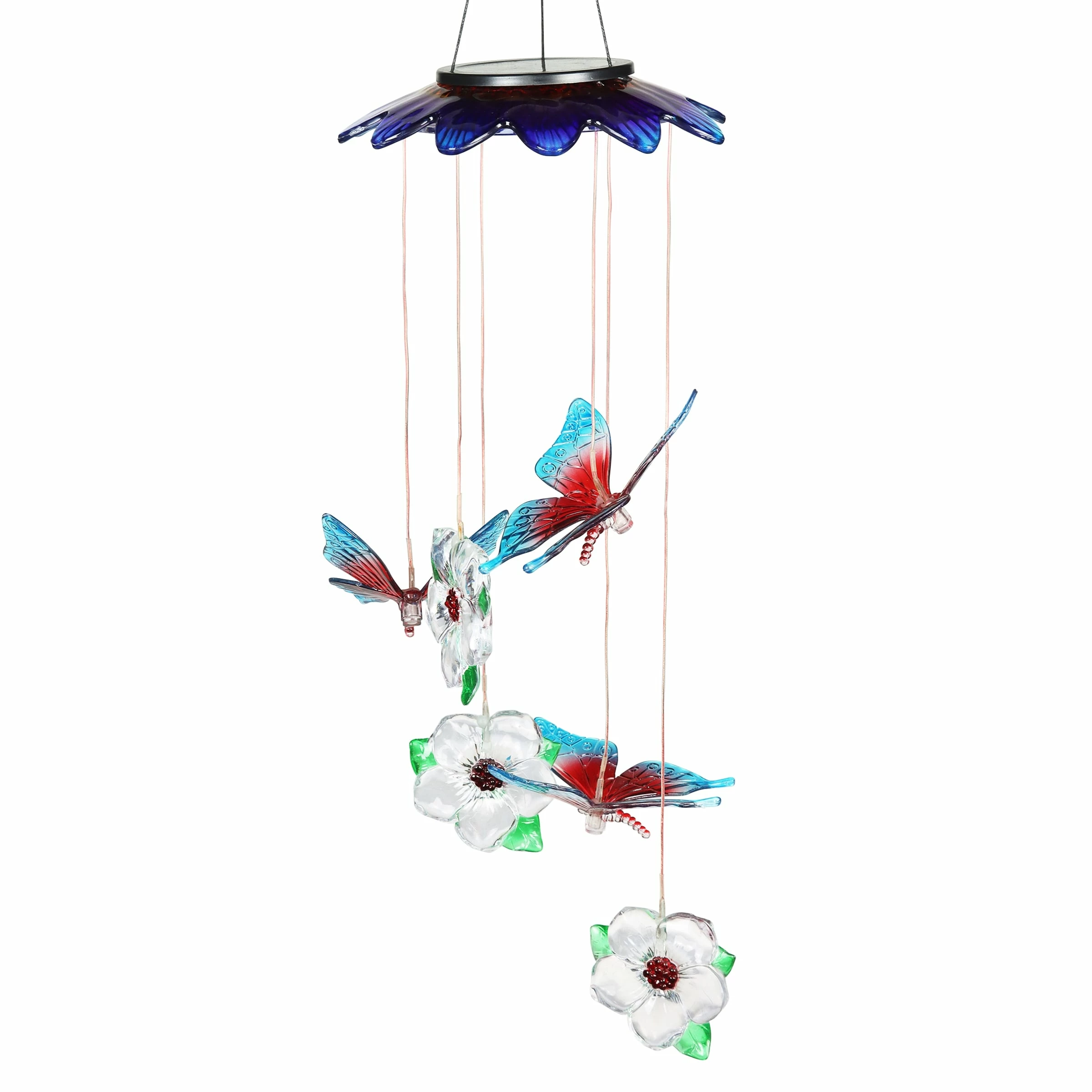 - Each butterfly and flower illuminates and changes colors with solar powered LEDs