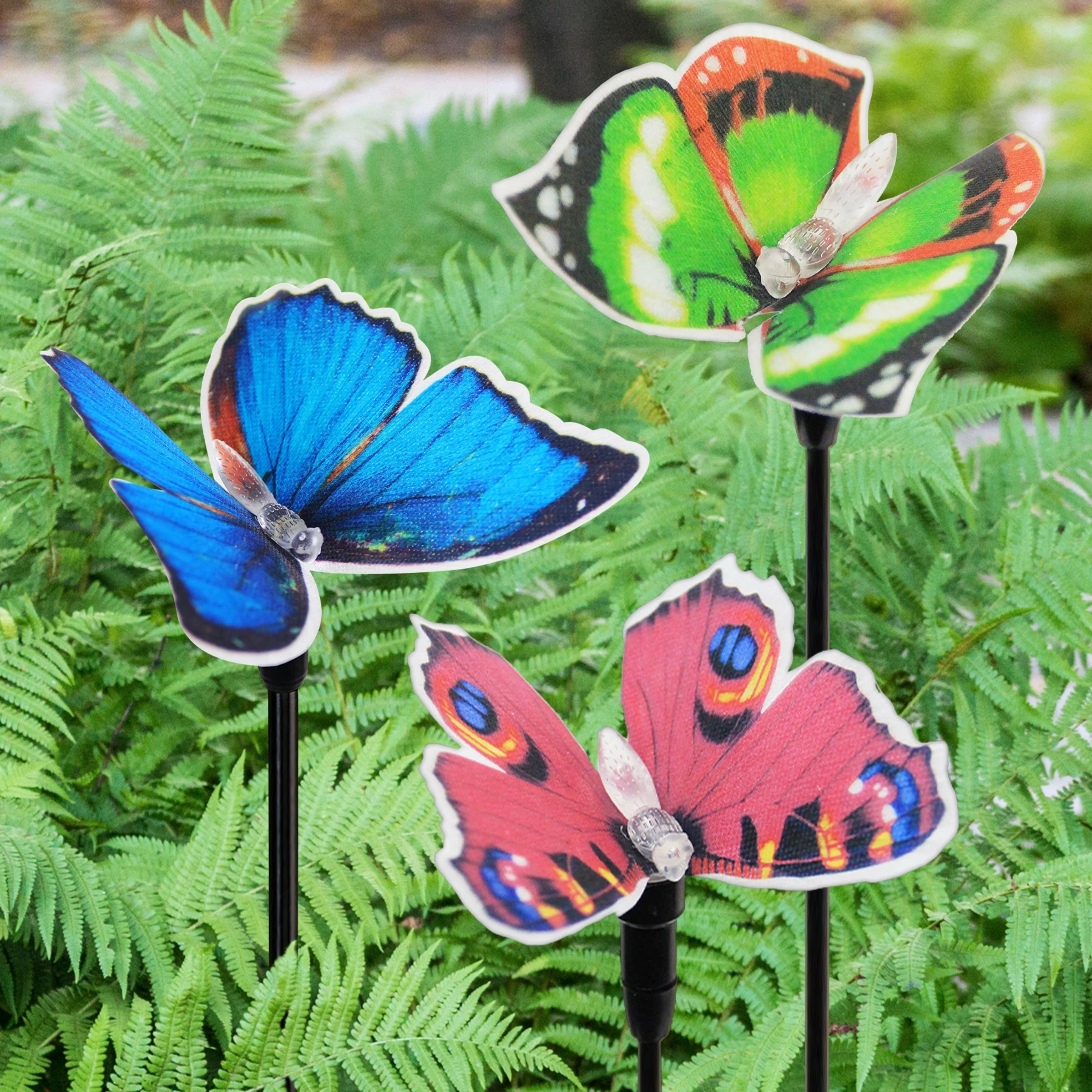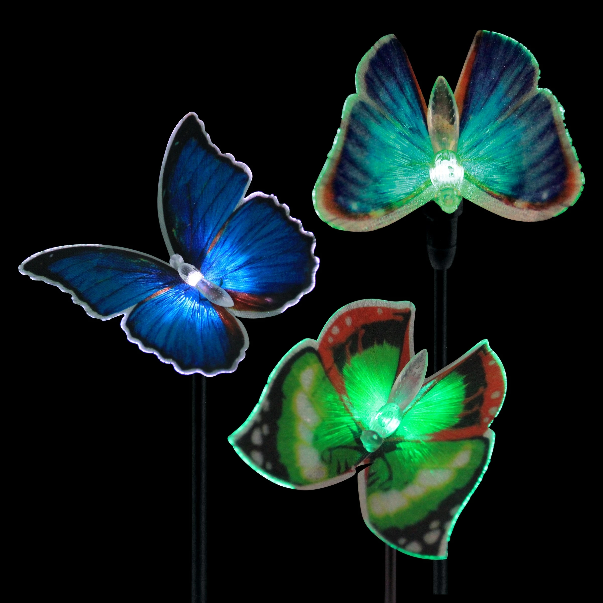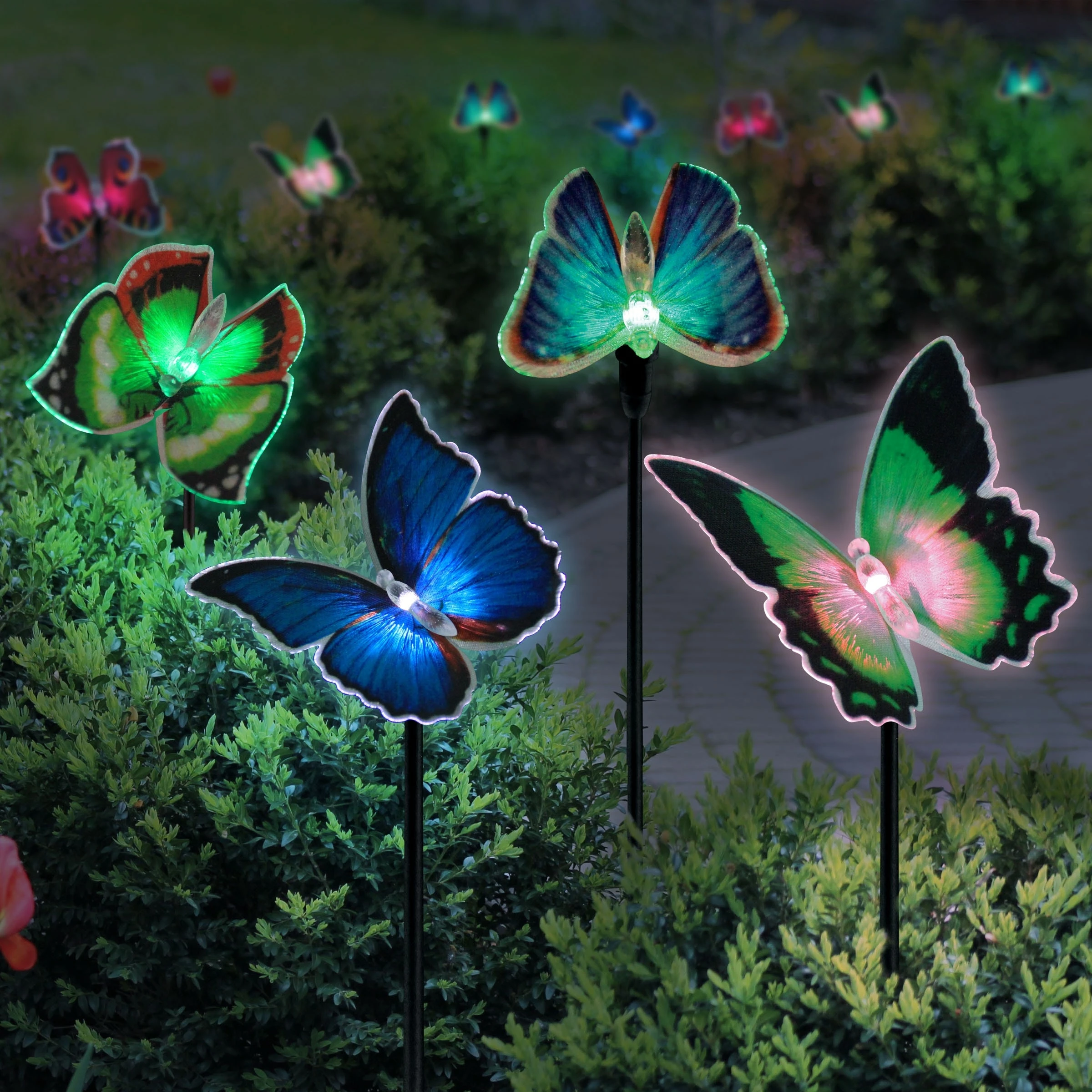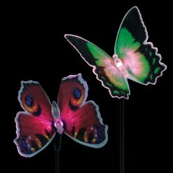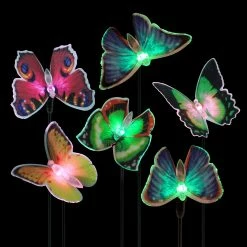 Illuminating Fiber Optic Butterfly Stake Set adds a magical touch to your garden! Absolutely beautiful, watch as both the bodies and the wings glow at dusk with Solar powered LED light! This set includes 6 stakes, one of each color pictured so you can keep all for yourself or give some away as gifts!