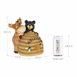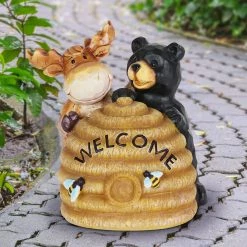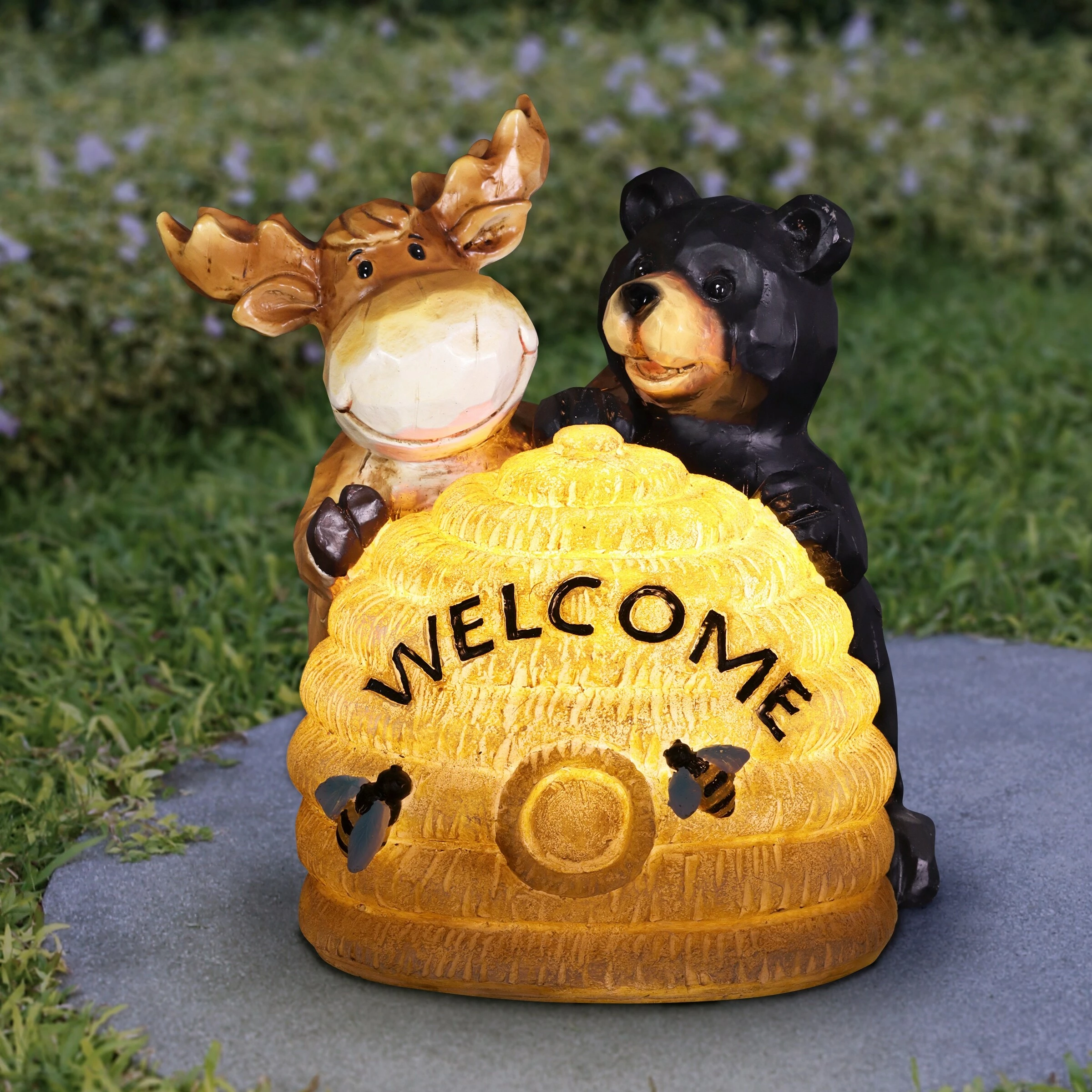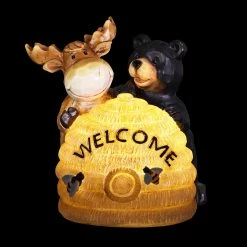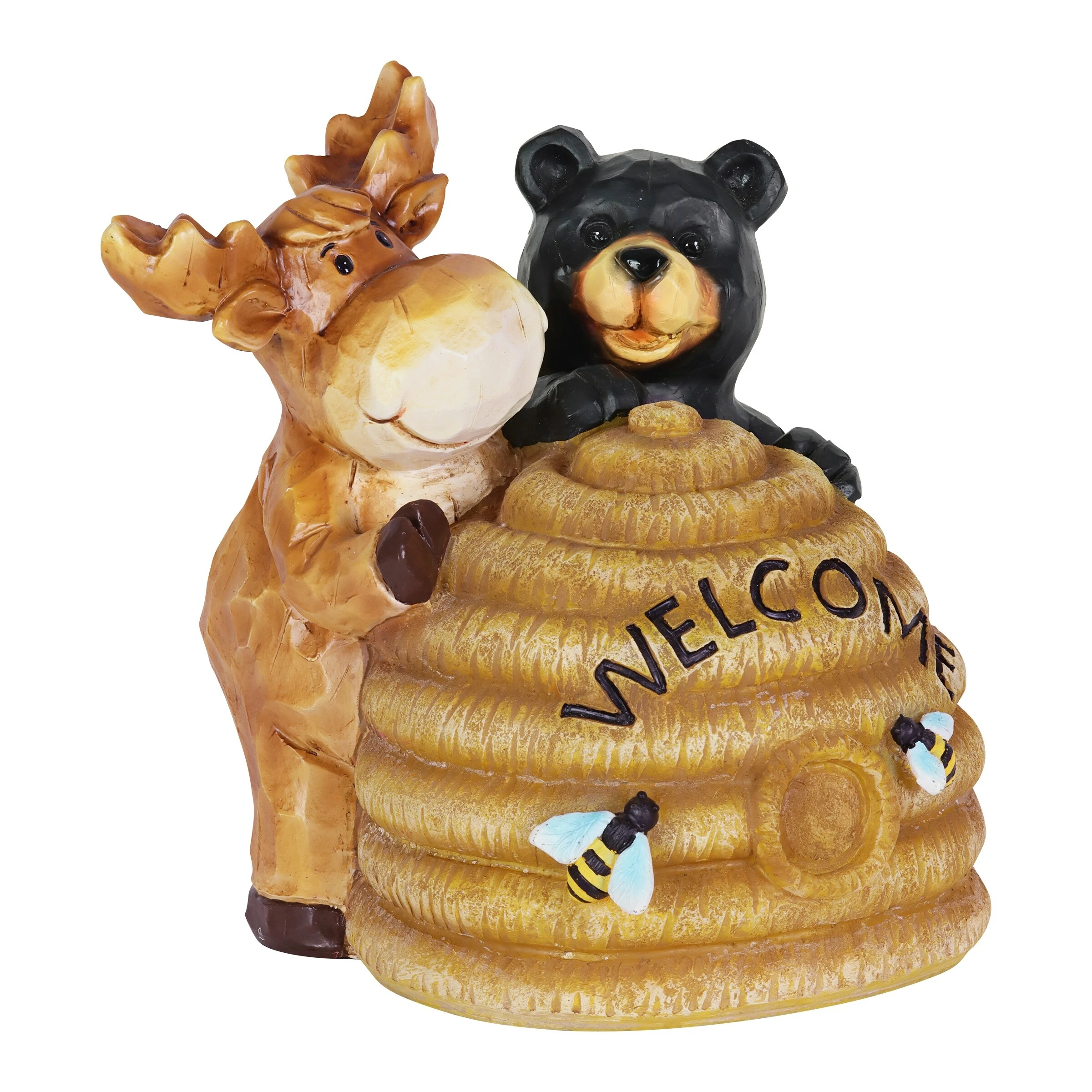 A solar Bee Hive Garden Statue adds a touch of magic to any home. The beautifully bee hive will automatically illuminate from within at dusk with solar powered LED light. The adorable bear and moose are hand painted with details that resemble carved wood. This a charming and glowing addition to any garden!