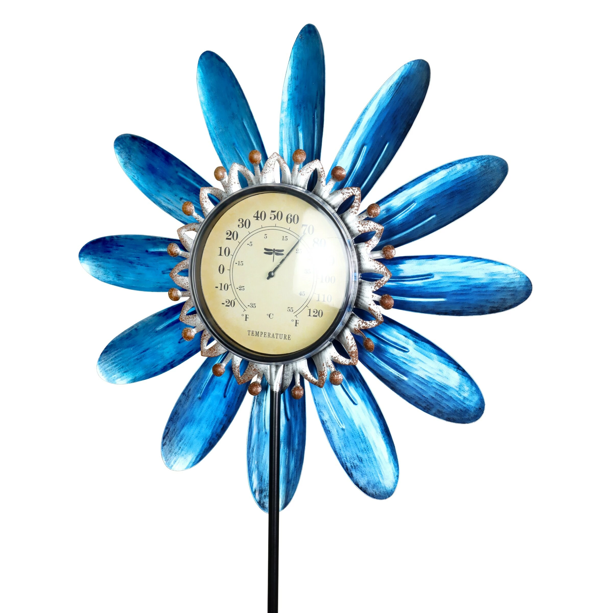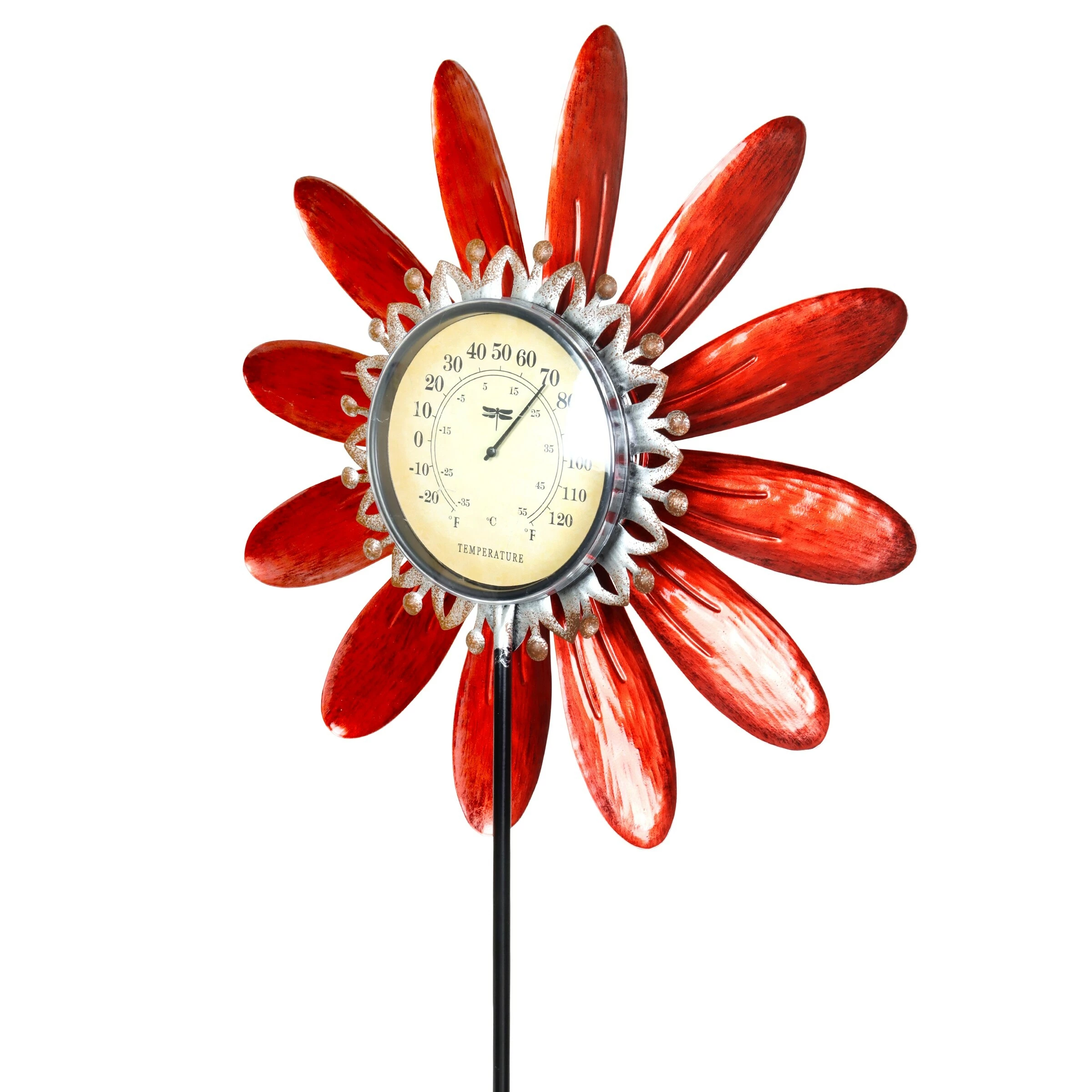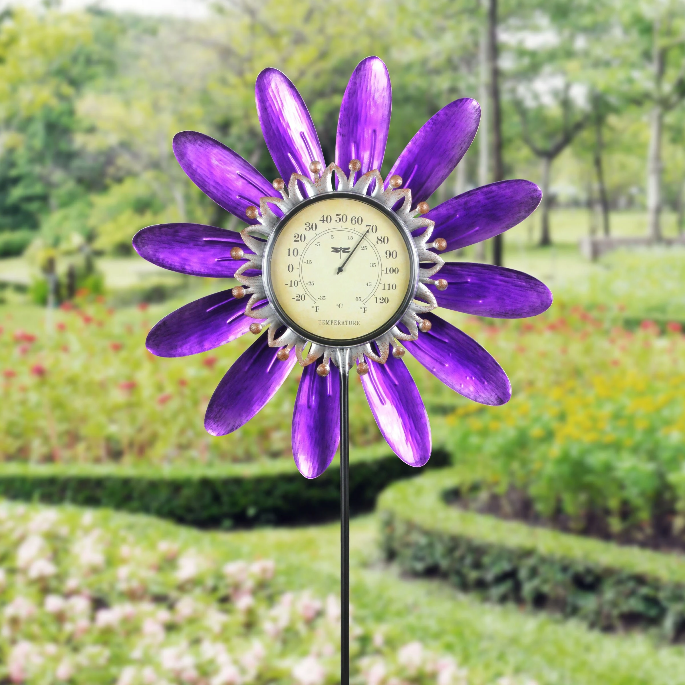 Beauty meets function with this stunning spinning Metal Flower Thermometer Garden Stake! Exquisitely hand painted, this flower will add a burst of color and motion to your garden. The functional thermometer stands at the center with an easy to read face in both Celsius and Fahrenheit. These stakes make a fun, colorful and practical addition to your home!