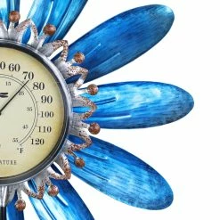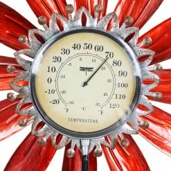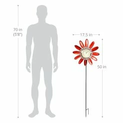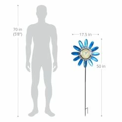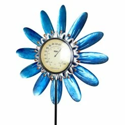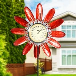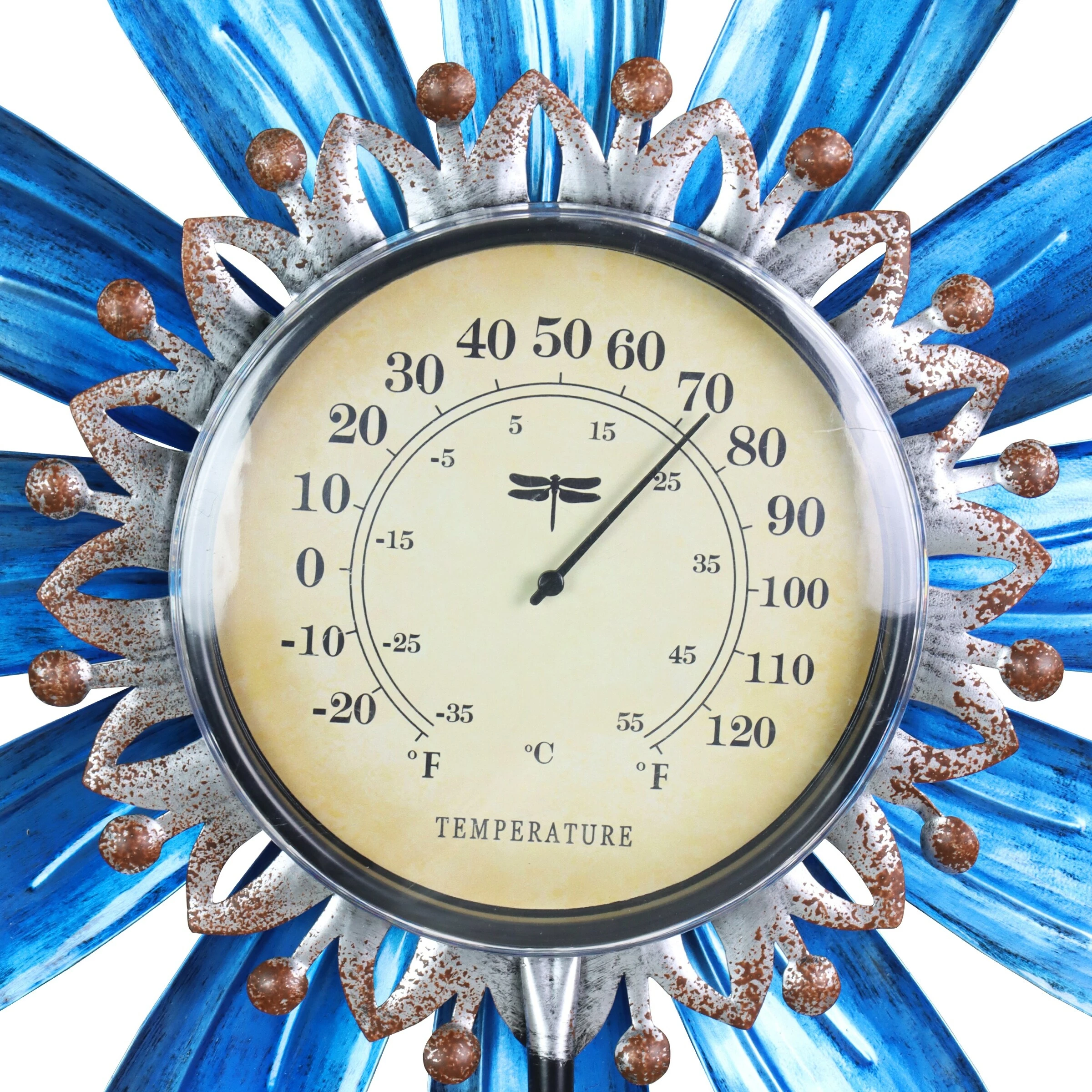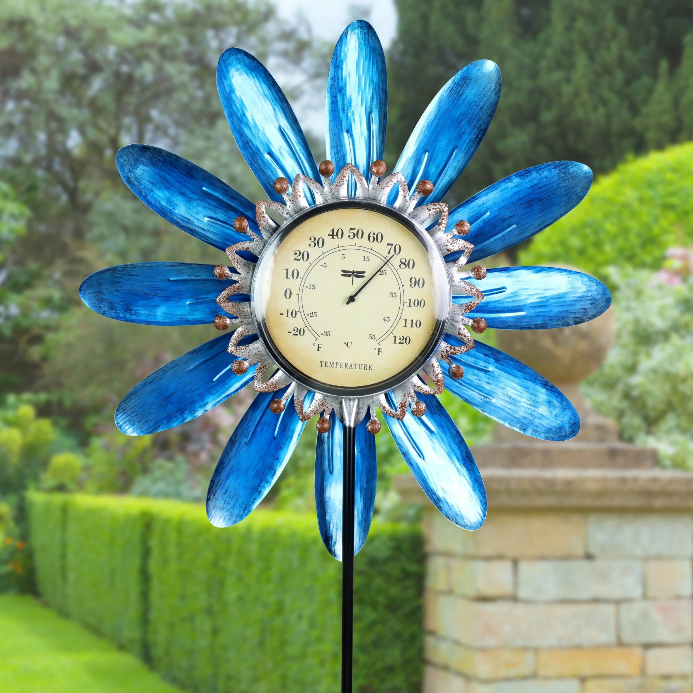 Beauty meets function with this stunning spinning Metal Flower Thermometer Garden Stake! Exquisitely hand painted, this flower will add a burst of color and motion to your garden. The functional thermometer stands at the center with an easy to read face in both Celsius and Fahrenheit. These stakes make a fun, colorful and practical addition to your home!