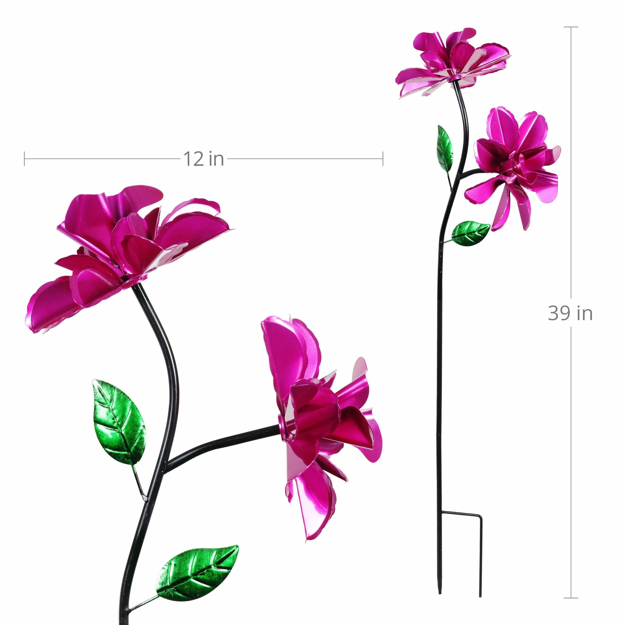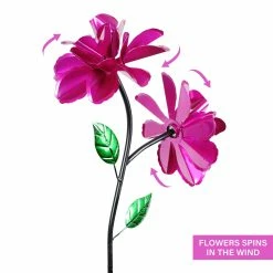 It’s double the fun when these two beautiful pink kinetic roses add color and motion to your garden! Watch as a gentle breeze begins the movement of the metallic hand-painted garden art. This stake makes a wonderful addition to your home and a great gift for the garden enthusiast.