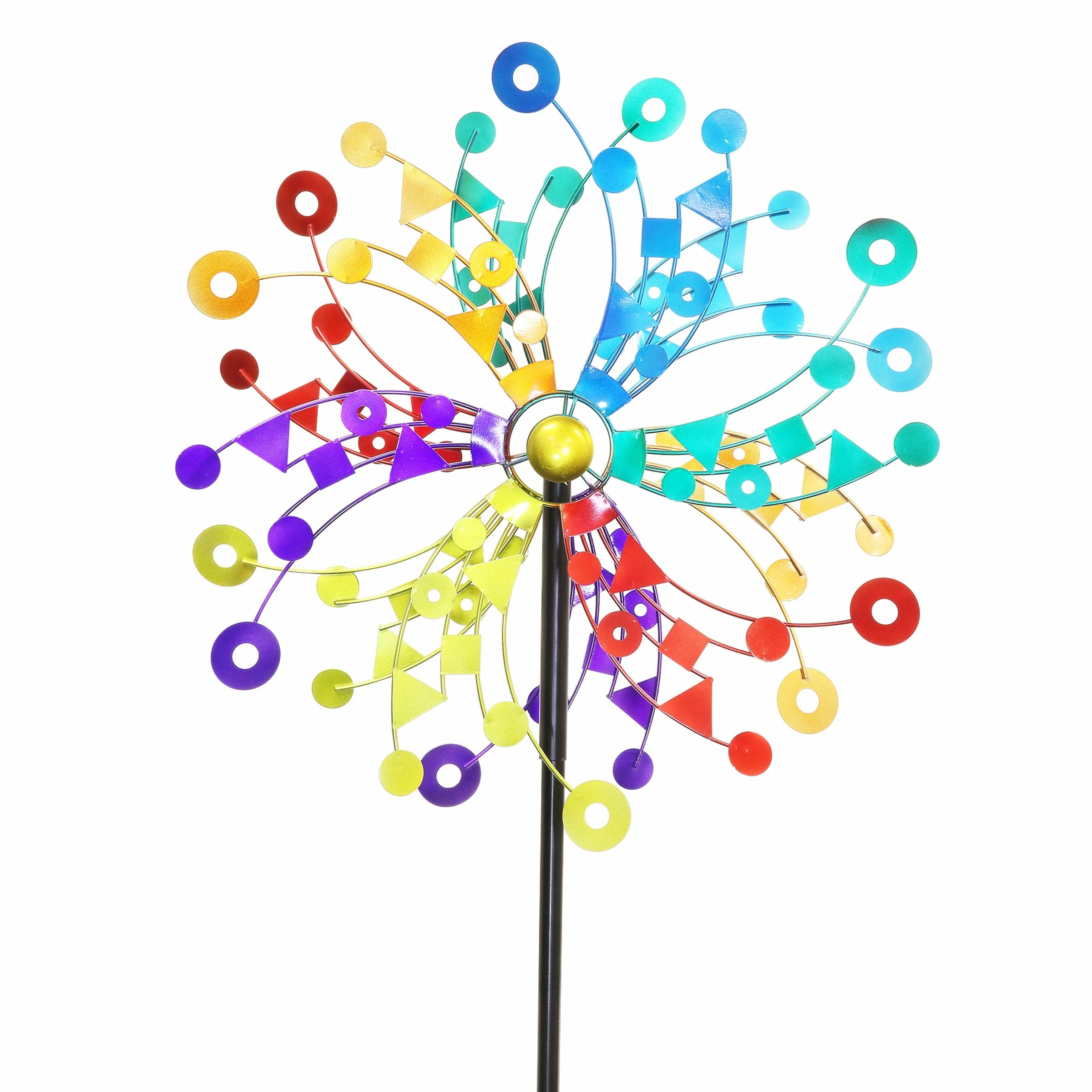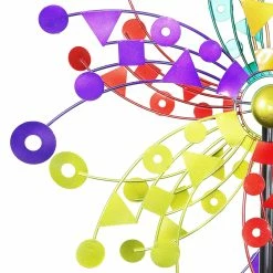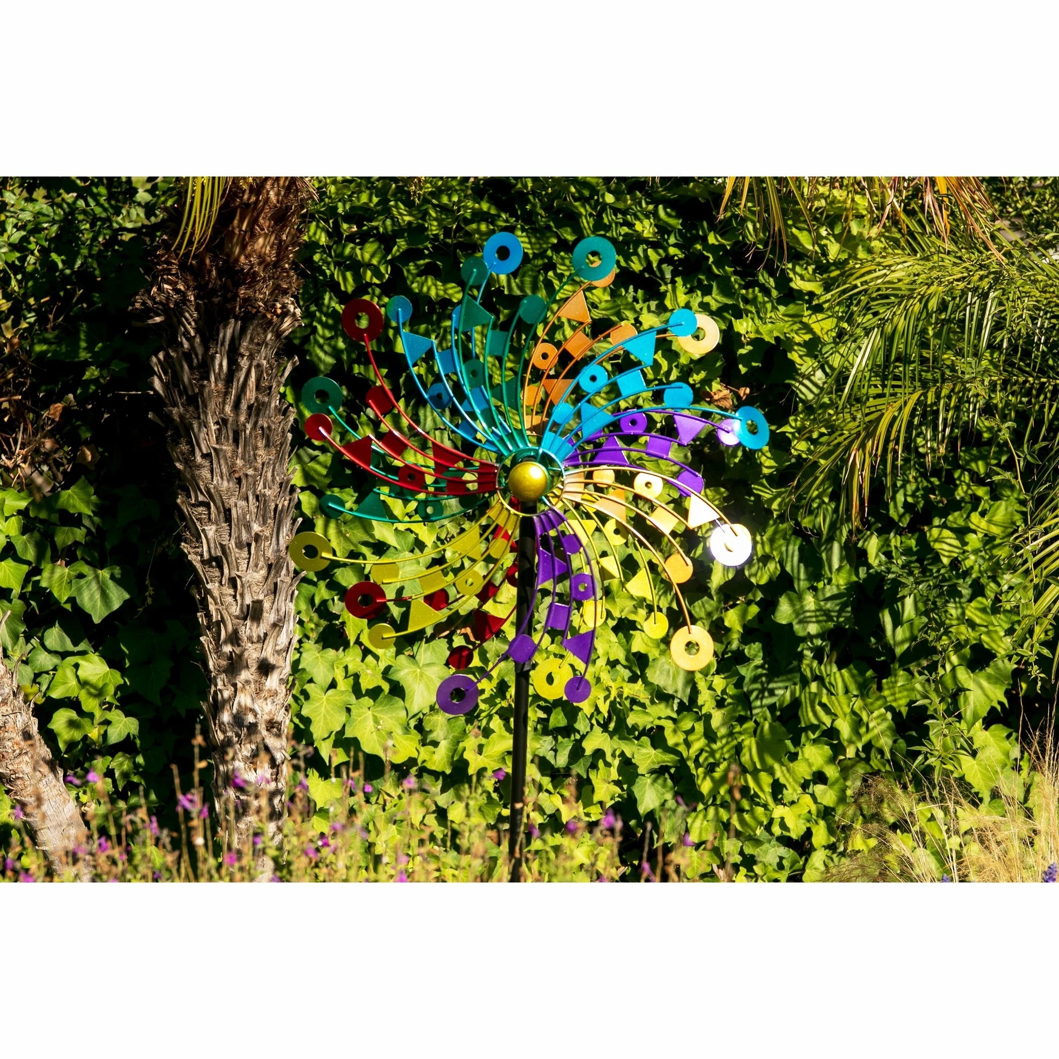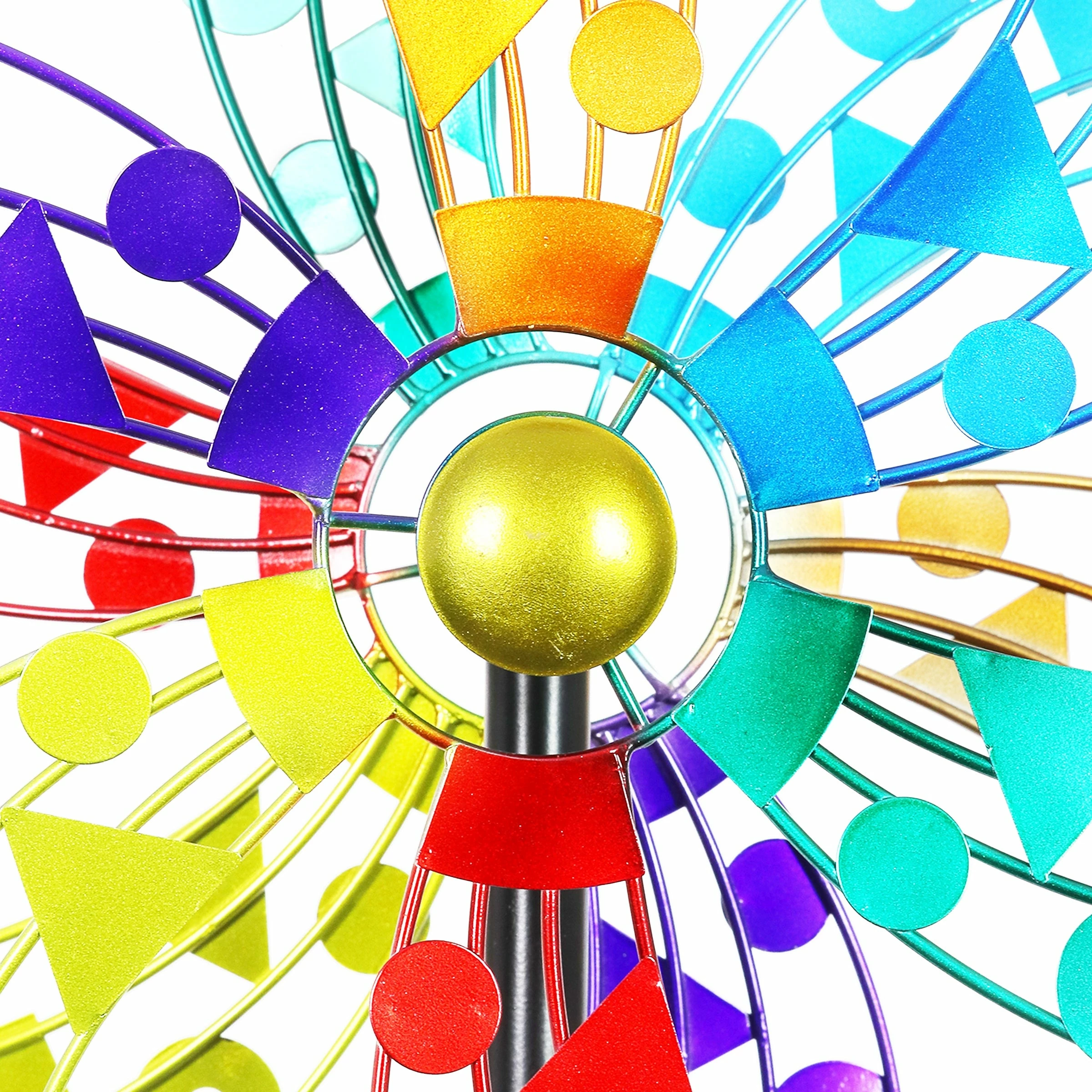 A kaleidoscope of colors bursts into your landscape as this giant kinetic garden stake spins delightfully in the breeze. The beautiful piece of moving art makes a perfect addition to any yard and an impressive gift for the garden enthusiast! This spinner stake is sure to become the center piece of your yard or garden.
