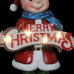 This adorable elf hails straight from the North Pole to wish you a Merry Christmas. His LED sign will illuminate automatically at the same time each day! Makes a charming and maintenance-free addition to your festive holiday dΓ©cor.