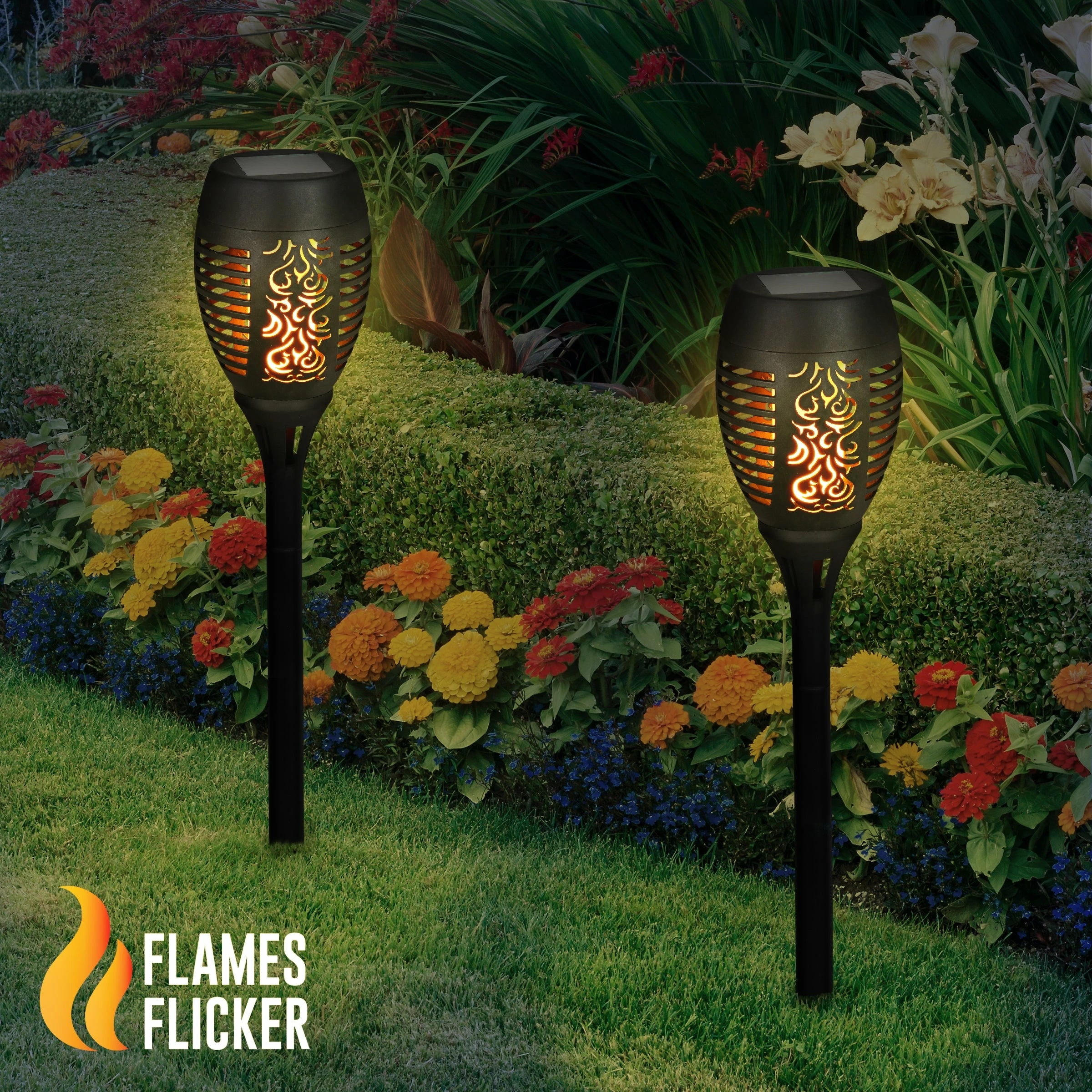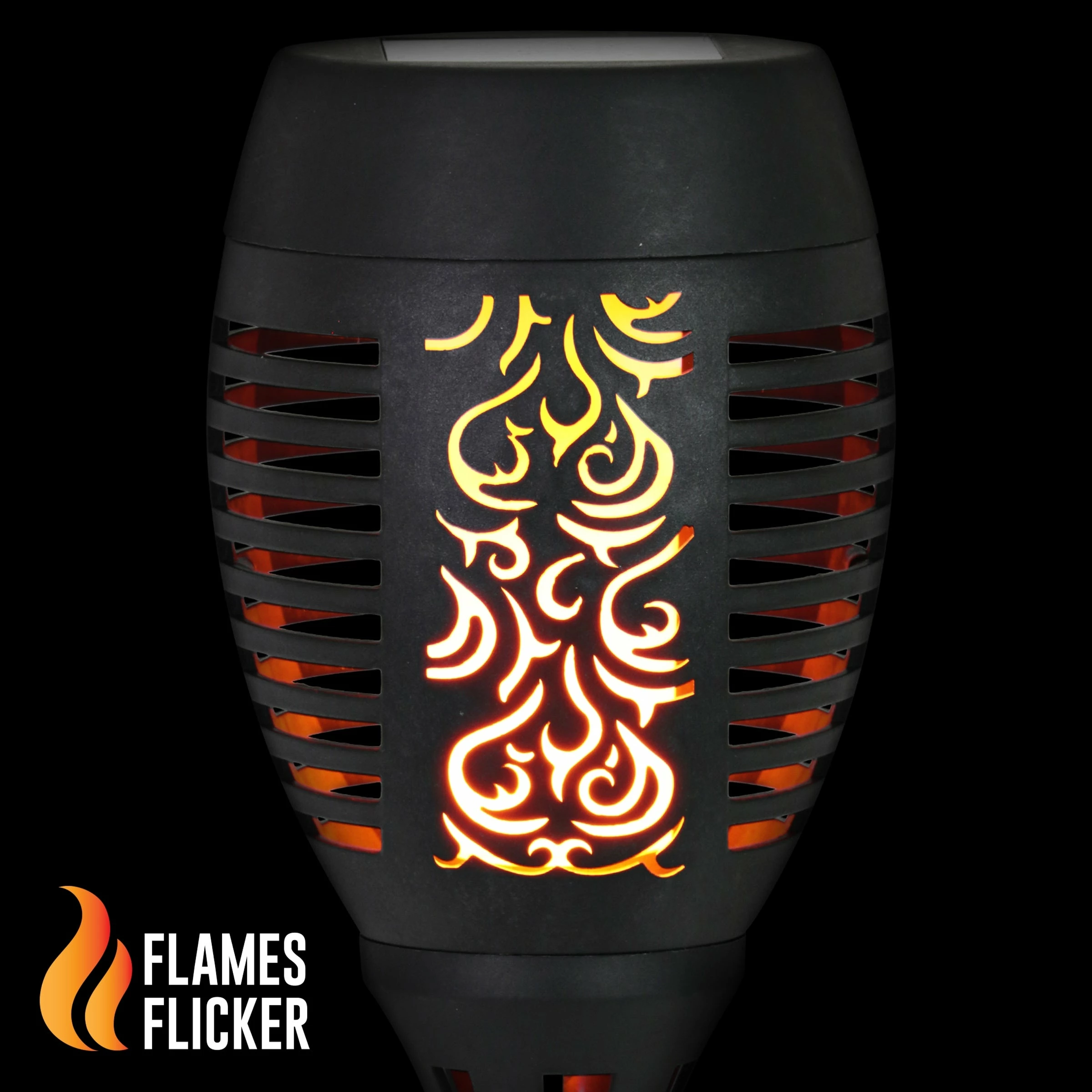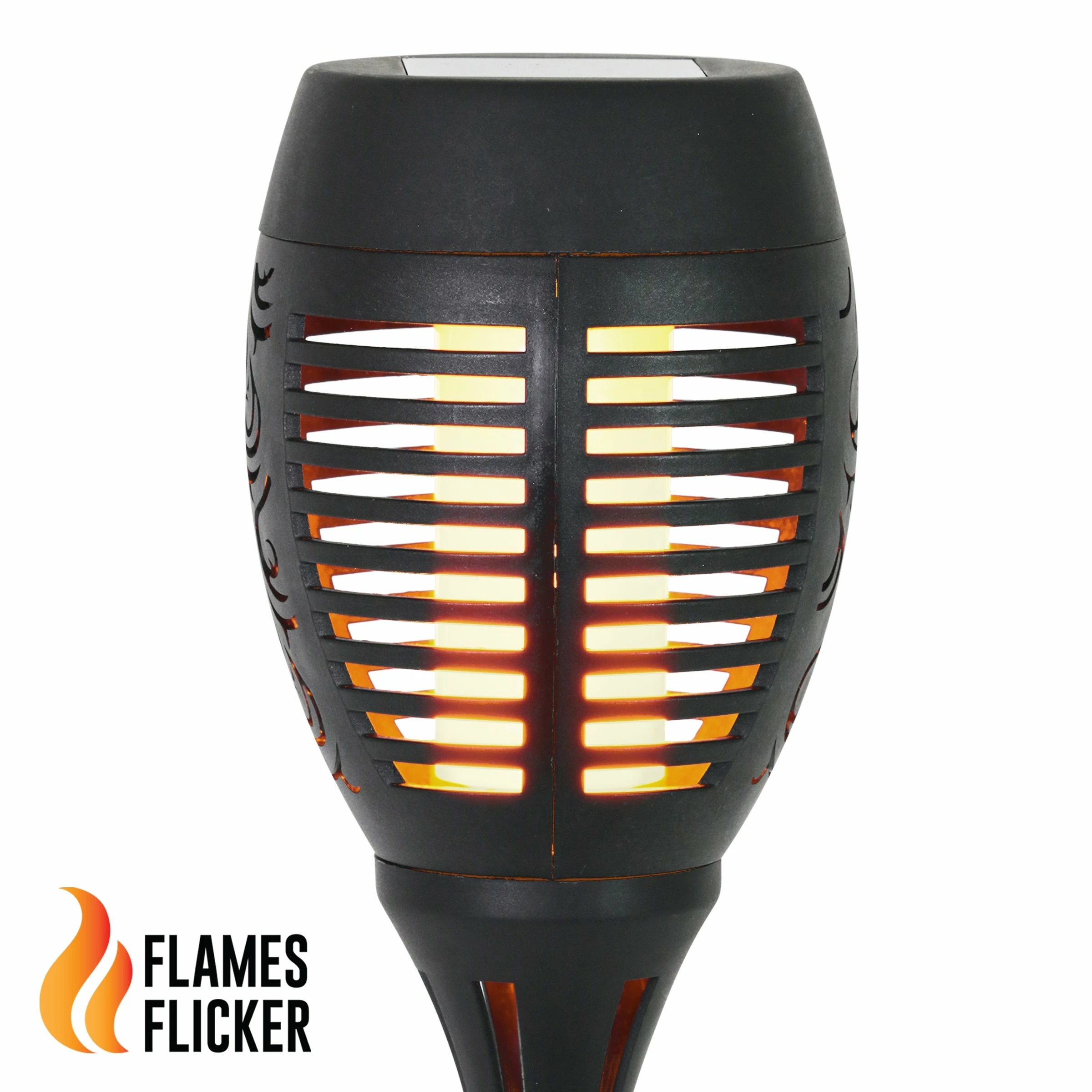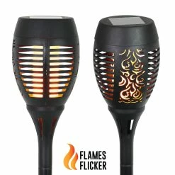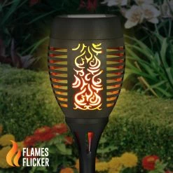Add a romantic flare to your landscape with this set of illuminating Dancing Flame Torch Garden Stakes! Resembling a real flame, this exquisitely designed garden stake will begin to glow every evening at dusk with a Solar powered LED light. Enjoy all of the beauty and intrigue of garden torches with none of the danger or smoke! Makes a beautiful addition to your garden.