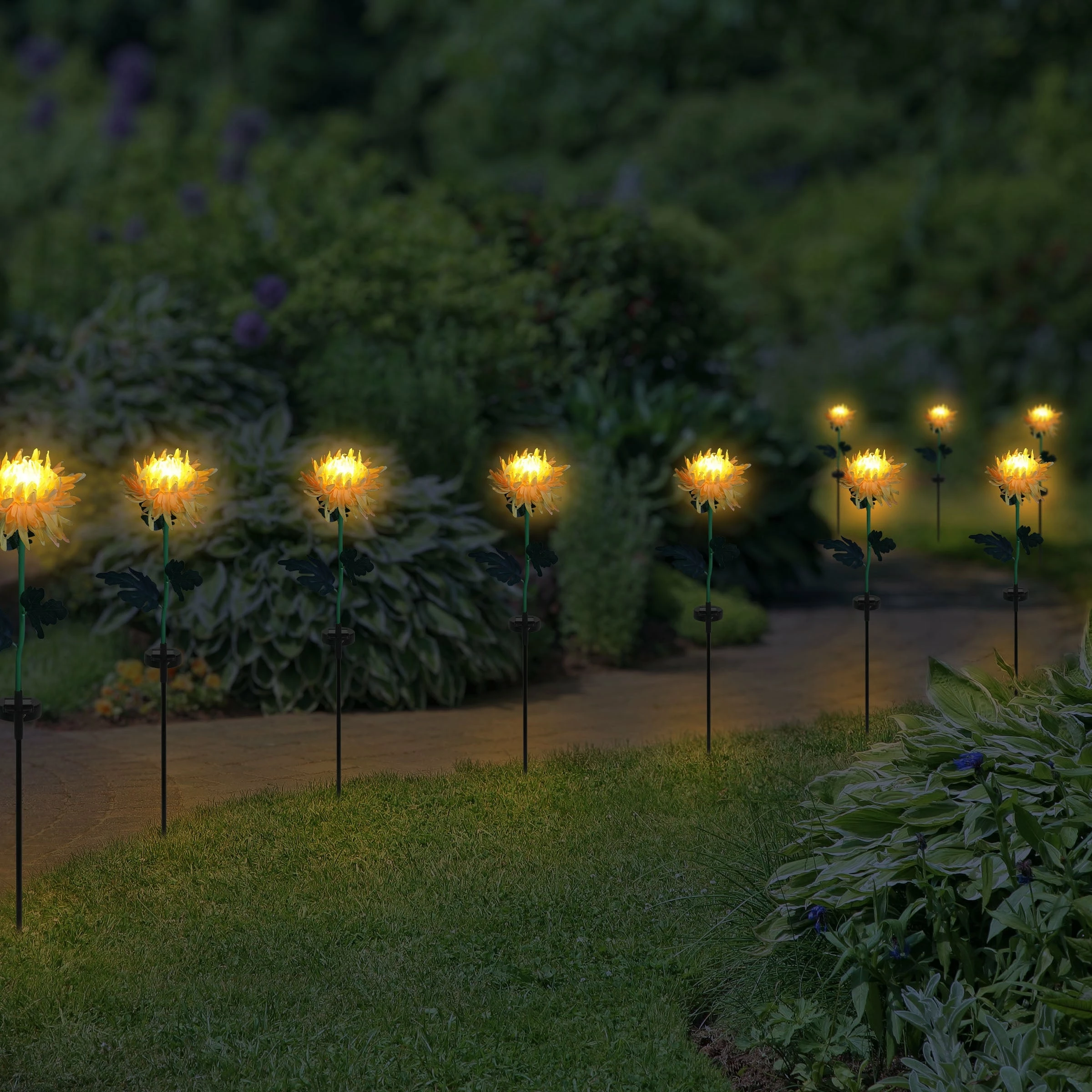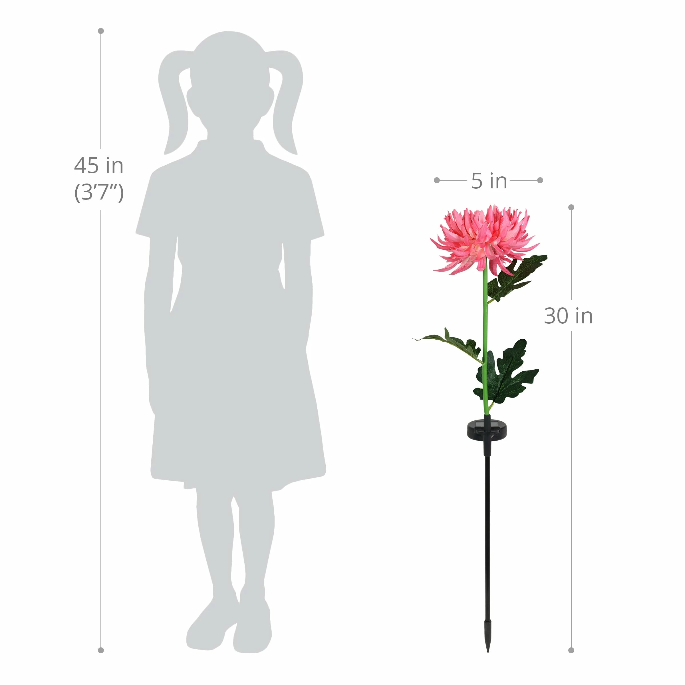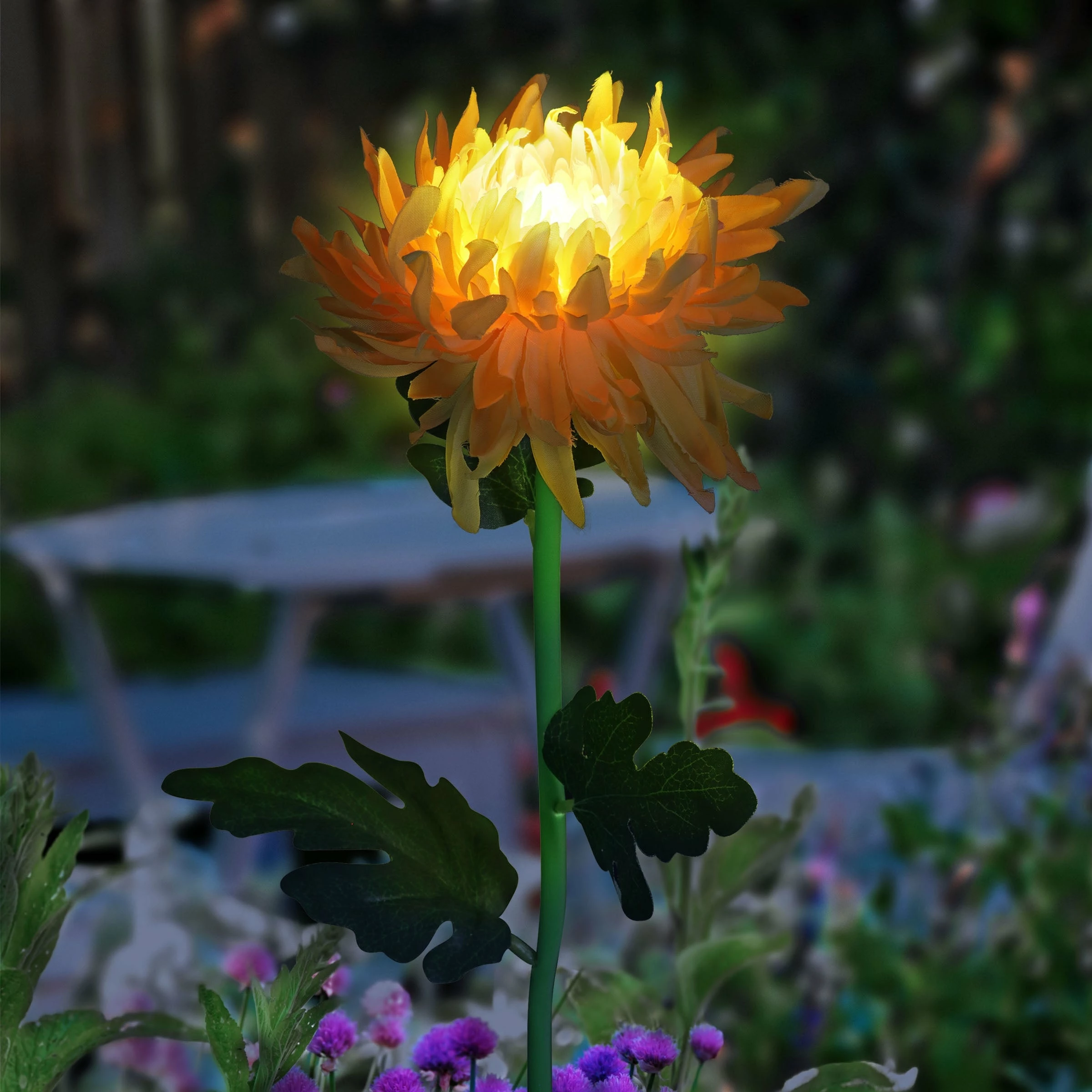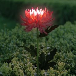 Forever in bloom, this gorgeous Solar Mum Garden Stake adds a touch of light to your garden all year long! A solar powered LED light will illuminate automatically at dusk from the center of this beautiful flower. This enchanting garden stake is sure to add joy to your garden. Makes a wonderful gift idea as well.