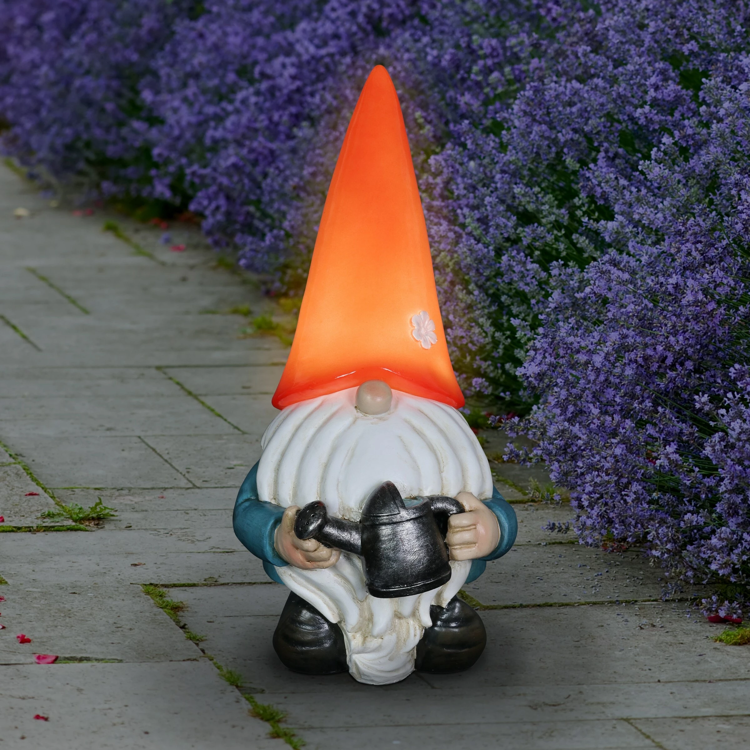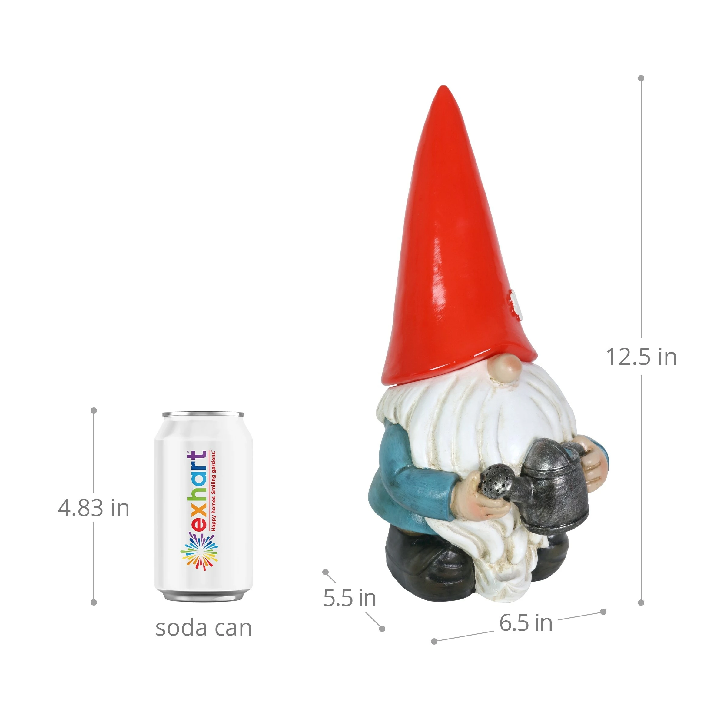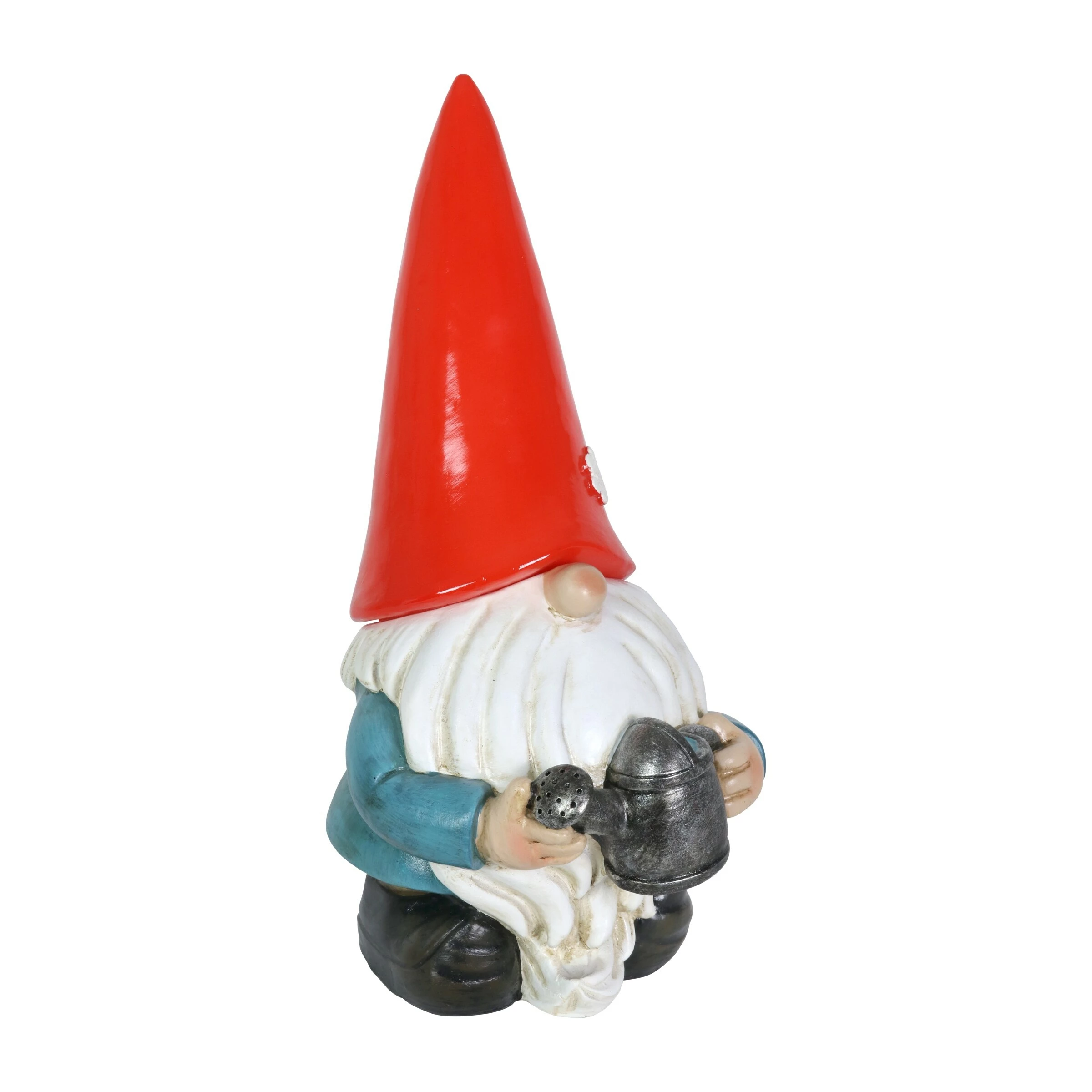 This endearing garden gnome statue dons an illuminating red gnome hat as he sets out with his watering can! At dusk, the gnome’s hat will automatically glow with solar powered LED light. Hand painted with great details, this piece of garden art by the Exhart family makes a charming addition to any home!