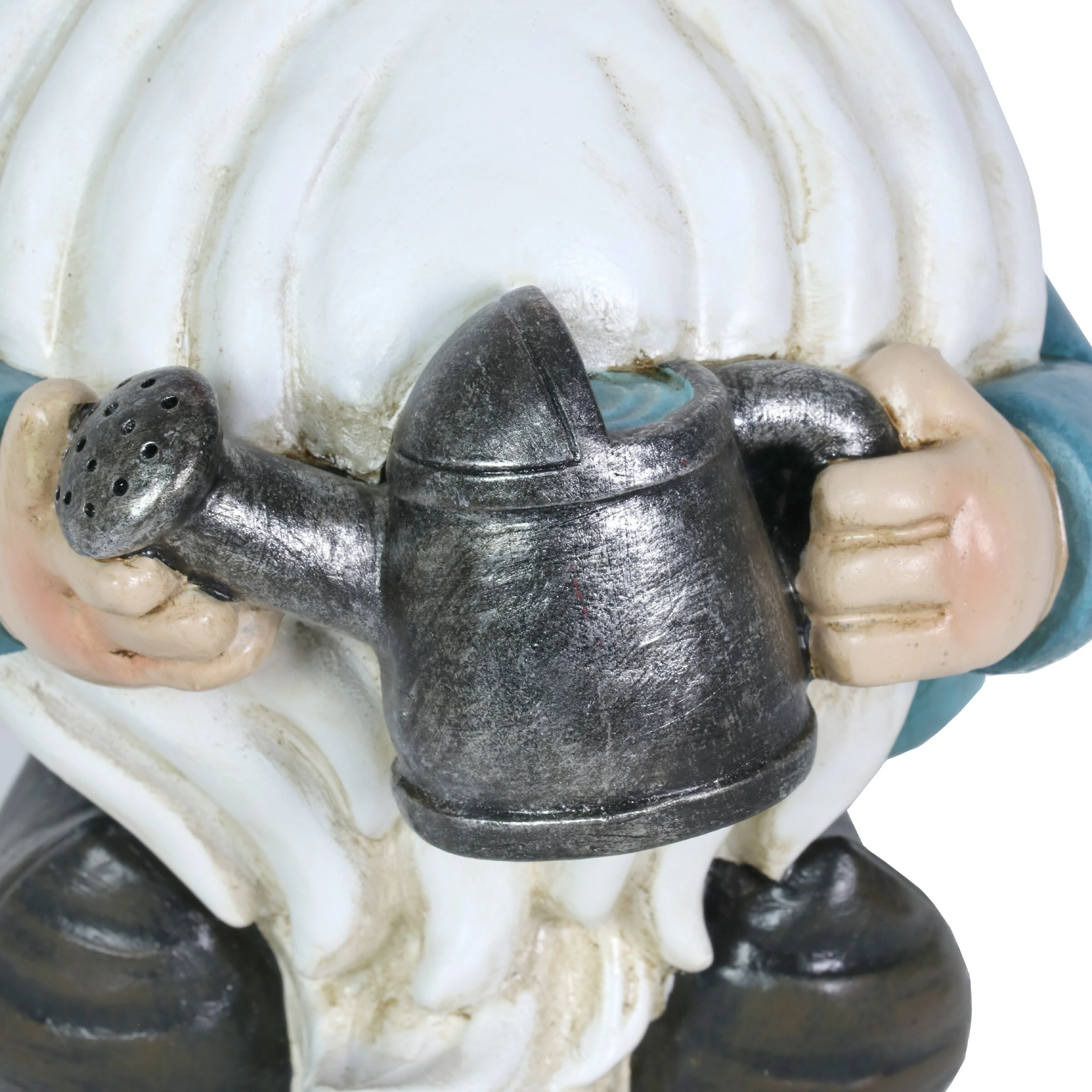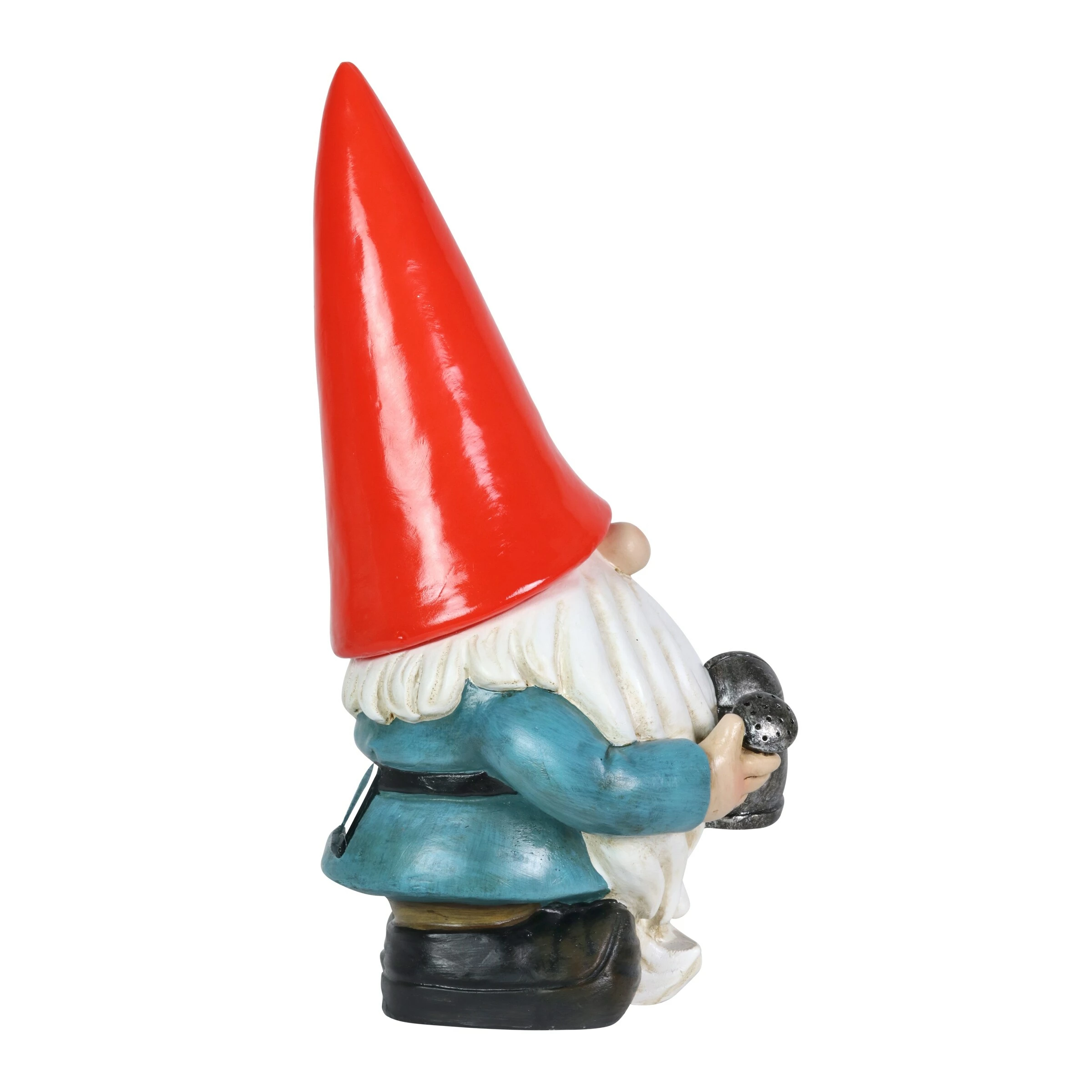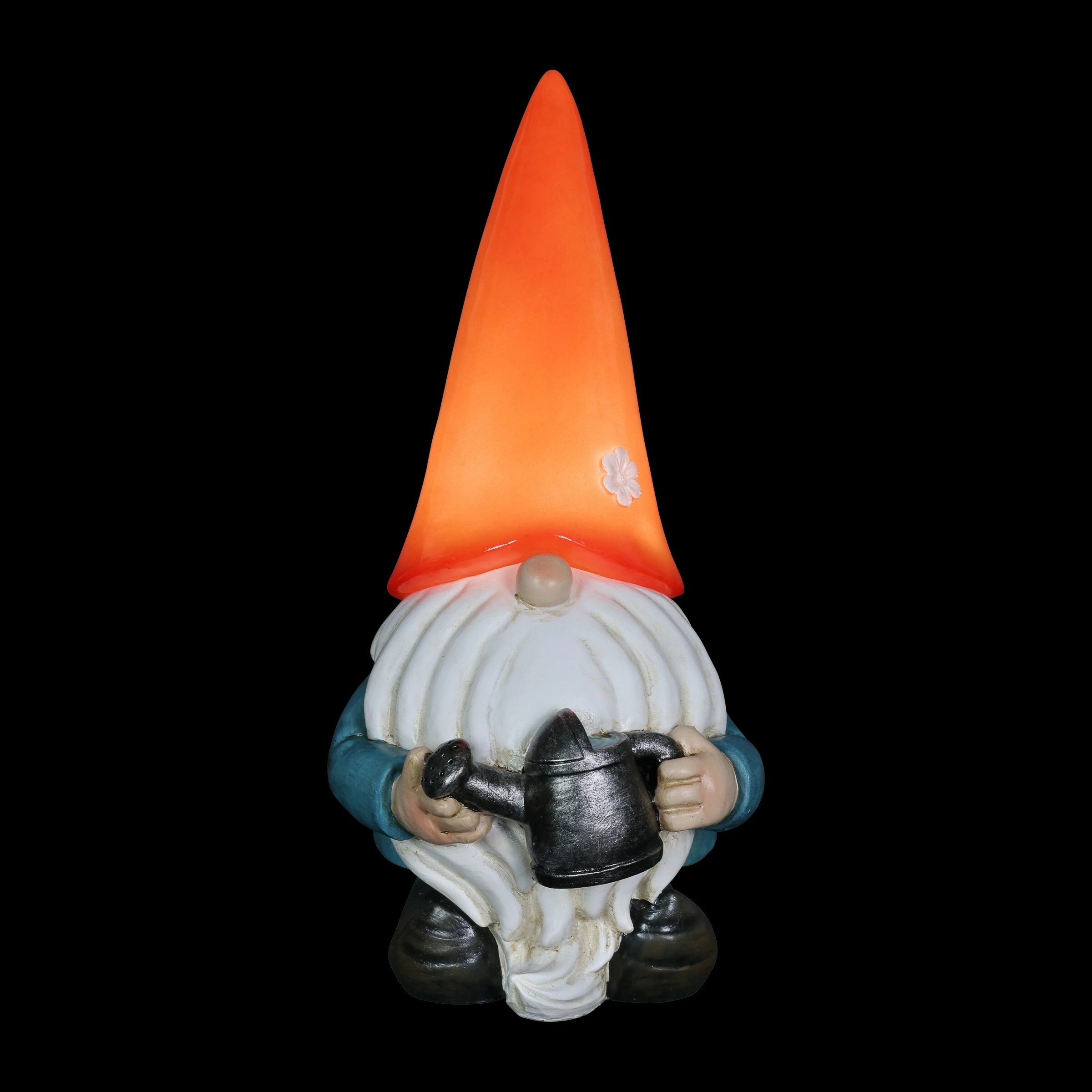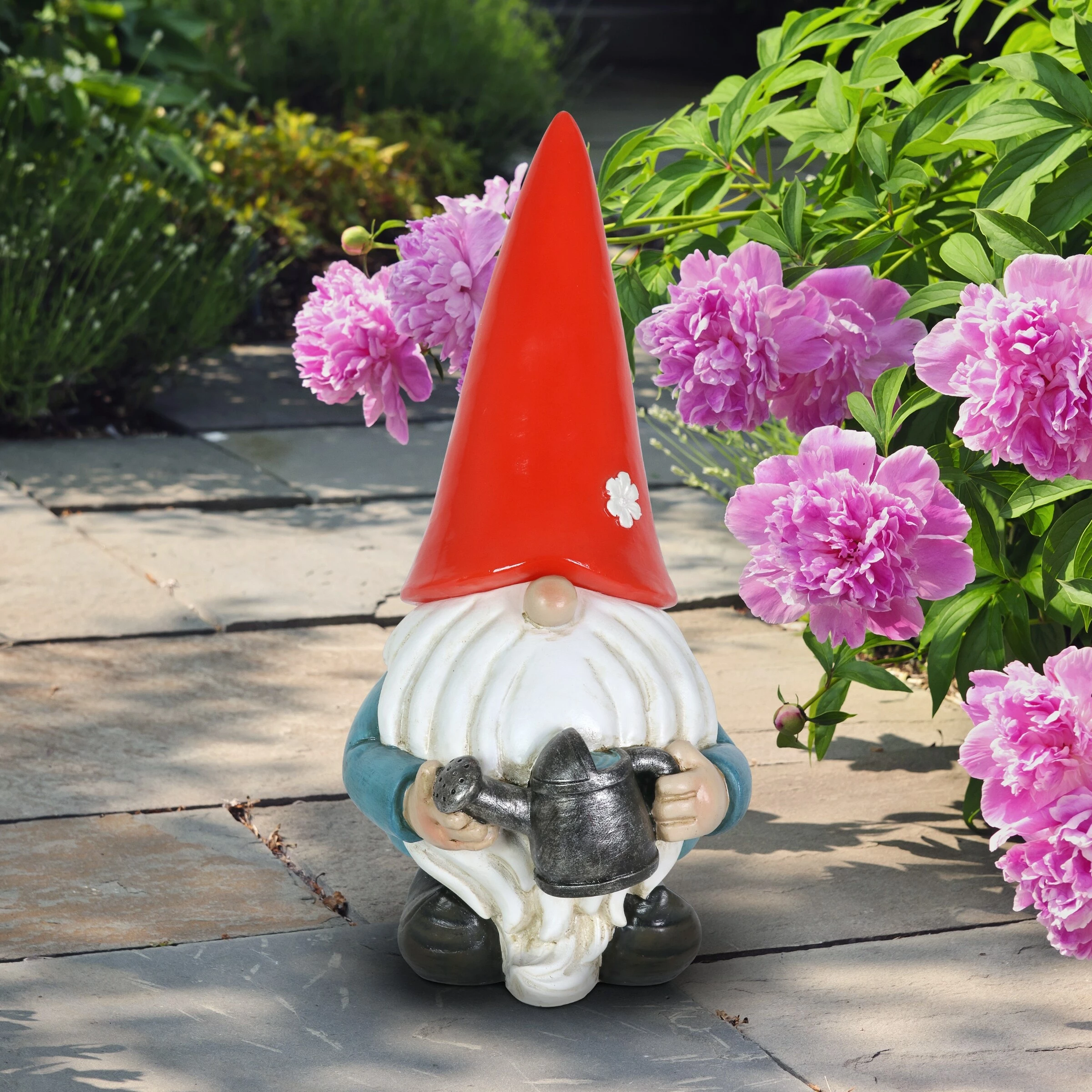 This endearing garden gnome statue dons an illuminating red gnome hat as he sets out with his watering can! At dusk, the gnome’s hat will automatically glow with solar powered LED light. Hand painted with great details, this piece of garden art by the Exhart family makes a charming addition to any home!