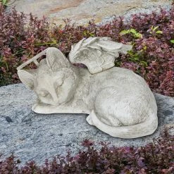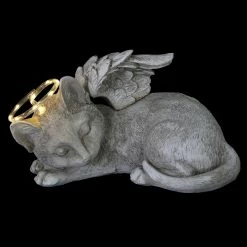 May your beloved cat rest peacefully in the heavens amongst the angels. This beautifully designed garden statue makes an endearing marker for your garden. Watch as the solar-powered halo automatically illuminates at dusk, a sweet reminder of your cherished cat.