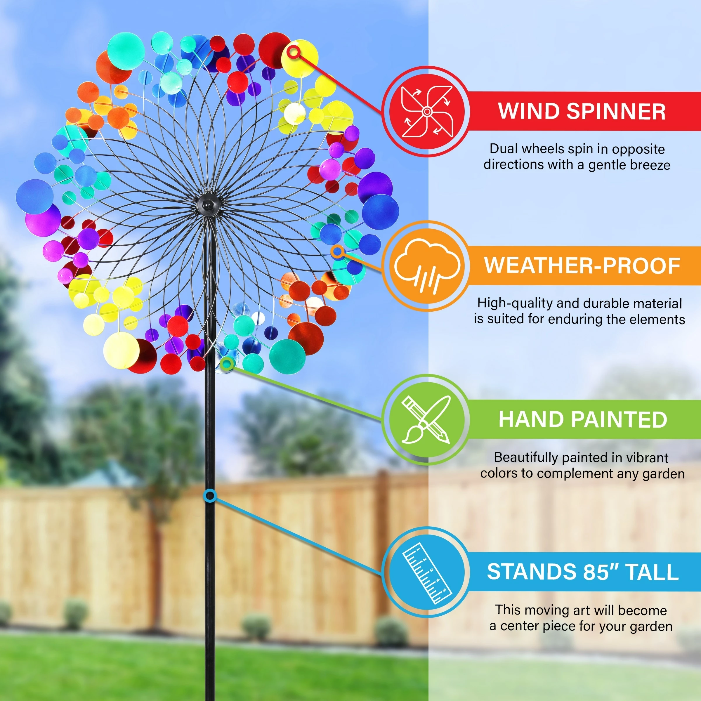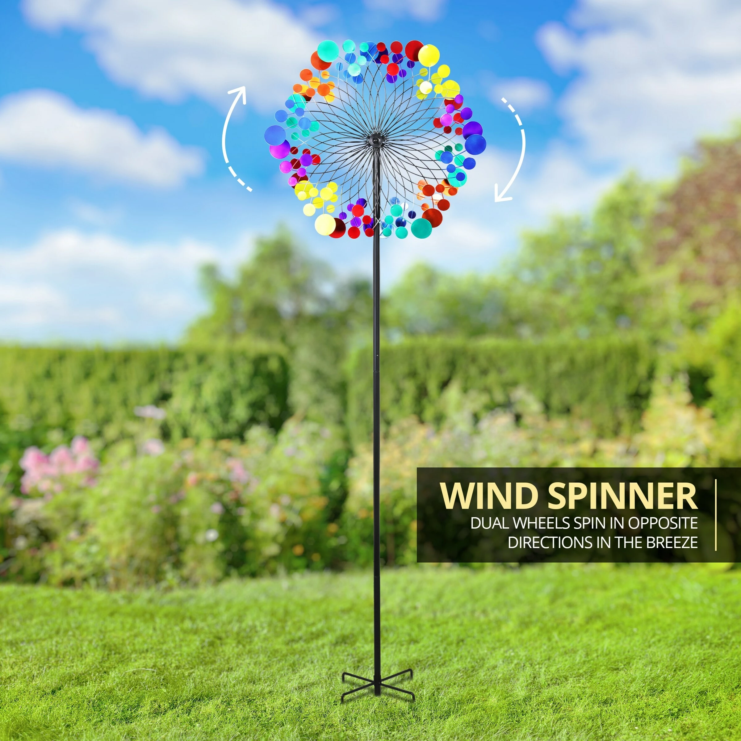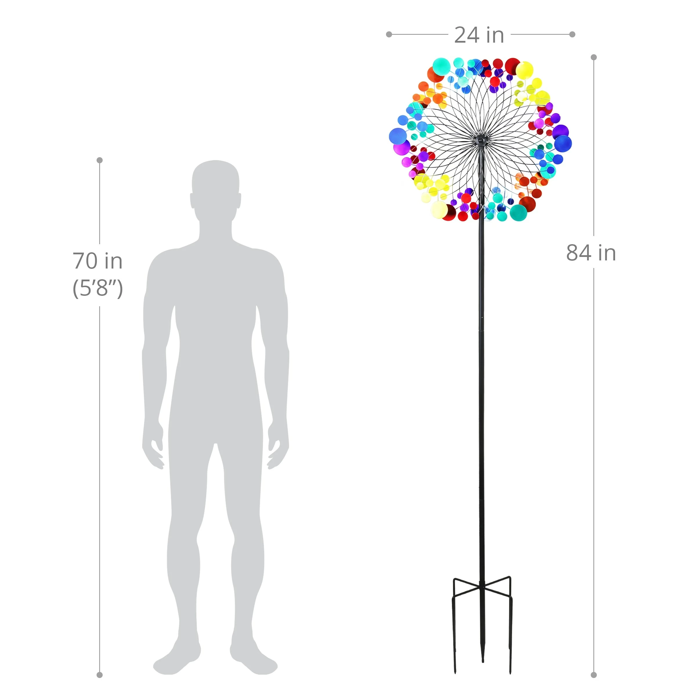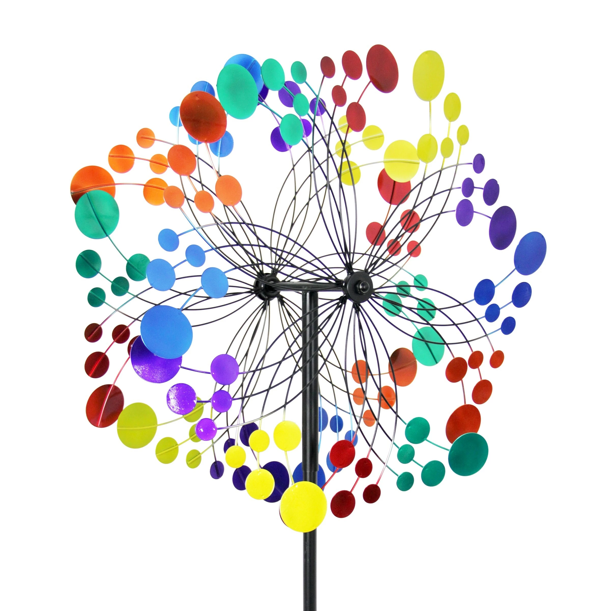 Swirling colors brighten your yard as this giant Starry Night garden stake spins delightfully in the breeze. This beautiful piece of moving art makes the perfect addition to any home and a wonderful gift for the garden enthusiast! This will surely catch your eye and become the center piece of your yard or garden.