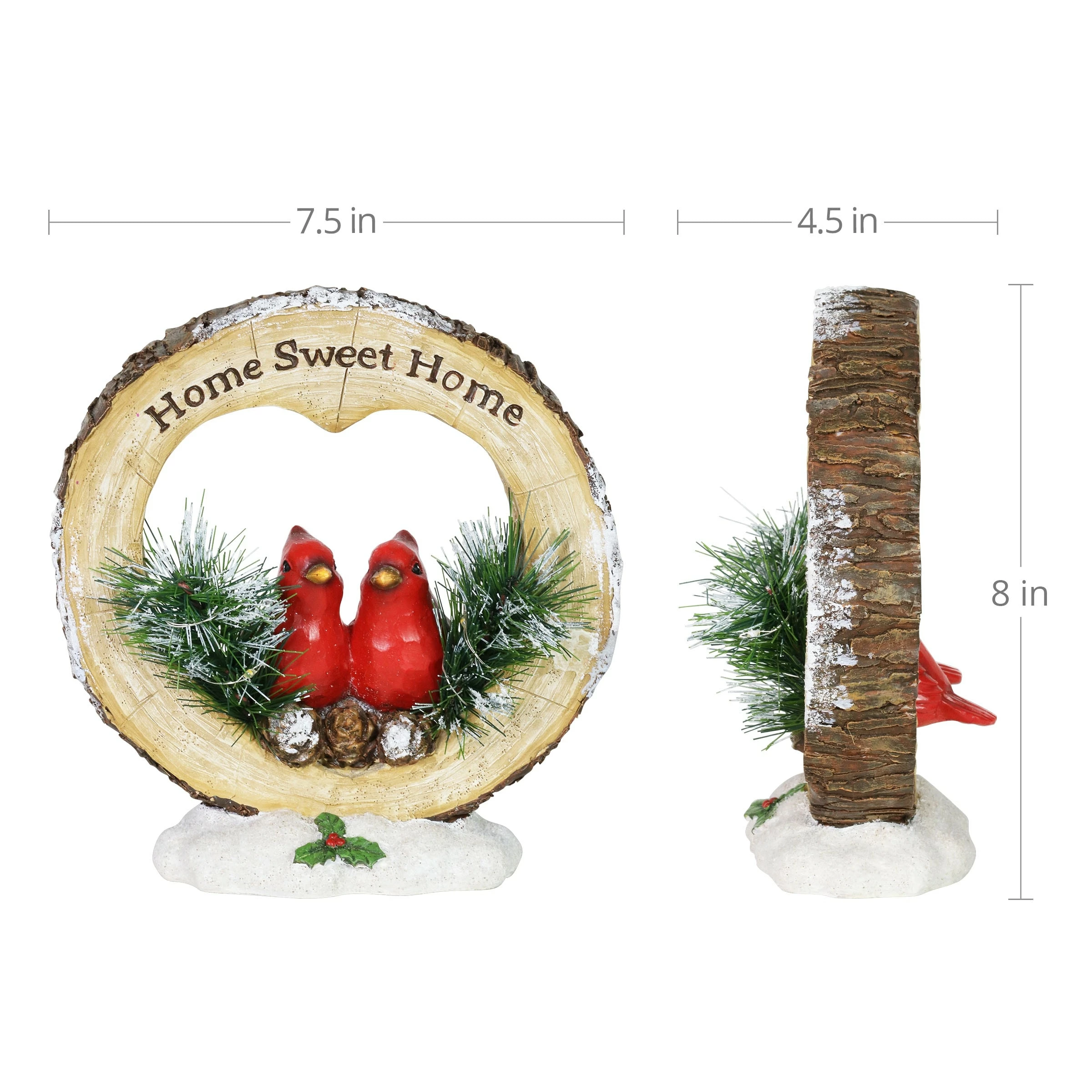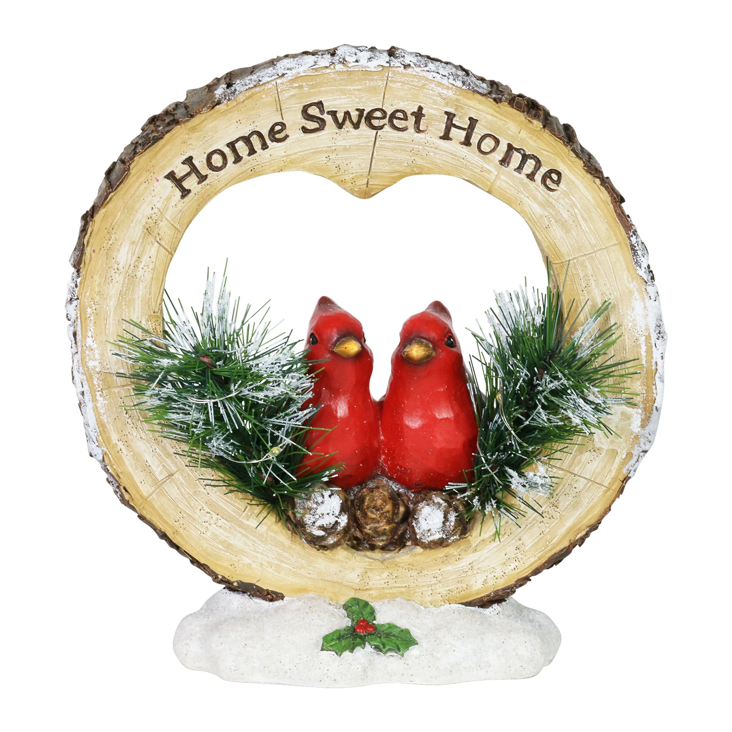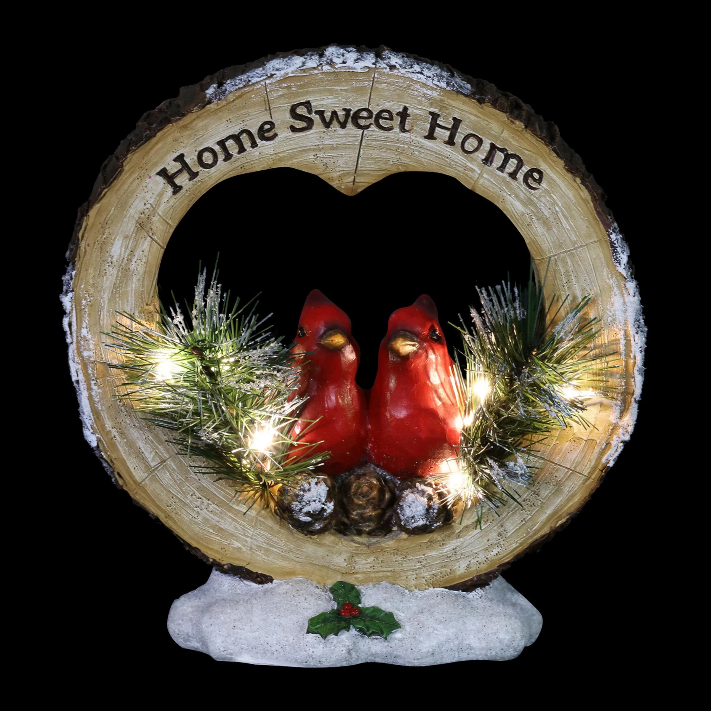 Fill your home with a little extra joy this holiday season with this delightful Cardinal LED Home Sweet Home Statuary. This beautifully hand painted red cardinal decor is a wonderful reminder of true meaning of the season. The automatic timer will light up the festive design every day at your desired hour, making this a wonderful addition to your Home Sweet Home.