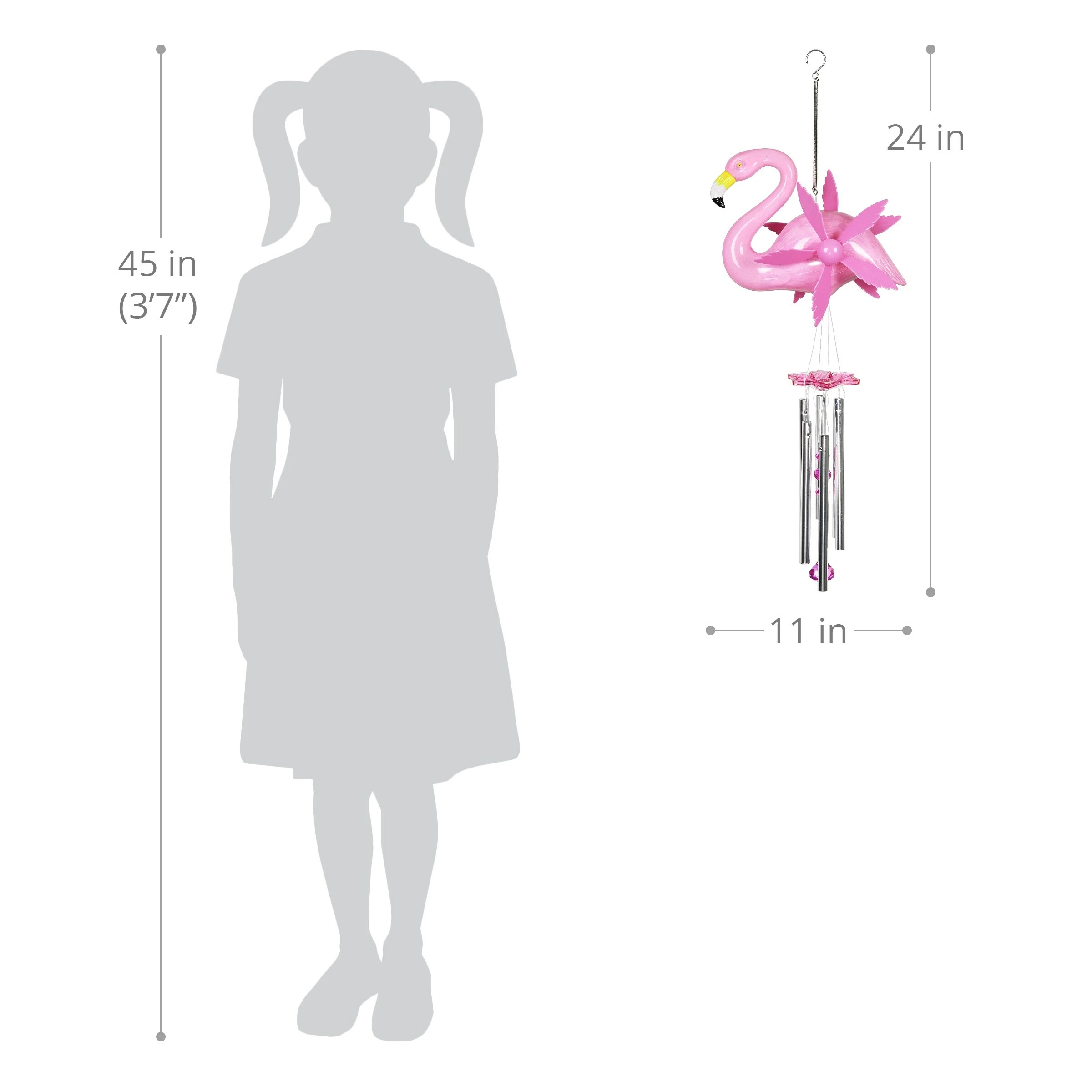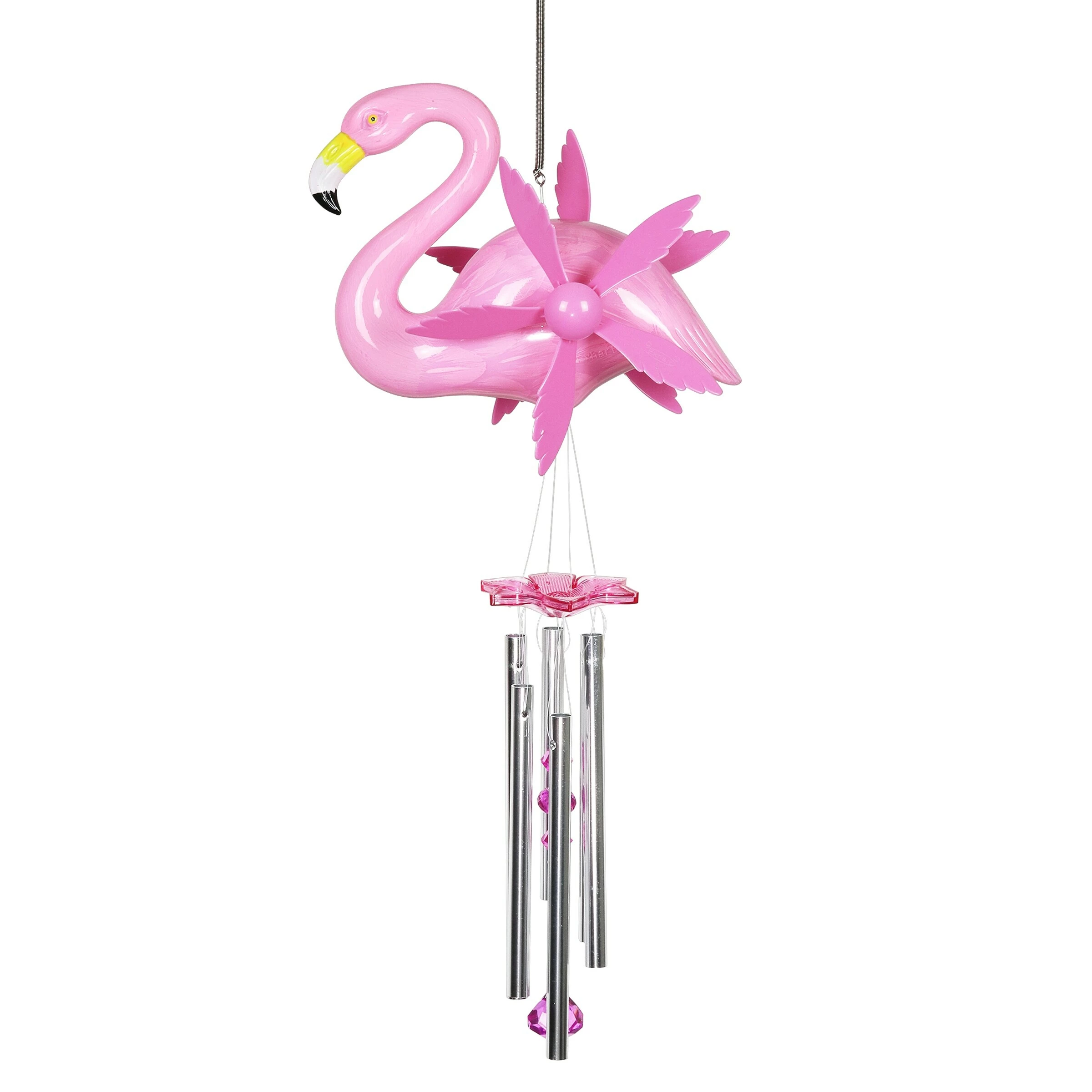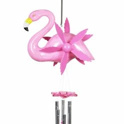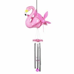 Wind chimes will sing and Whirligigs will twirl as a gentle breeze passes through this Beautifully hand painted Pink Flamingo Wind Chime. Hand crafted with elegant crystals, metal chimes and hand painted details. This flamingo makes a sweet-sounding tropical addition to your home or garden!